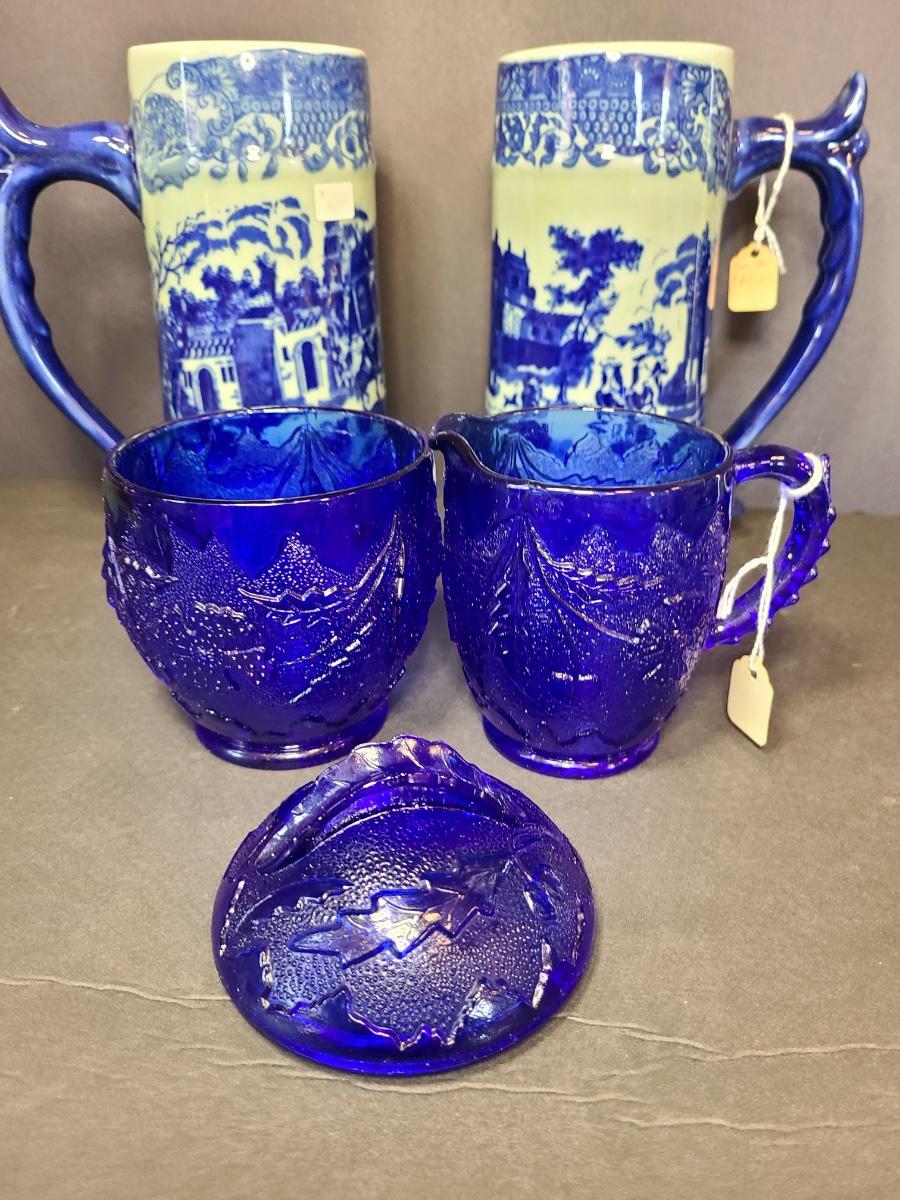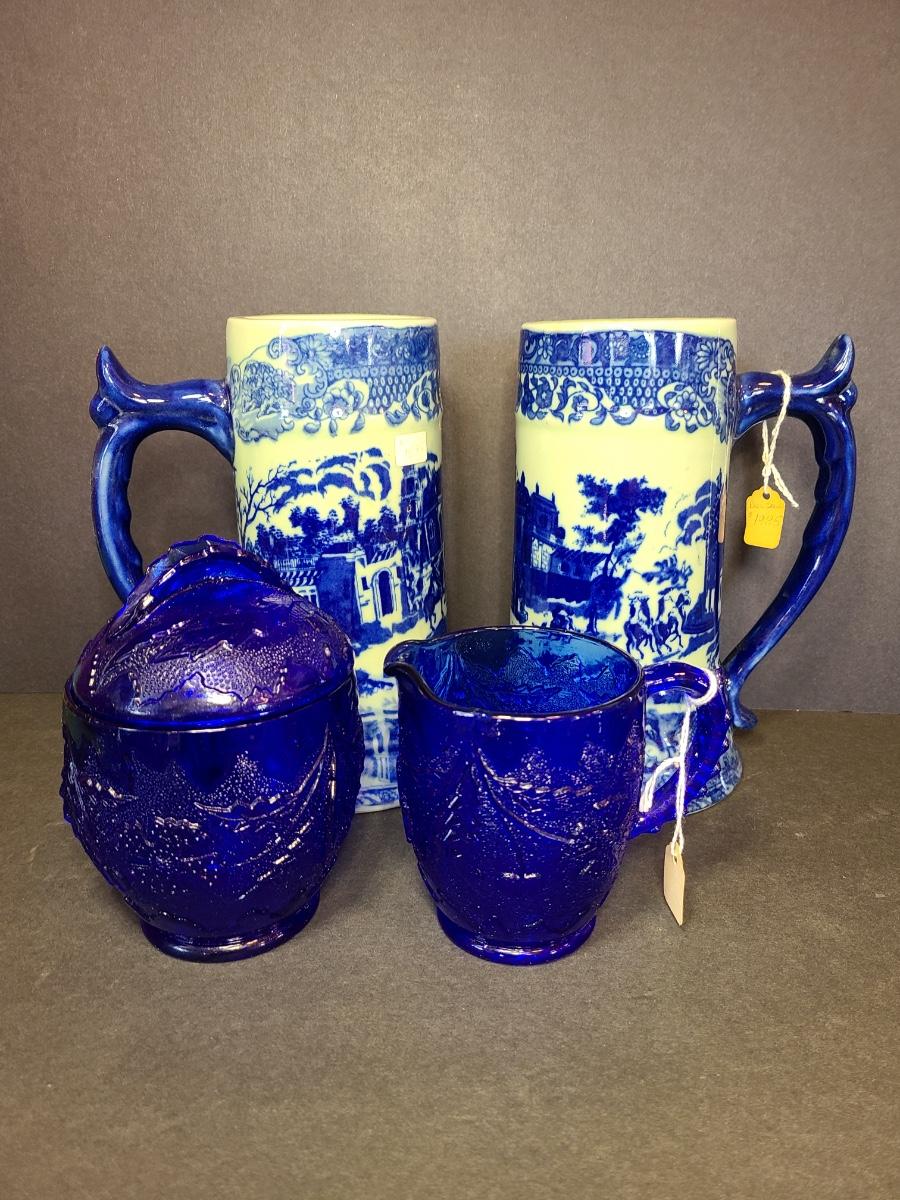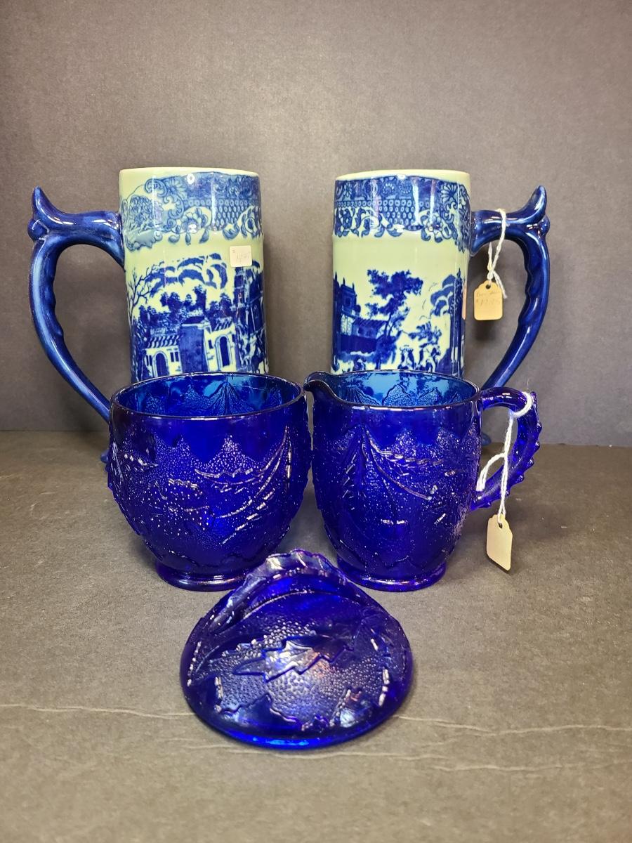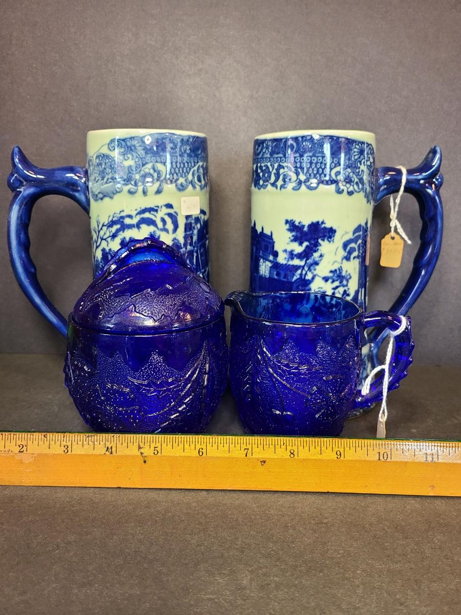LOT 56: Cobalt Blue Glass Sugar & Creamer, and Beer Steins
