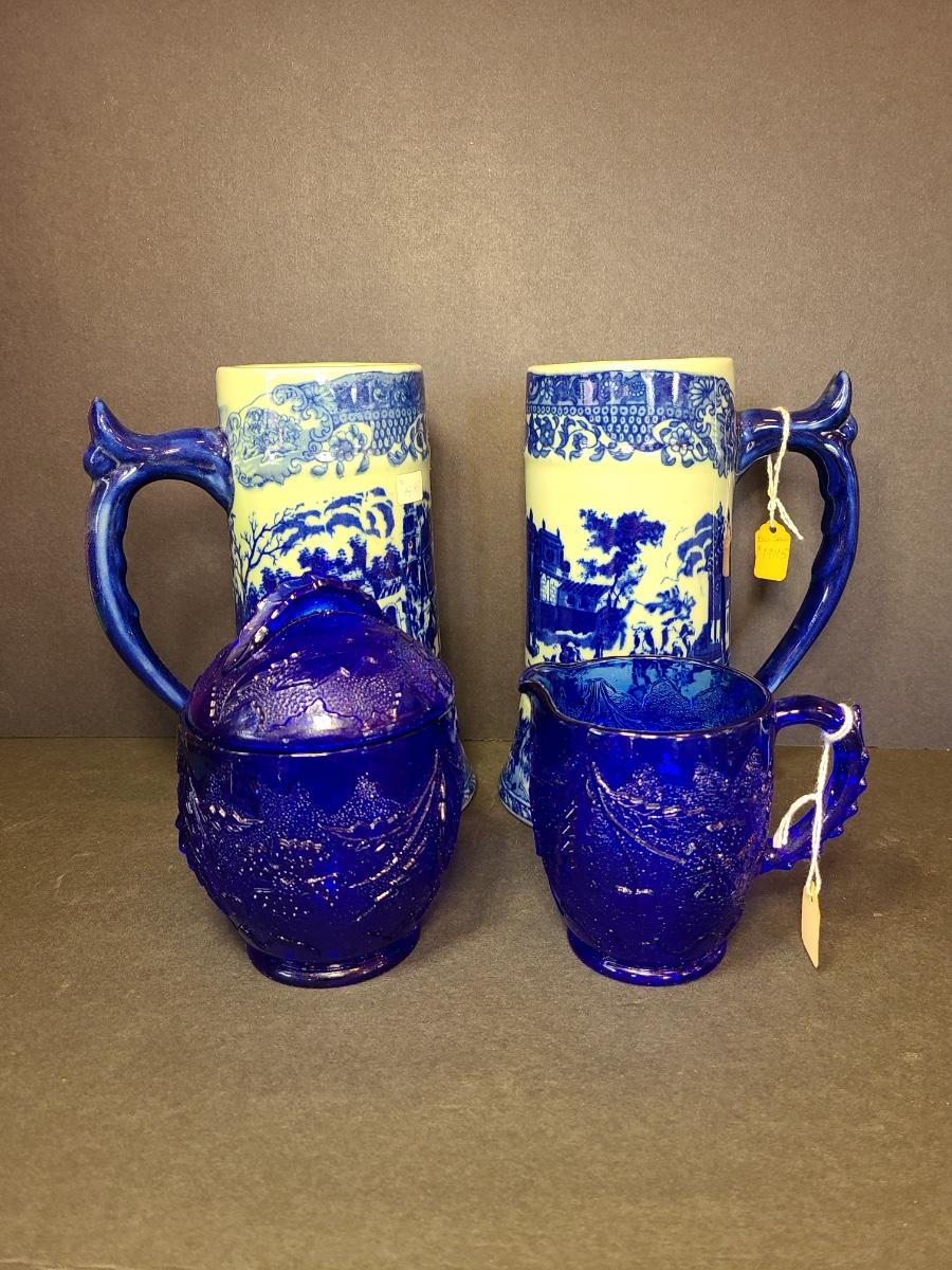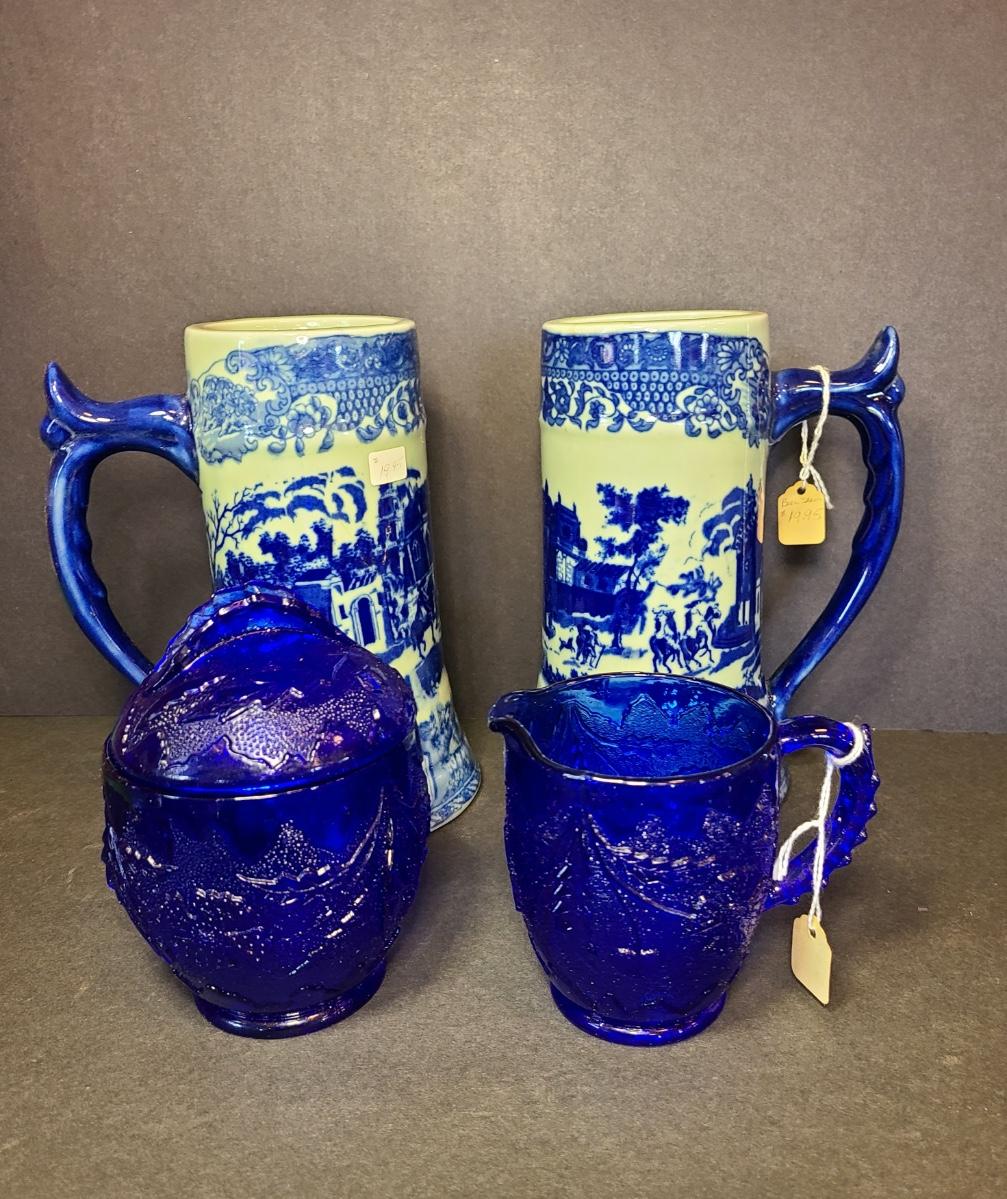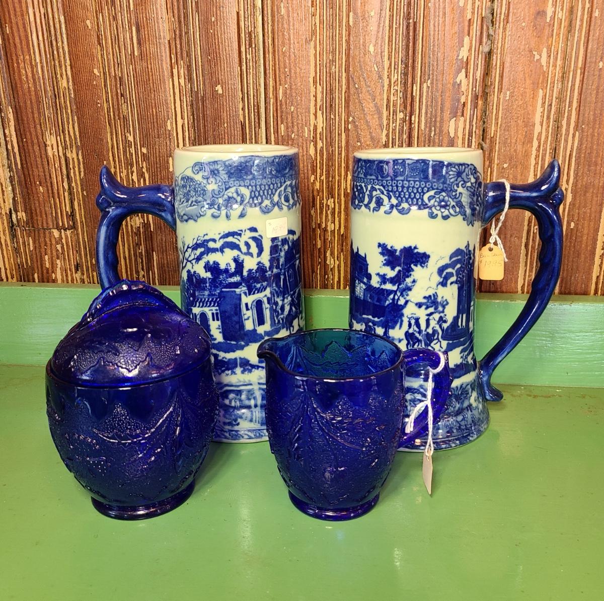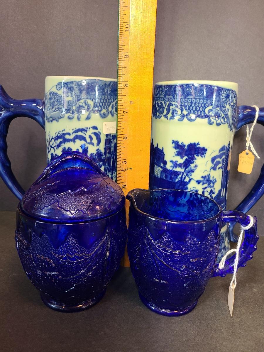 LOT 56: Cobalt Blue Glass Sugar & Creamer, and Beer Steins