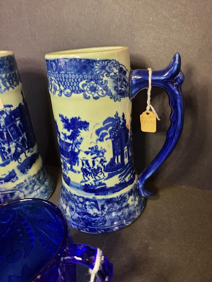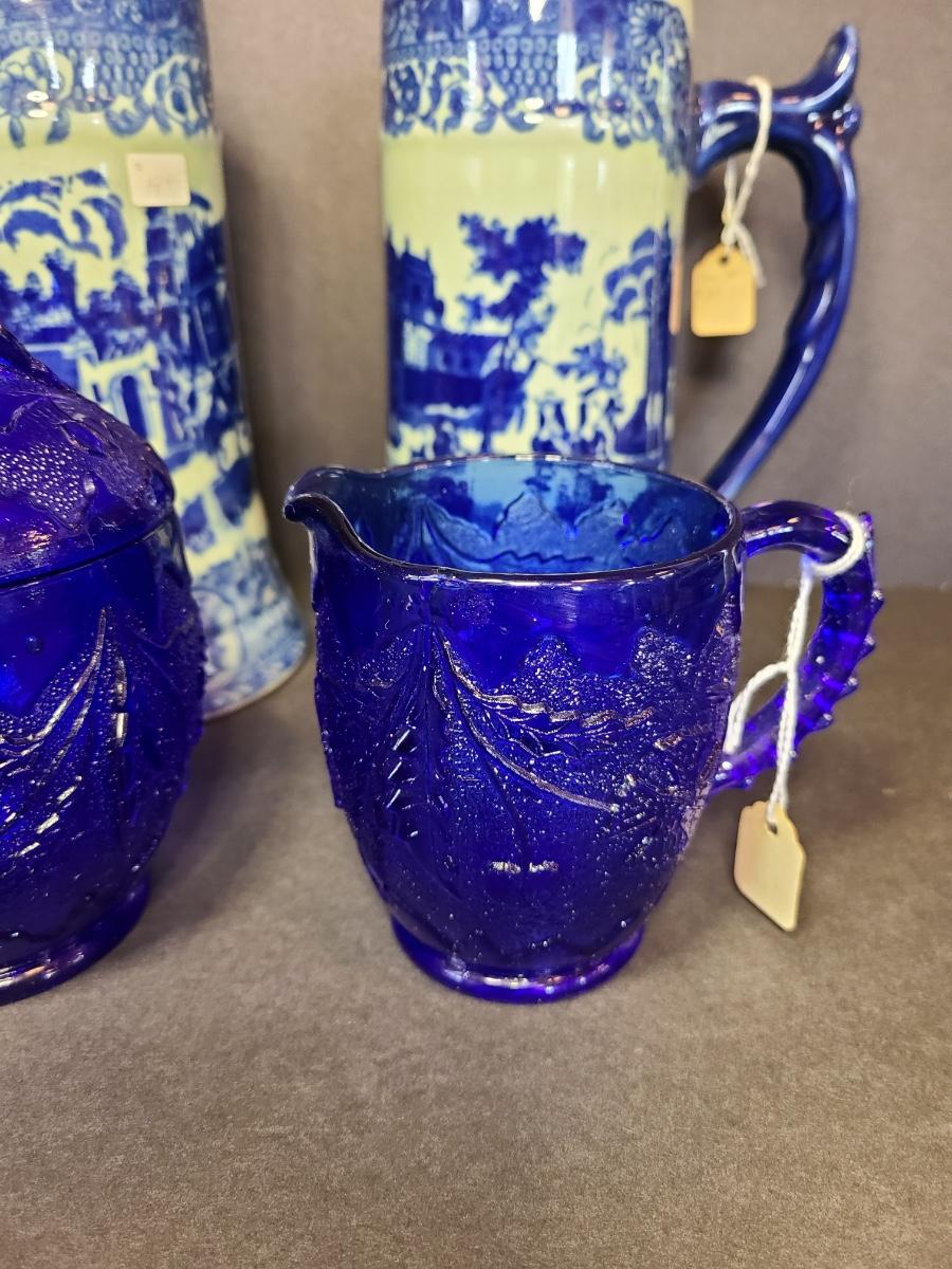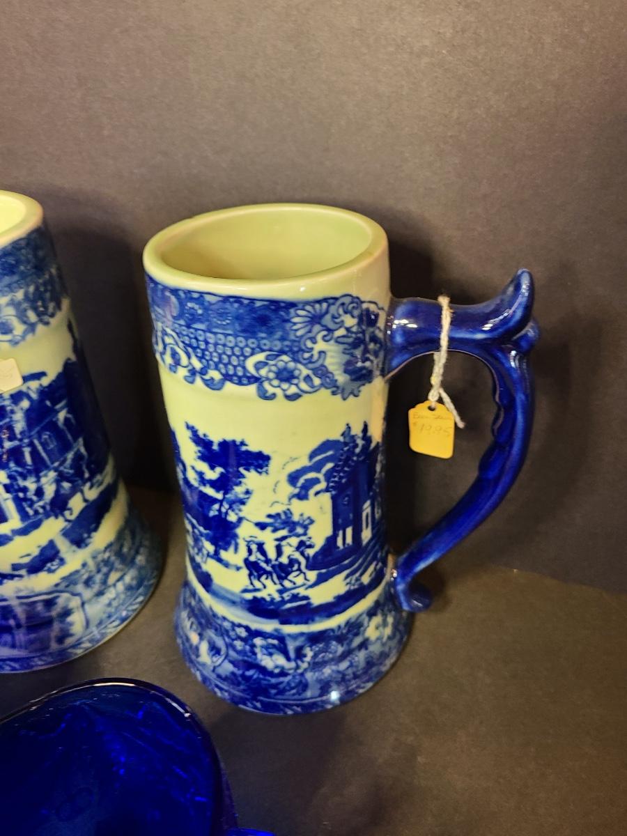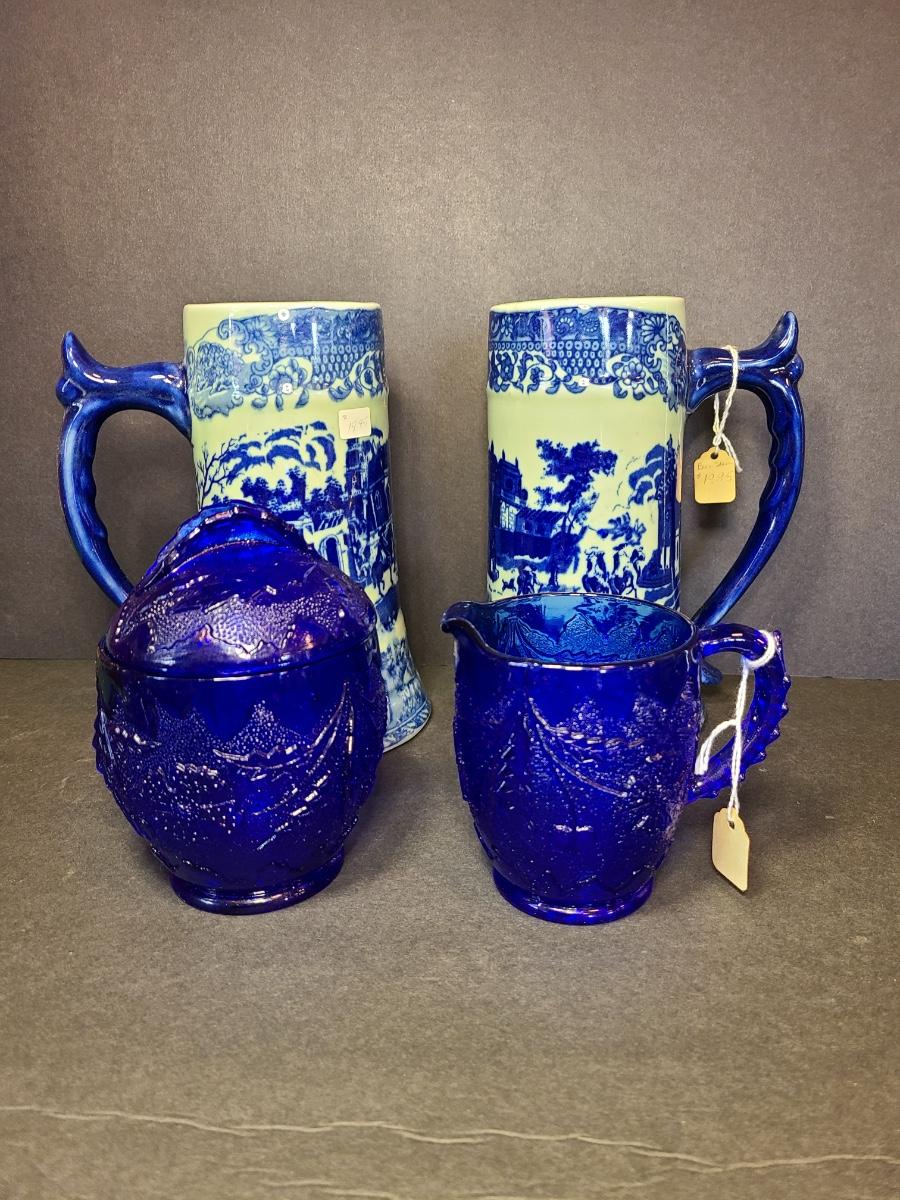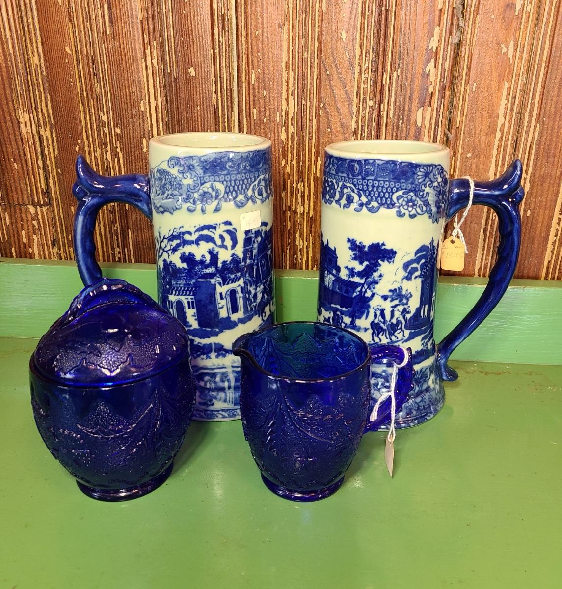 LOT 56: Cobalt Blue Glass Sugar & Creamer, and Beer Steins