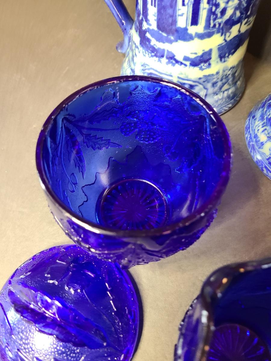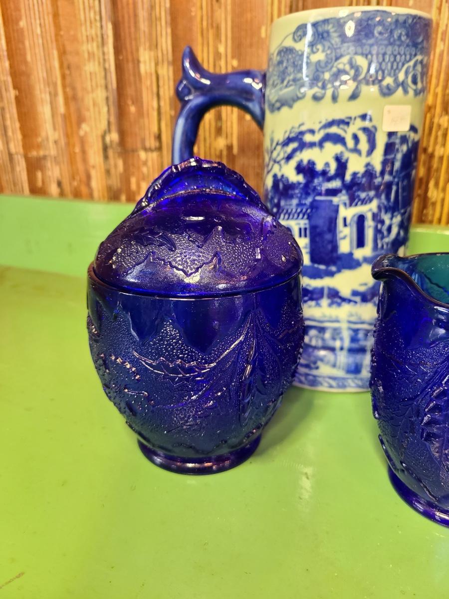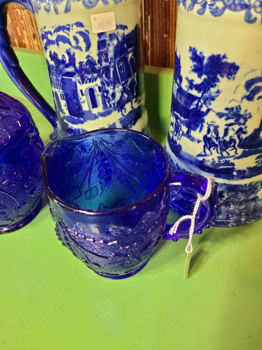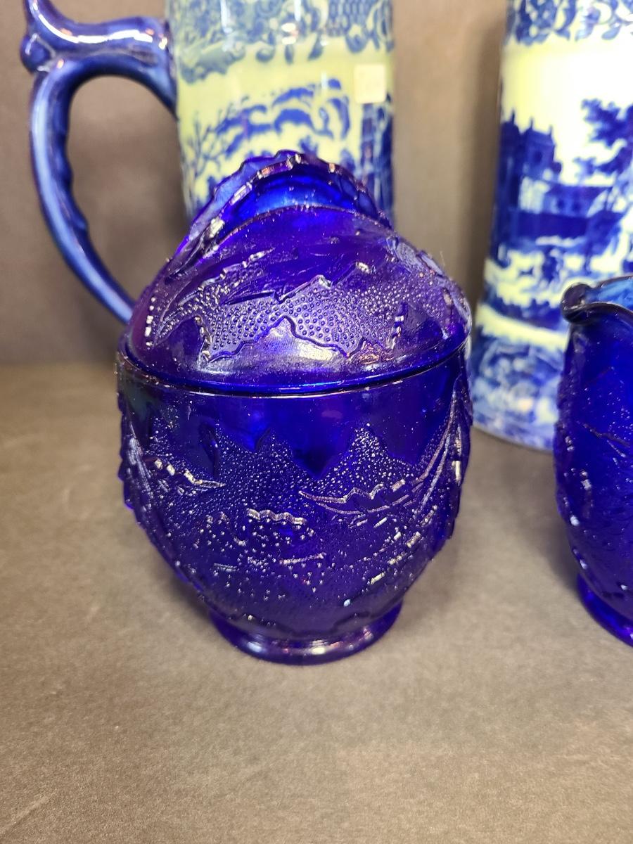 LOT 56: Cobalt Blue Glass Sugar & Creamer, and Beer Steins