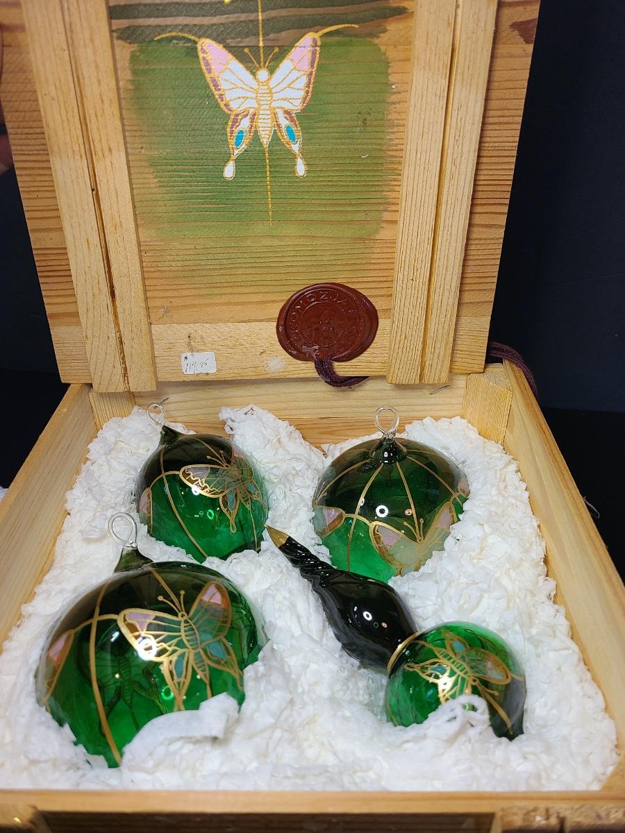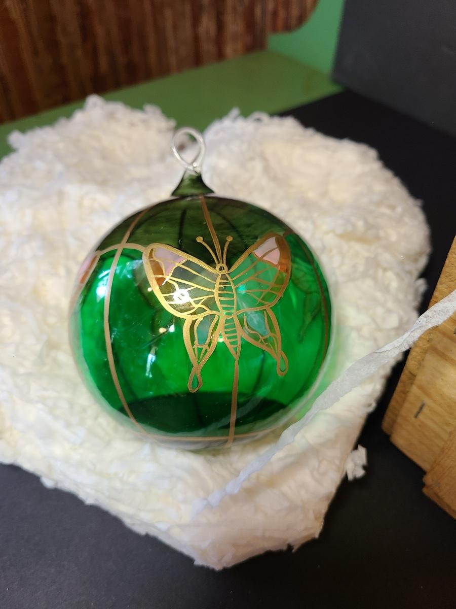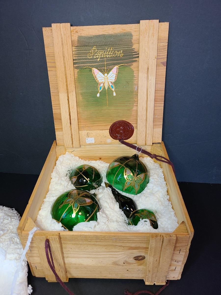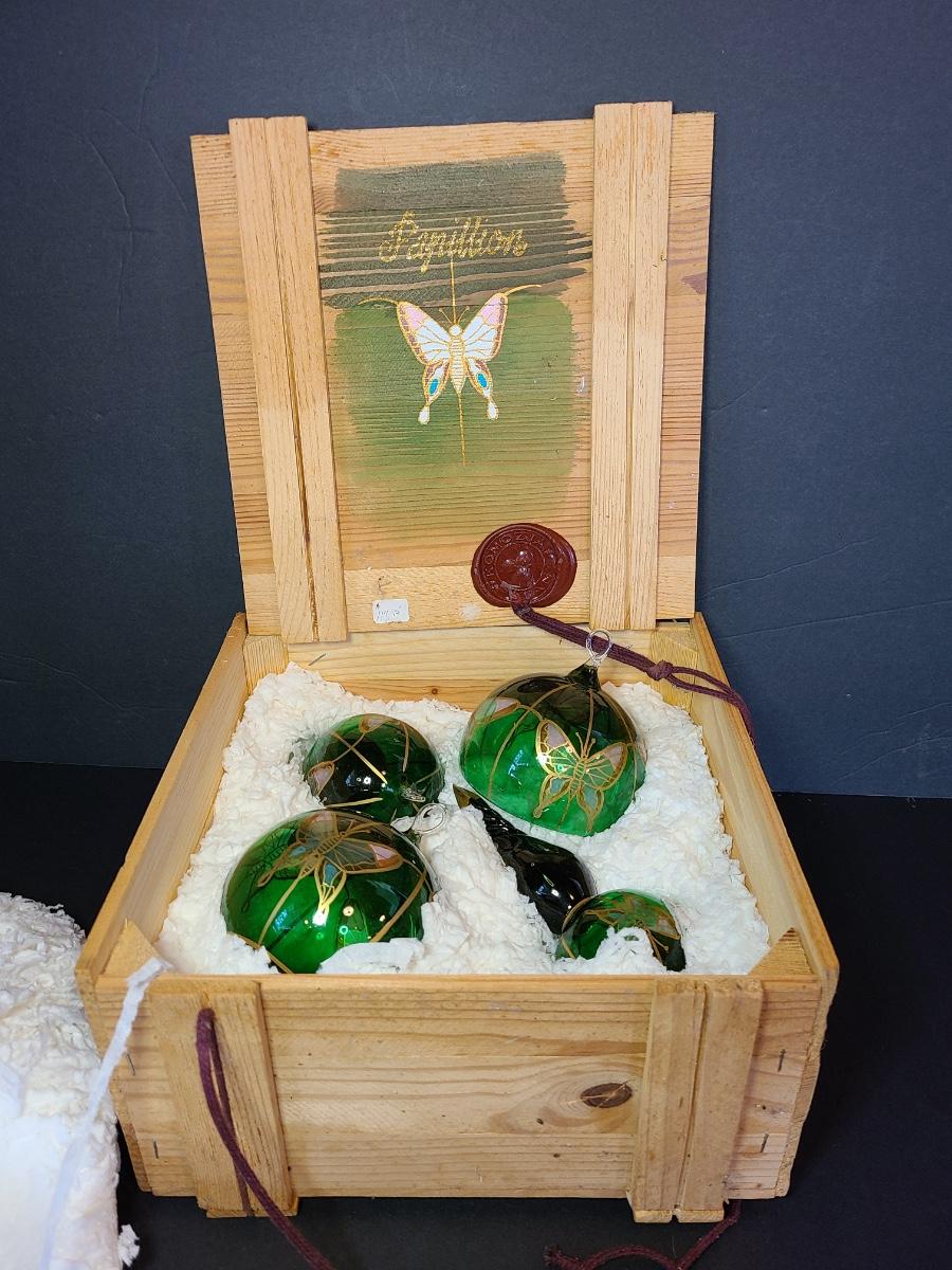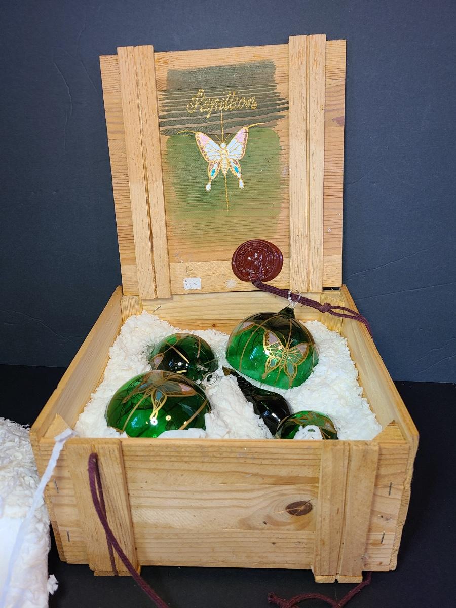LOT 57: New Komozja Poland Art Glass Hand Painted Butterfly Ornaments in "Butterfly Box"