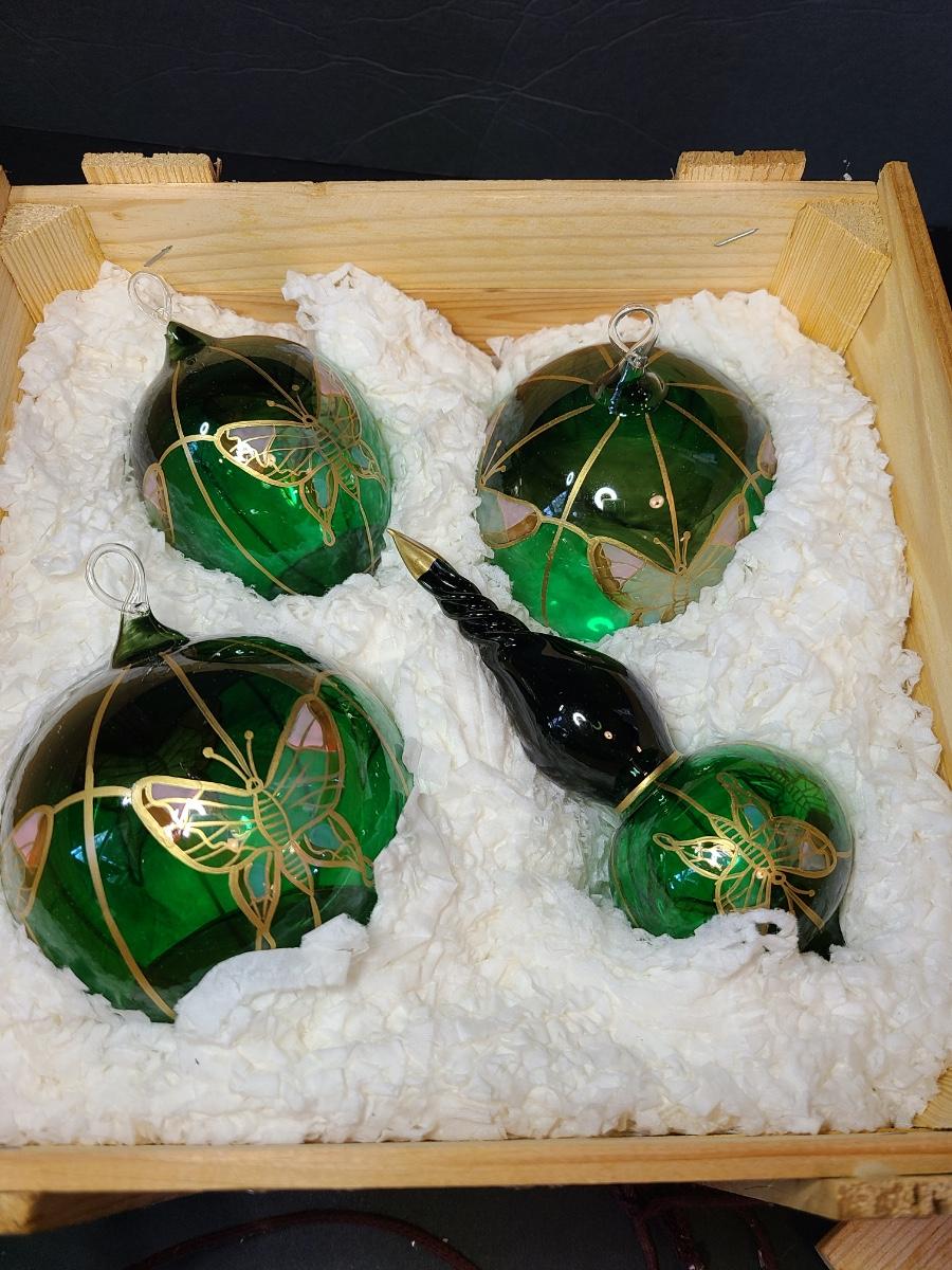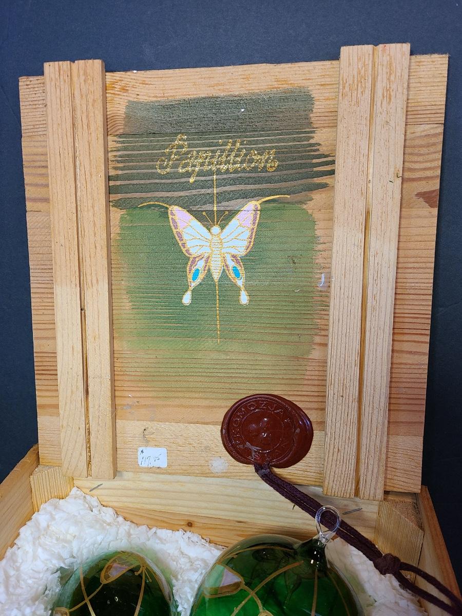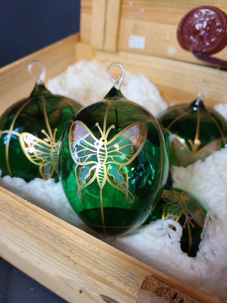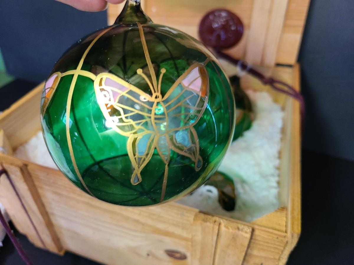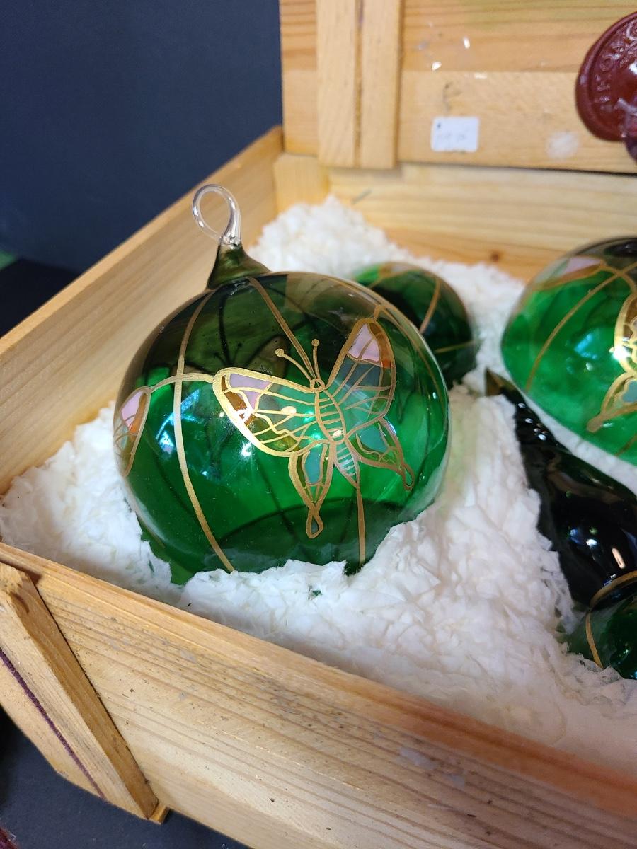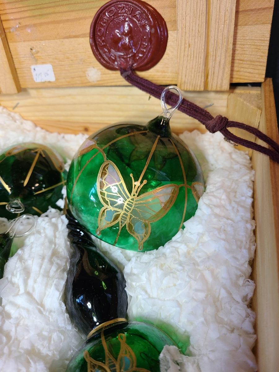 LOT 57: New Komozja Poland Art Glass Hand Painted Butterfly Ornaments in "Butterfly Box"