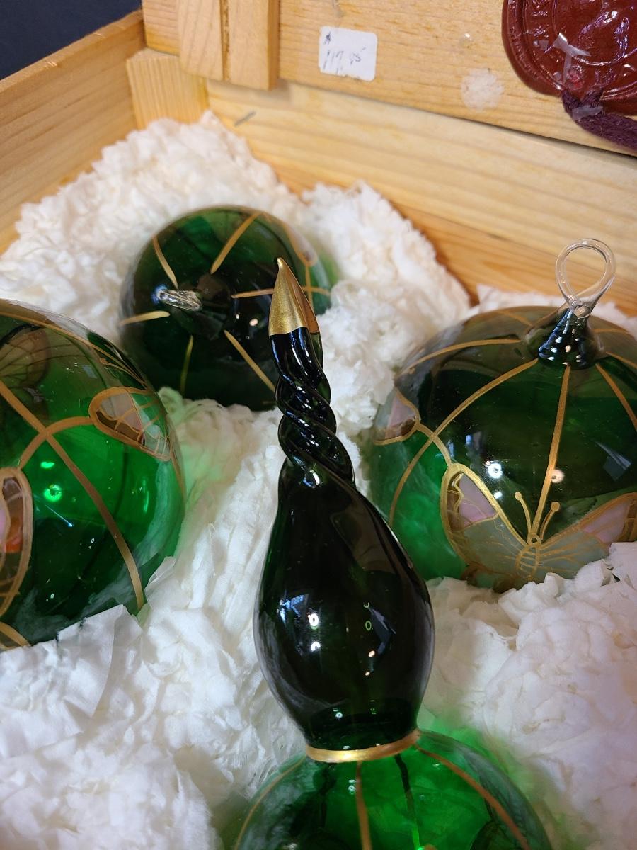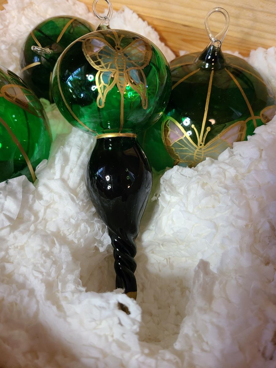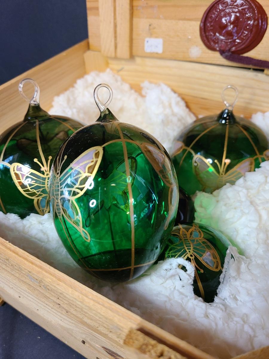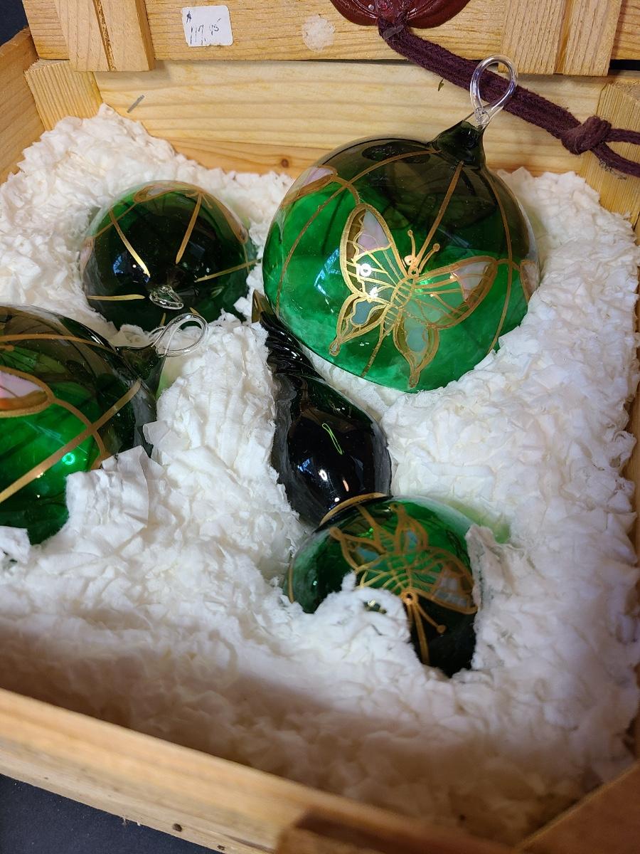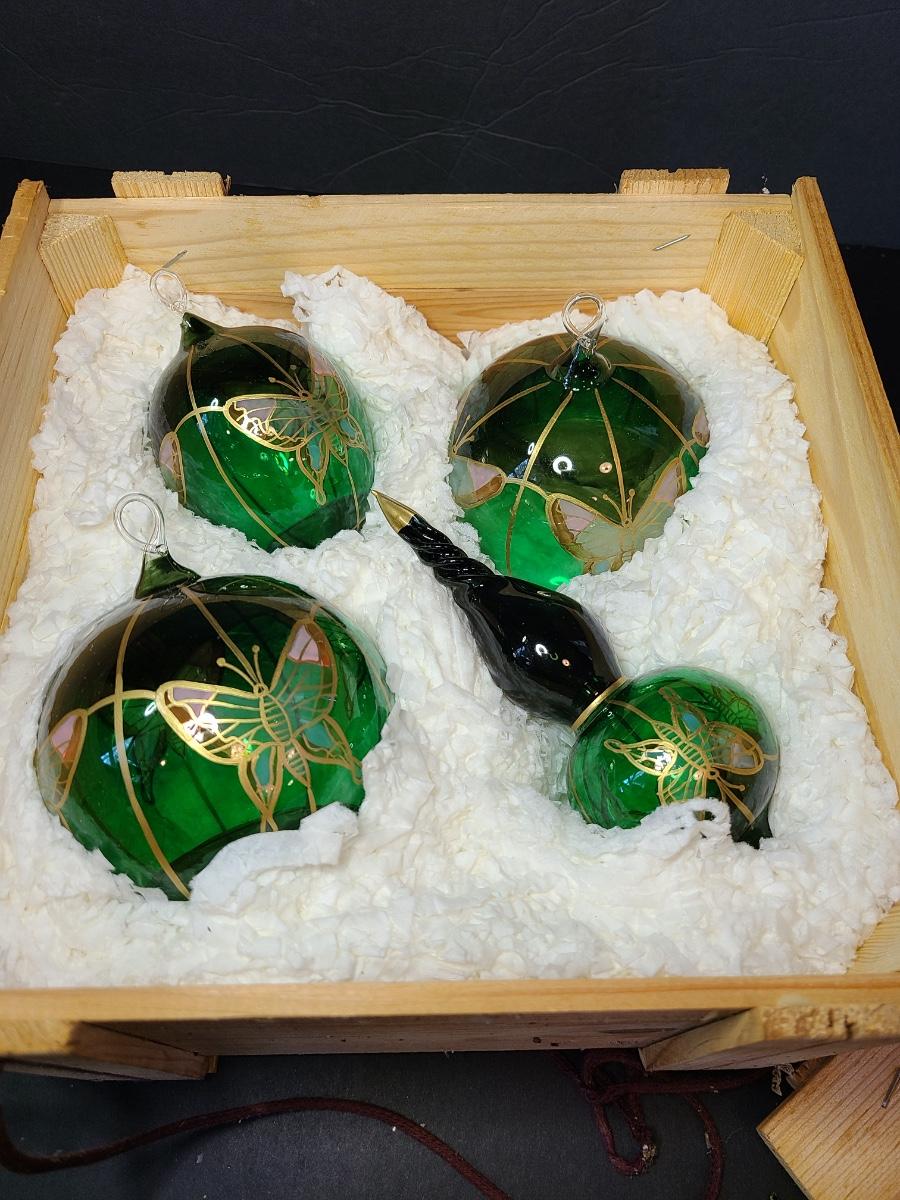 LOT 57: New Komozja Poland Art Glass Hand Painted Butterfly Ornaments in "Butterfly Box"
