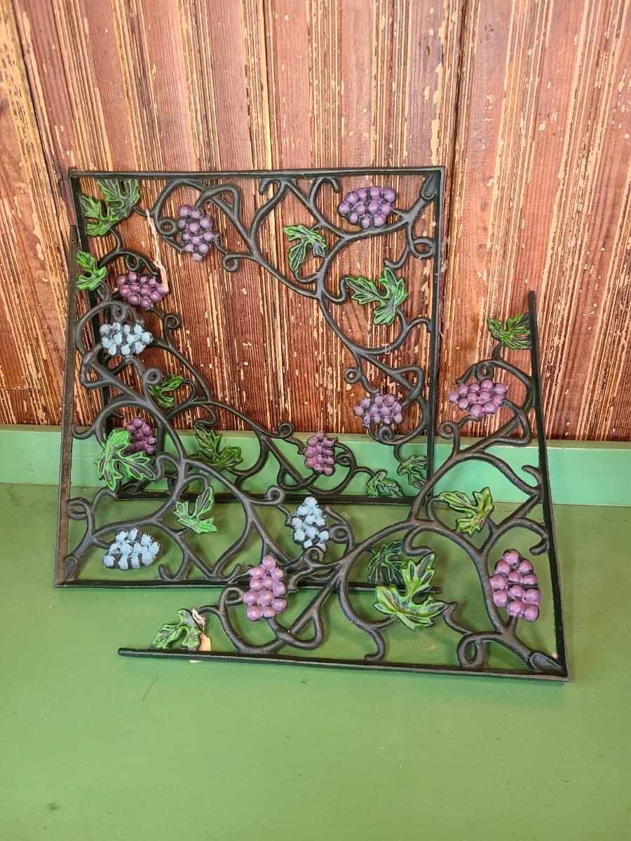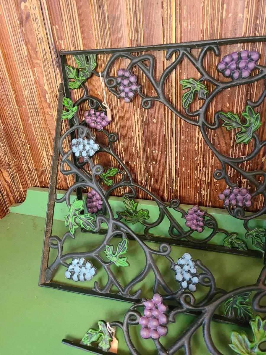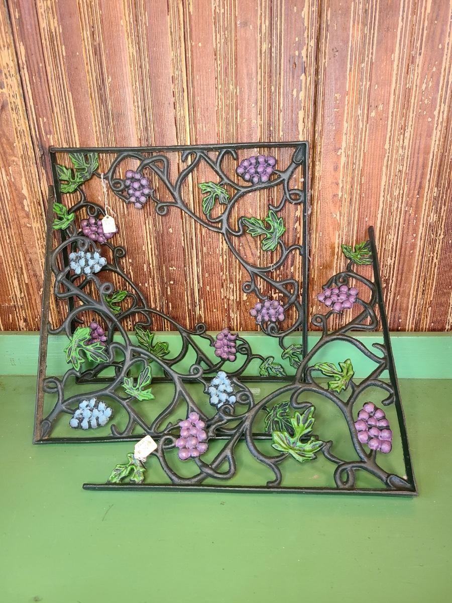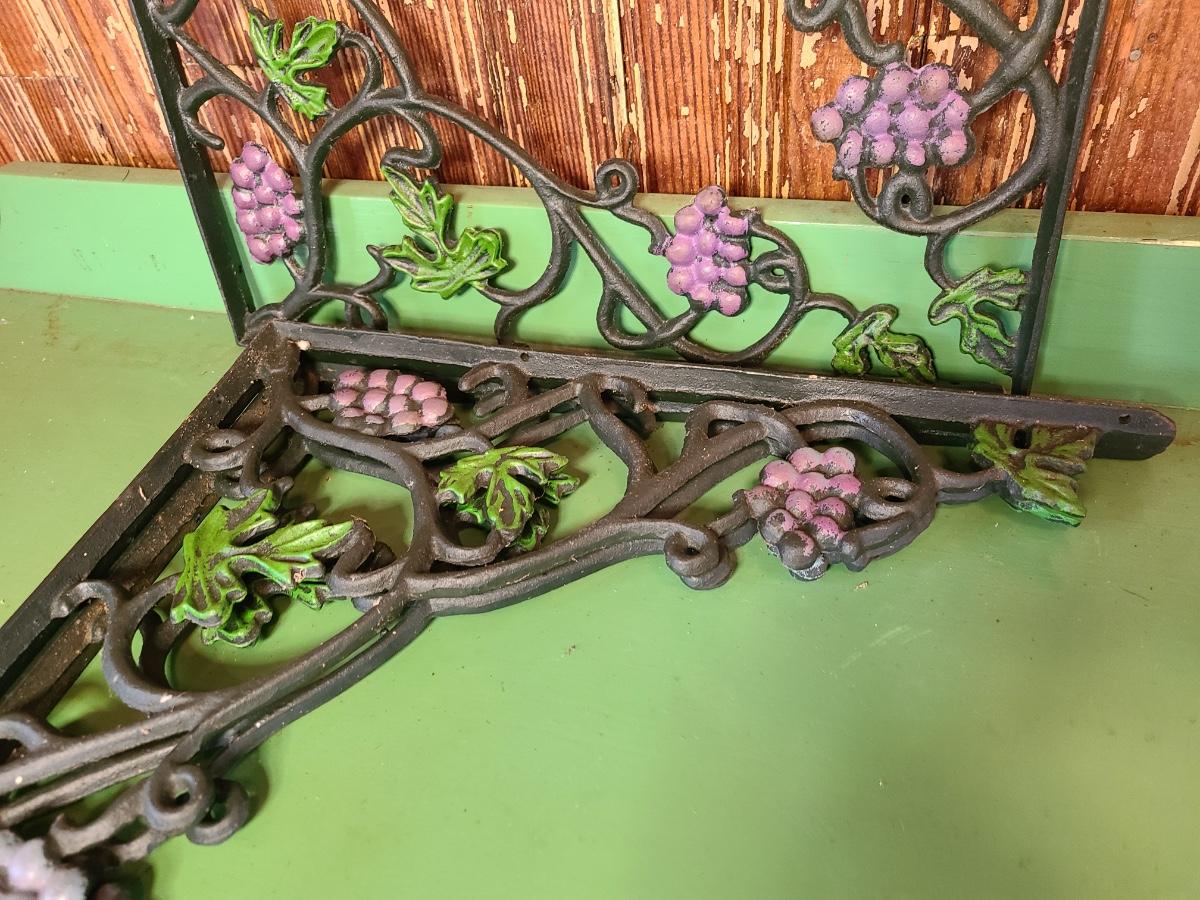 LOT 59: Cast Iron Grapevine Metal Shelf Brackets or Corner Corbels (2 sets)