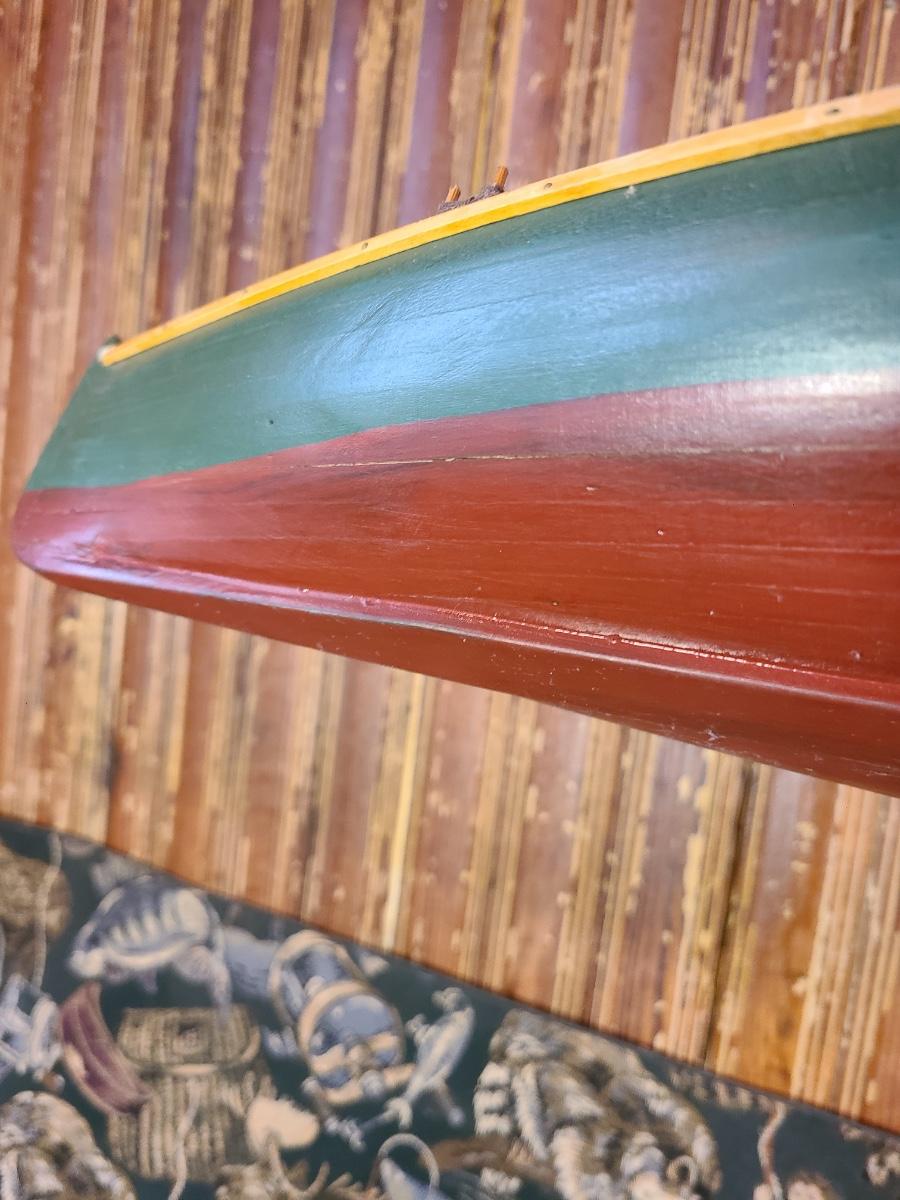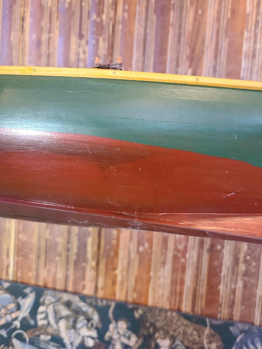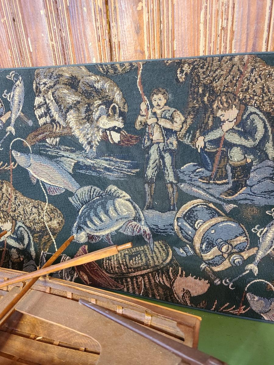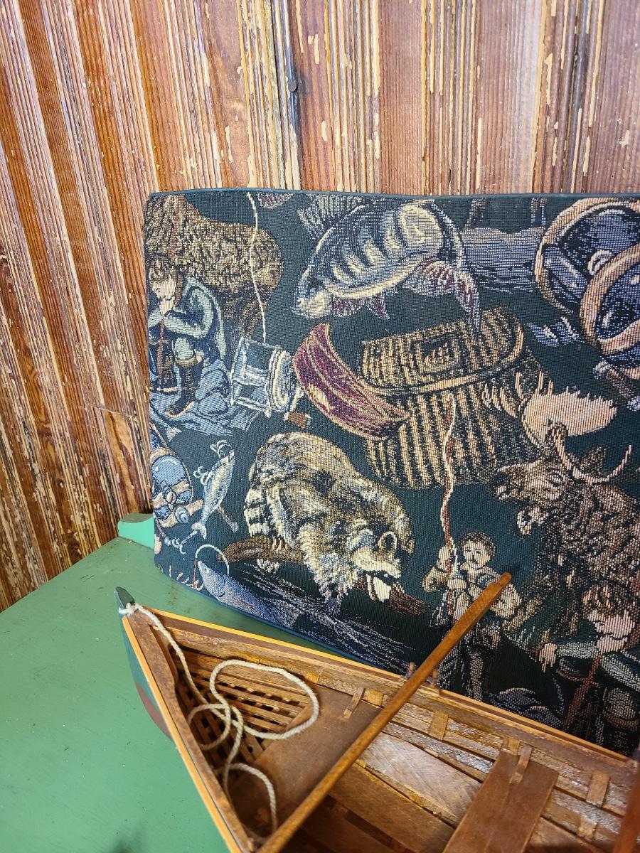The craftsmanship on the boat is amazing and it comes with a wood stand. Two wood carved whales for display, a tin fish candle holder and fishing tapestry/table runner. This does show water stains due to age on the back. The front is clean. Please see all pictures as they are the best representation of the items. The pictures show condition, measurements if taken, and what is included in the lot. Due to the large amount that we photograph and the time frame, we are not always able to take measurements. All items unless noted, are pre-owned and have been used. If you purchased furniture, you must bring help. We do not allow one person to carry large furniture out on their own. Bring help, tools and a truck for the safety of our client’s homes, and your personal safety. Any damages that result to the property including walls, and floors due to moving of the furniture will be charged to the buyer. Company policy. Thank you.
