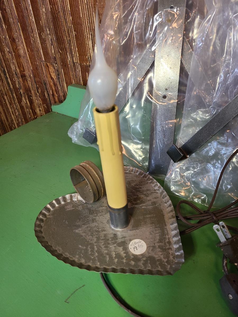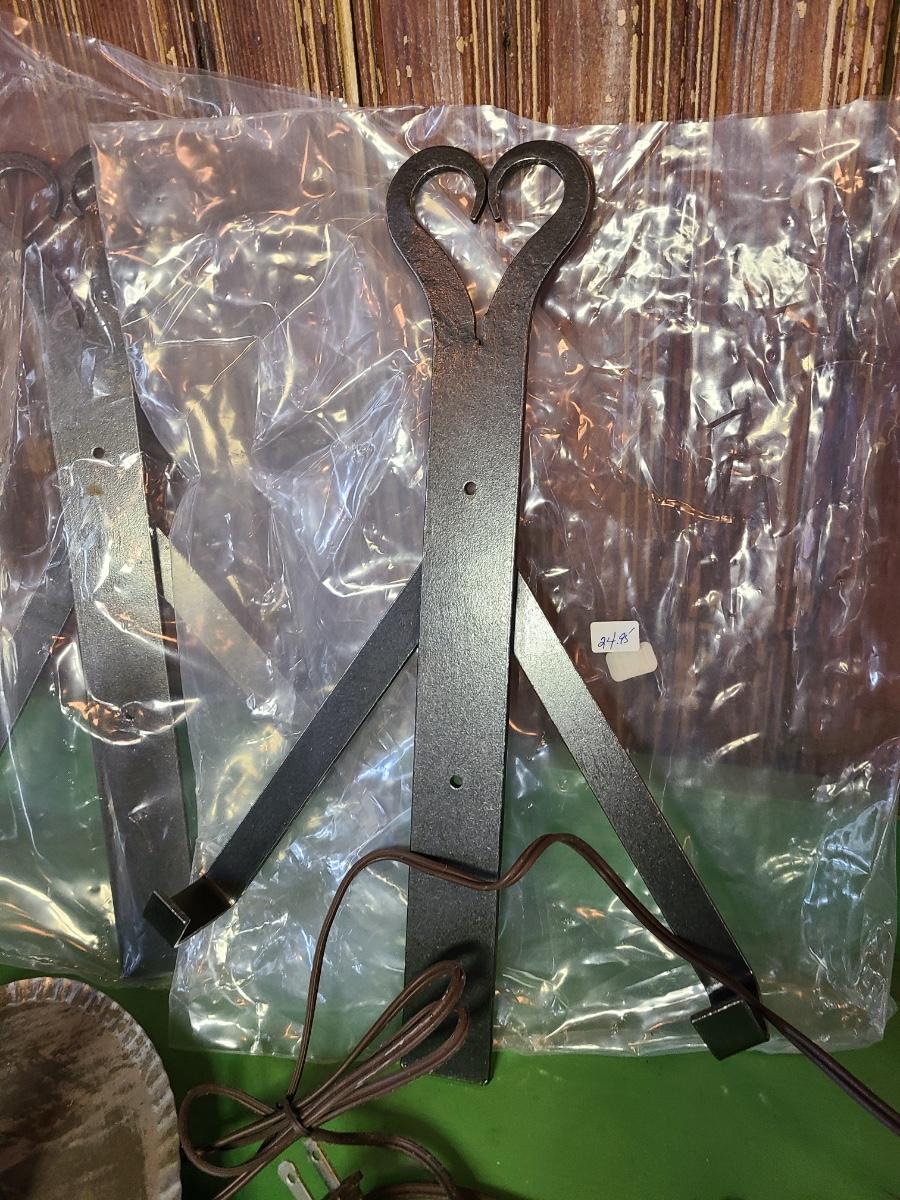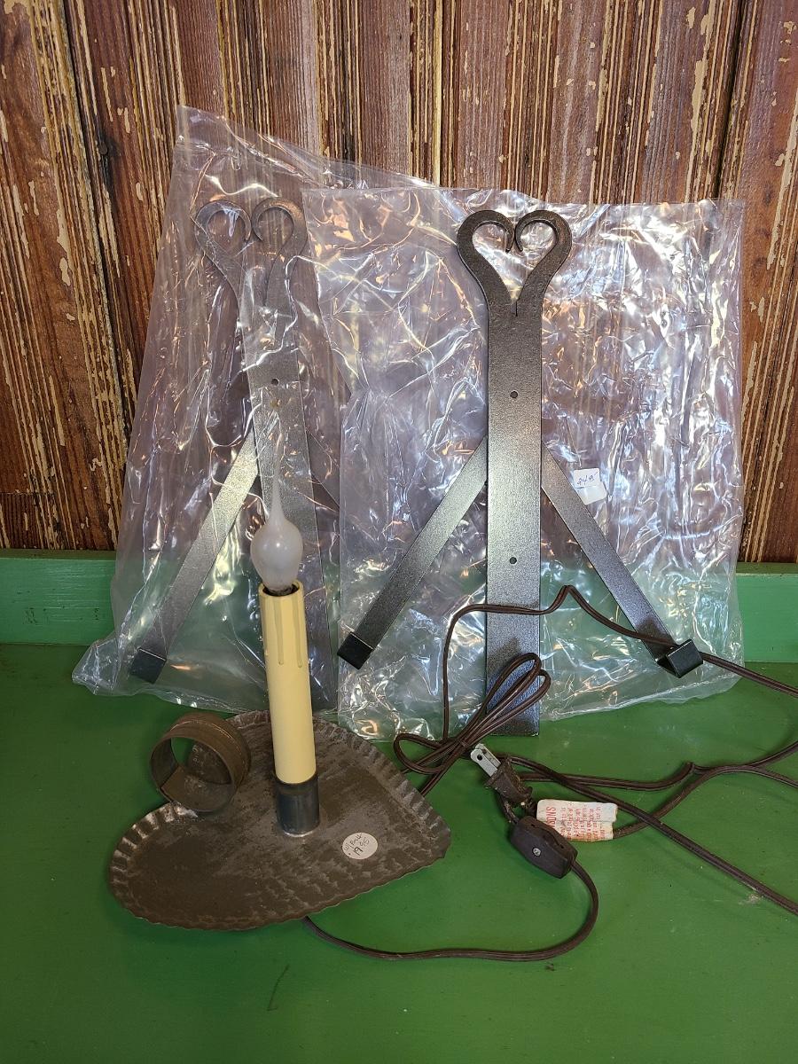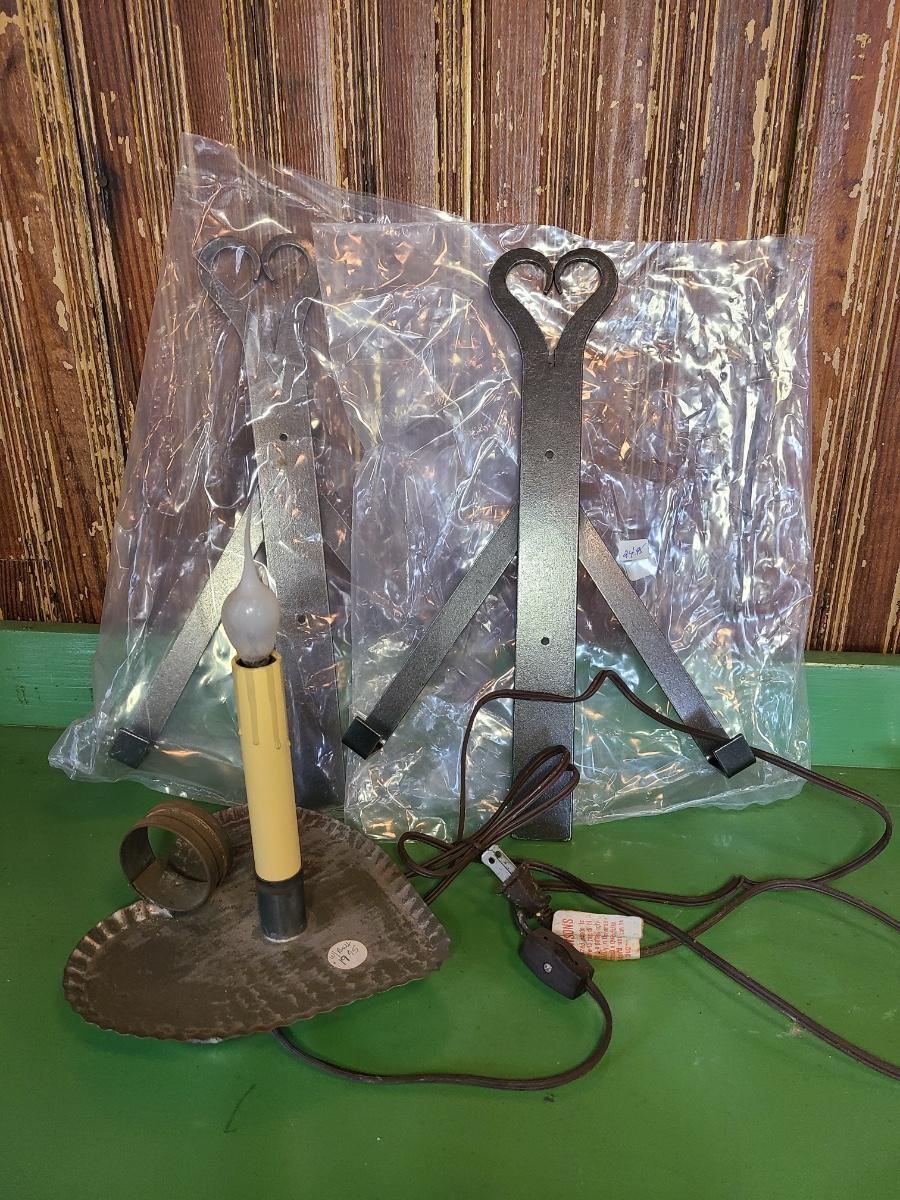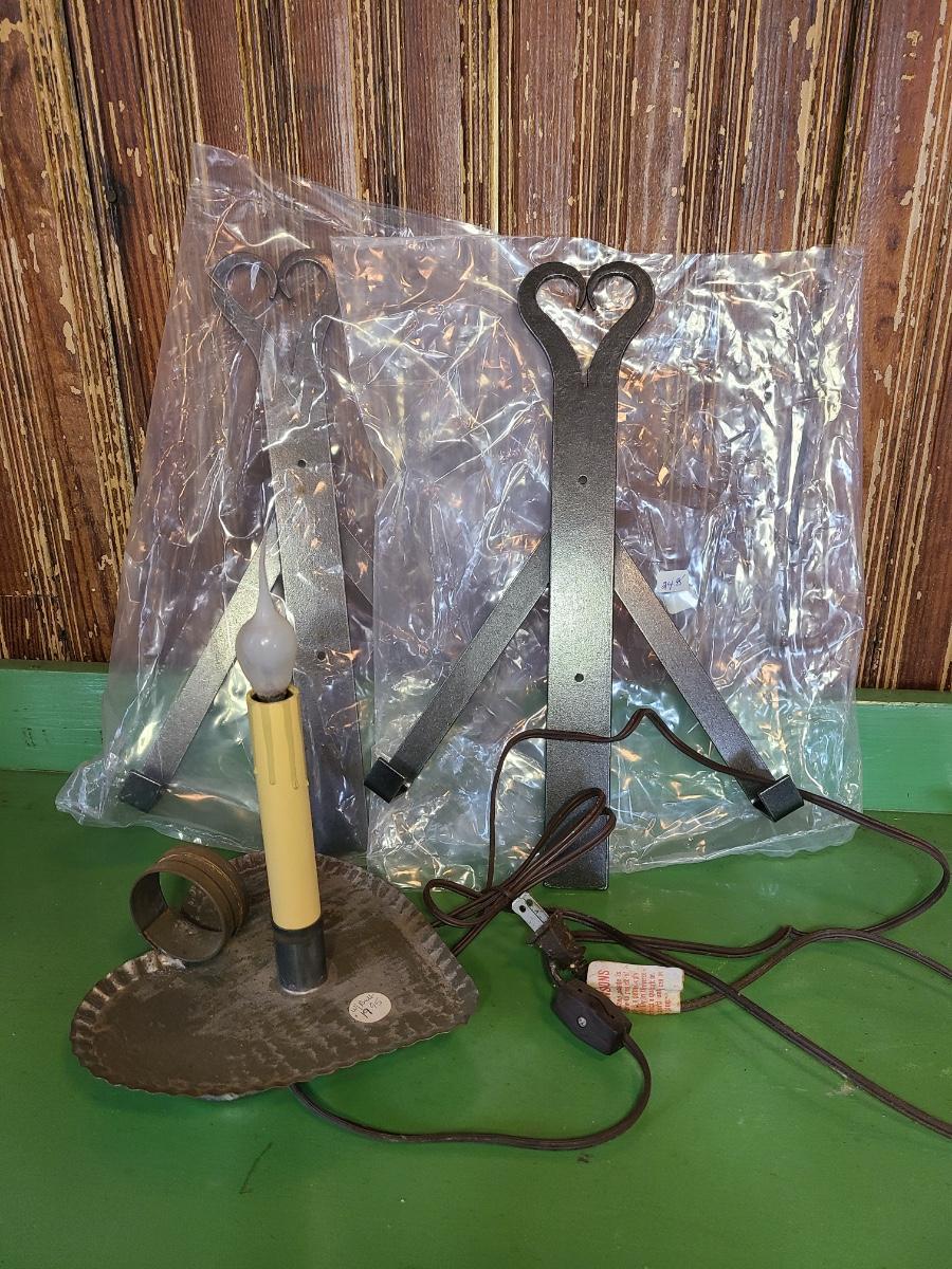 LOT 62: New Cast Iron Plate Holders, and Primitive Faux Candle Light