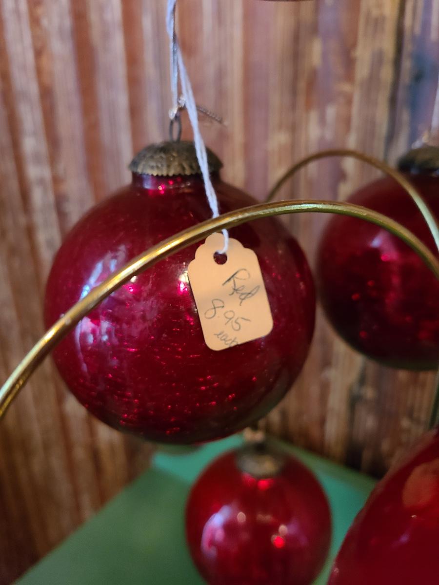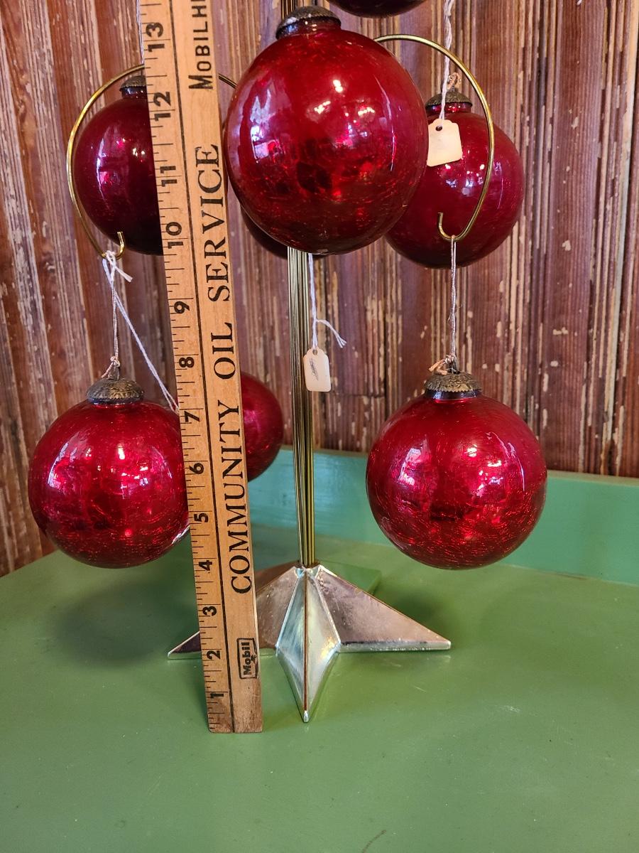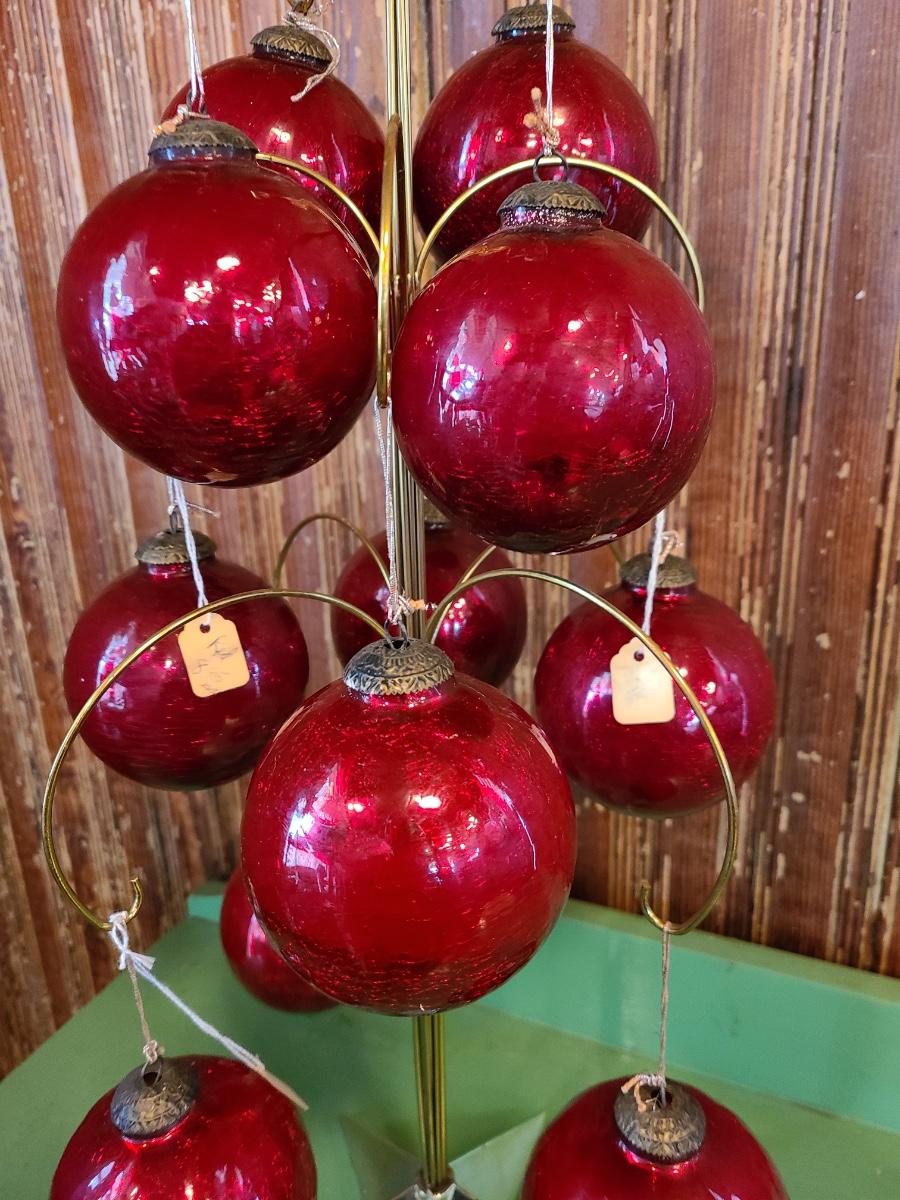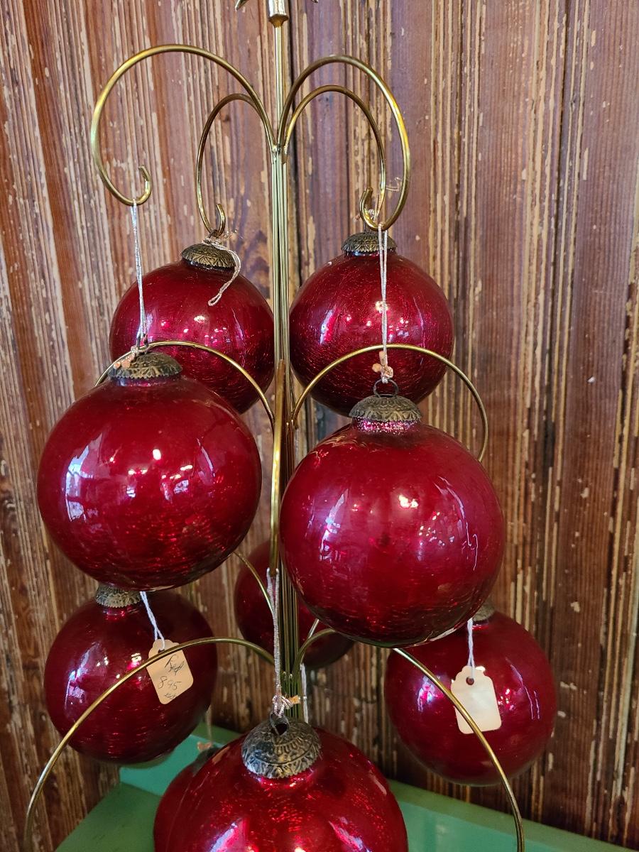These are each priced at $9.00 each, they are larger than a normal ornament and thicker red mercury glass. They come on a stand. Please see all pictures as they are the best representation of the items. The pictures show condition, measurements if taken, and what is included in the lot. Due to the large amount that we photograph and the time frame, we are not always able to take measurements. All items unless noted, are pre-owned and have been used. If you purchased furniture, you must bring help. We do not allow one person to carry large furniture out on their own. Bring help, tools and a truck for the safety of our client’s homes, and your personal safety. Any damages that result to the property including walls, and floors due to moving of the furniture will be charged to the buyer. Company policy. Thank you.