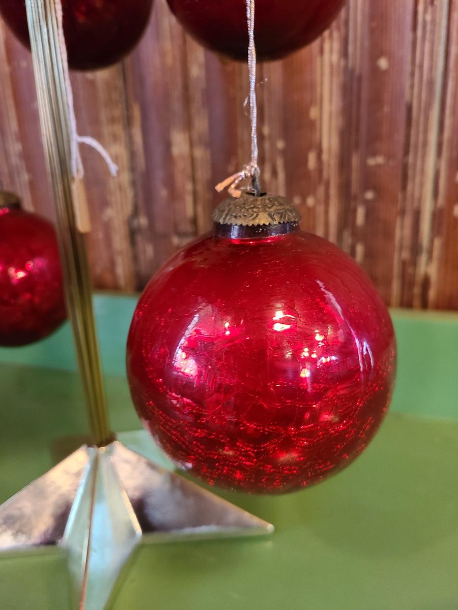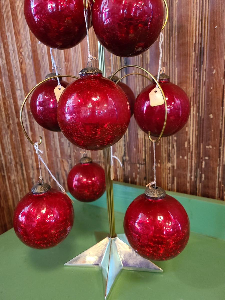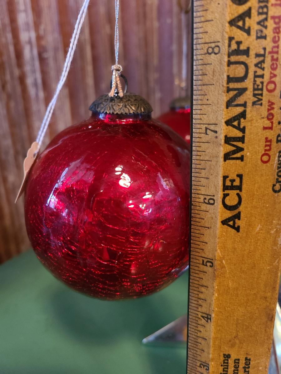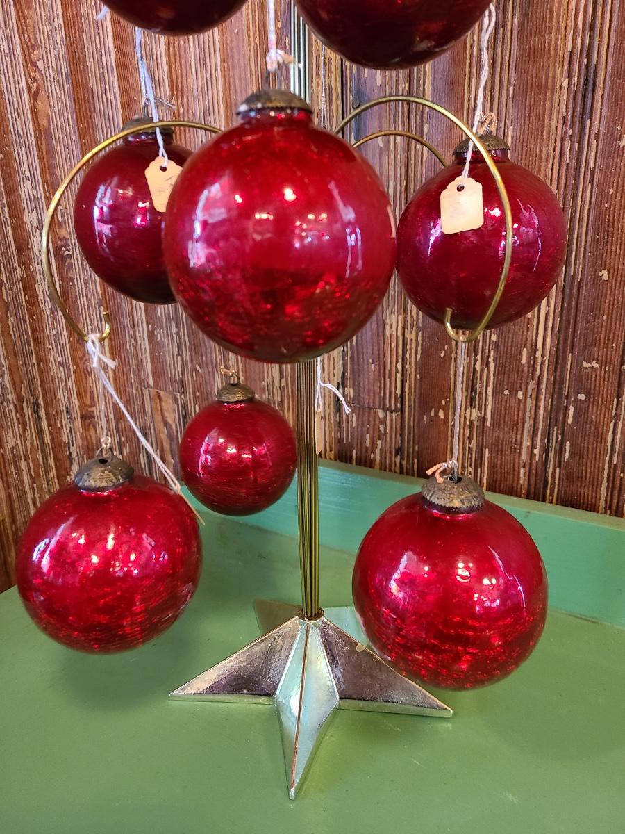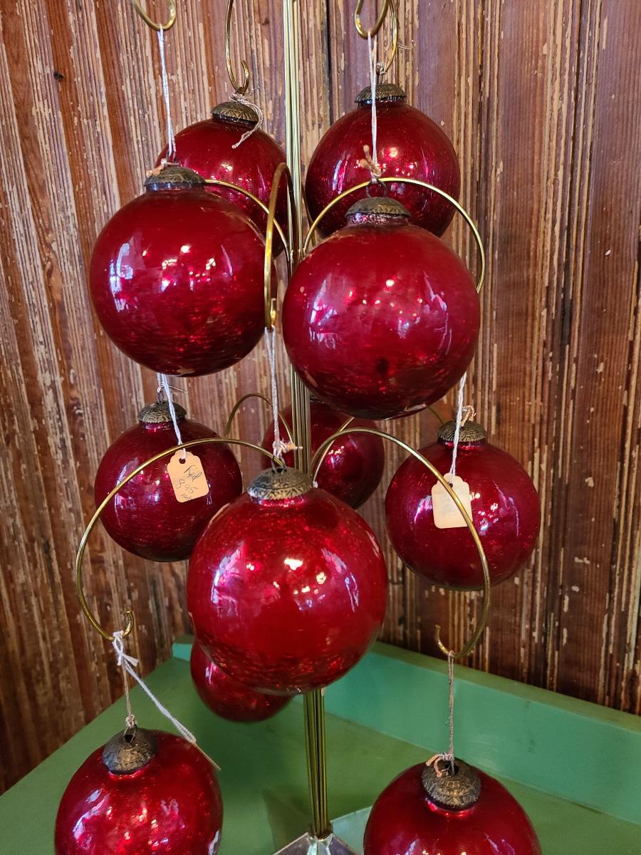 These are each priced at $9.00 each, they are larger than a normal ornament and thicker red mercury glass. They come on a stand. Please see all pictures as they are the best representation of the items. The pictures show condition, measurements if taken, and what is included in the lot. Due to the large amount that we photograph and the time frame, we are not always able to take measurements. All items unless noted, are pre-owned and have been used. If you purchased furniture, you must bring help. We do not allow one person to carry large furniture out on their own. Bring help, tools and a truck for the safety of our client’s homes, and your personal safety. Any damages that result to the property including walls, and floors due to moving of the furniture will be charged to the buyer. Company policy. Thank you.