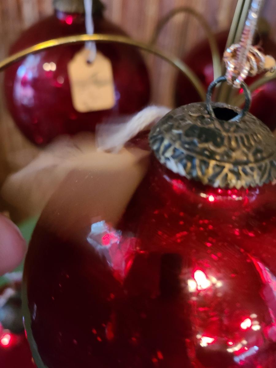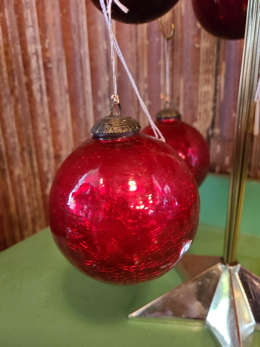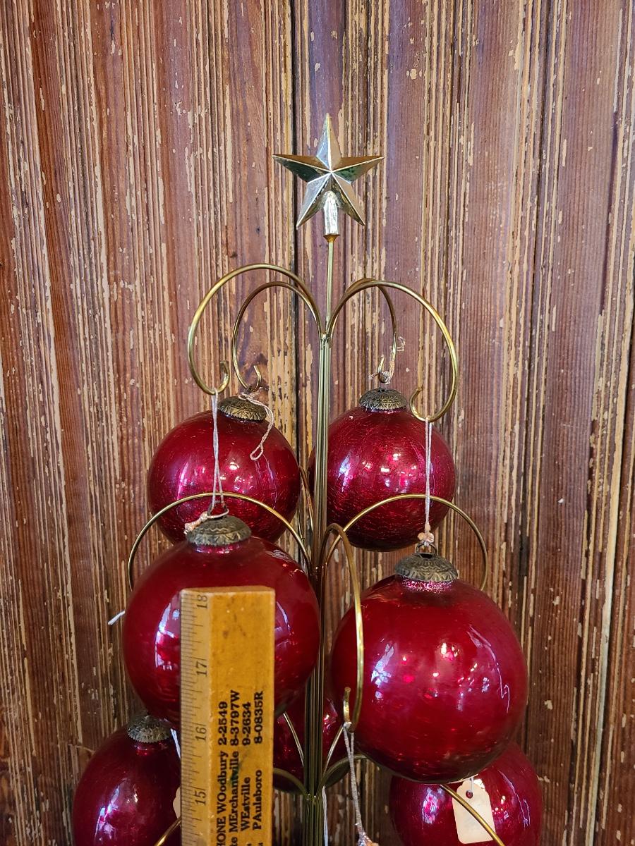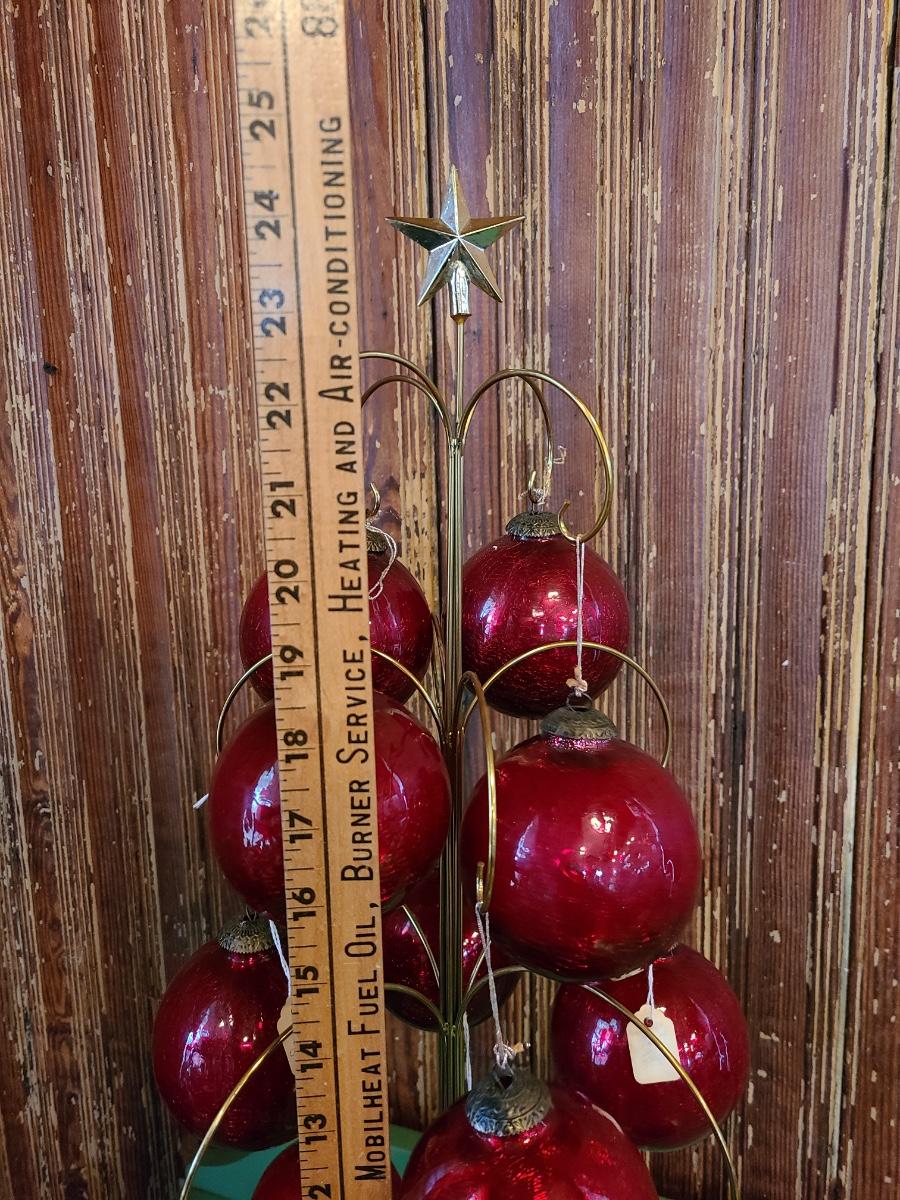 These are each priced at $9.00 each, they are larger than a normal ornament and thicker red mercury glass. They come on a stand. Please see all pictures as they are the best representation of the items. The pictures show condition, measurements if taken, and what is included in the lot. Due to the large amount that we photograph and the time frame, we are not always able to take measurements. All items unless noted, are pre-owned and have been used. If you purchased furniture, you must bring help. We do not allow one person to carry large furniture out on their own. Bring help, tools and a truck for the safety of our client’s homes, and your personal safety. Any damages that result to the property including walls, and floors due to moving of the furniture will be charged to the buyer. Company policy. Thank you.