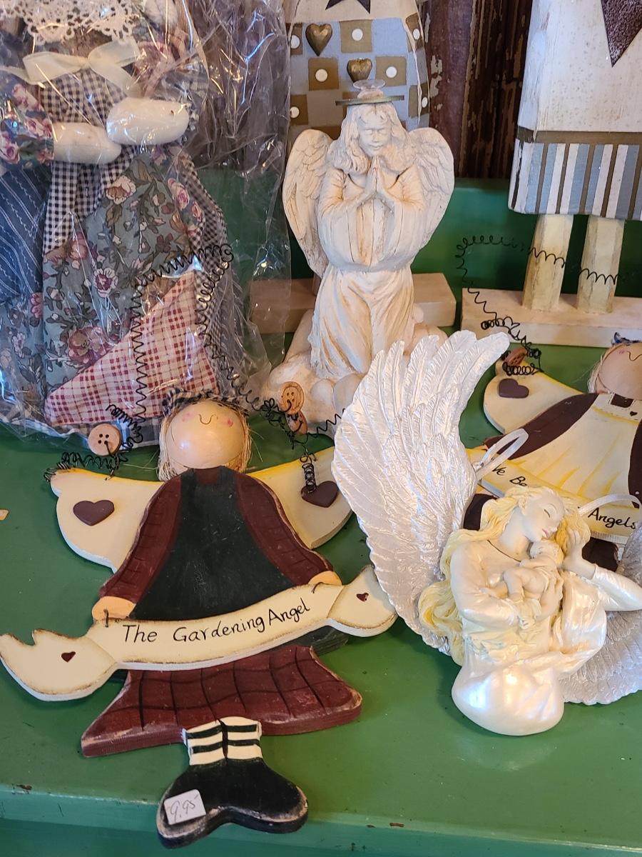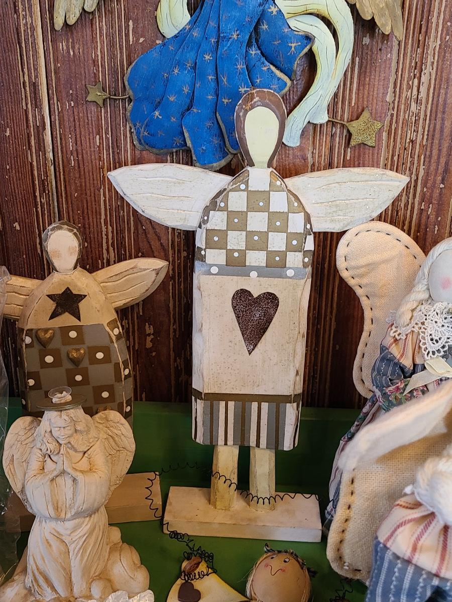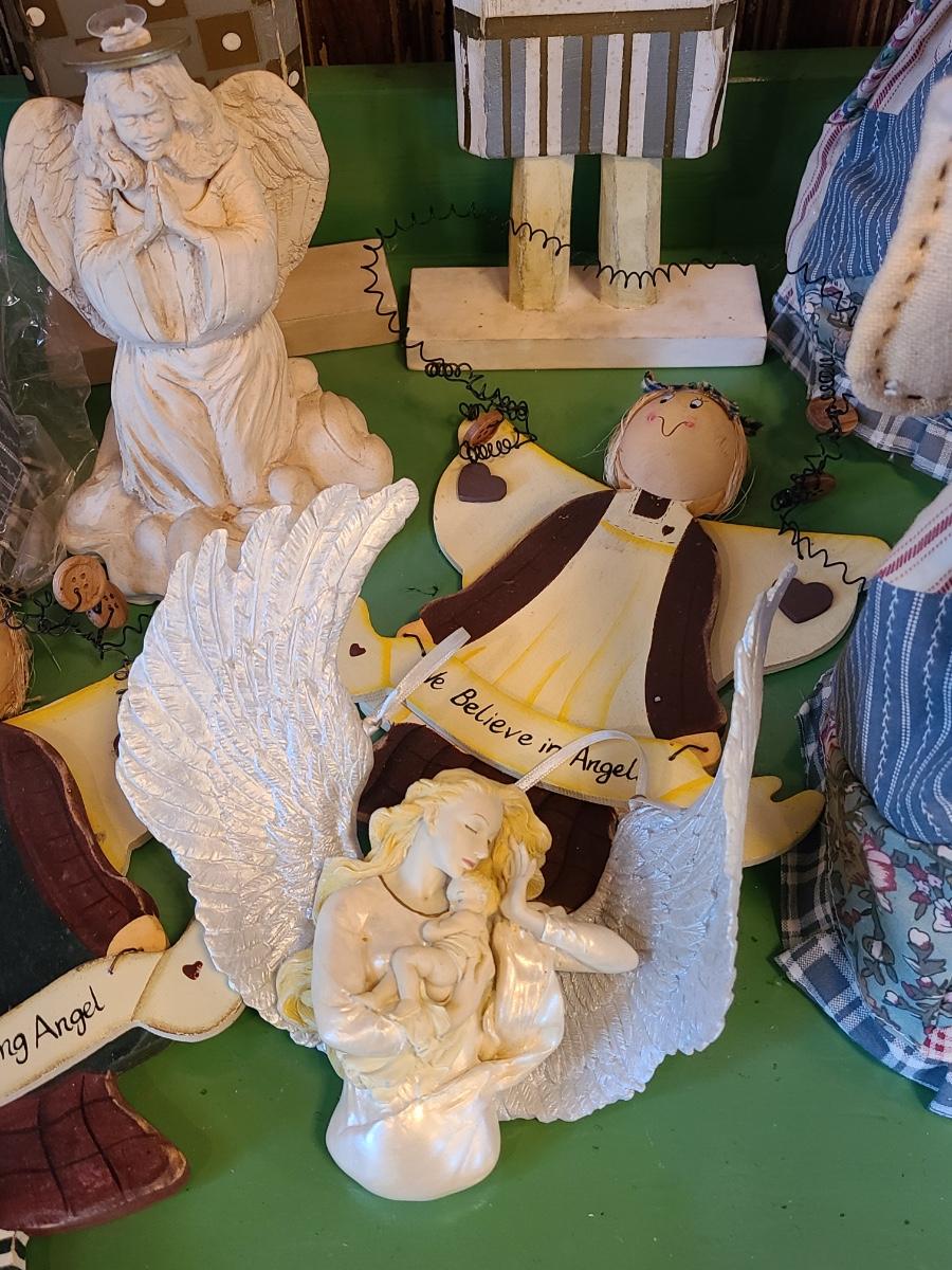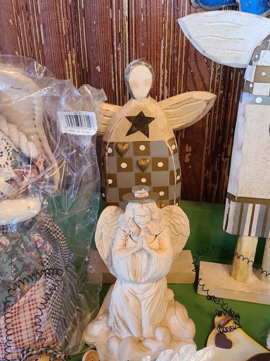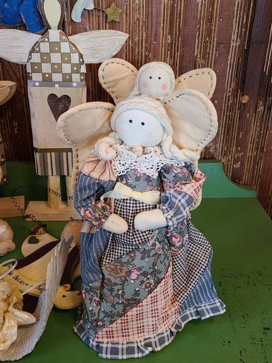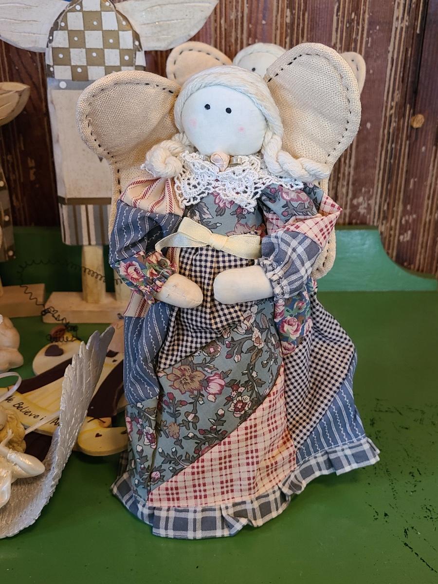LOT 100: Wood Angels, Primitive Cloth Angels, Metal Wall Hanging and More