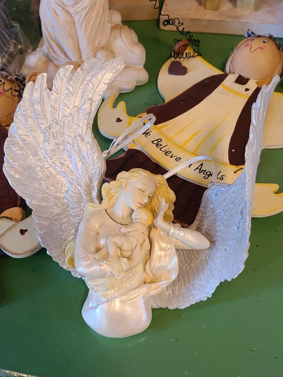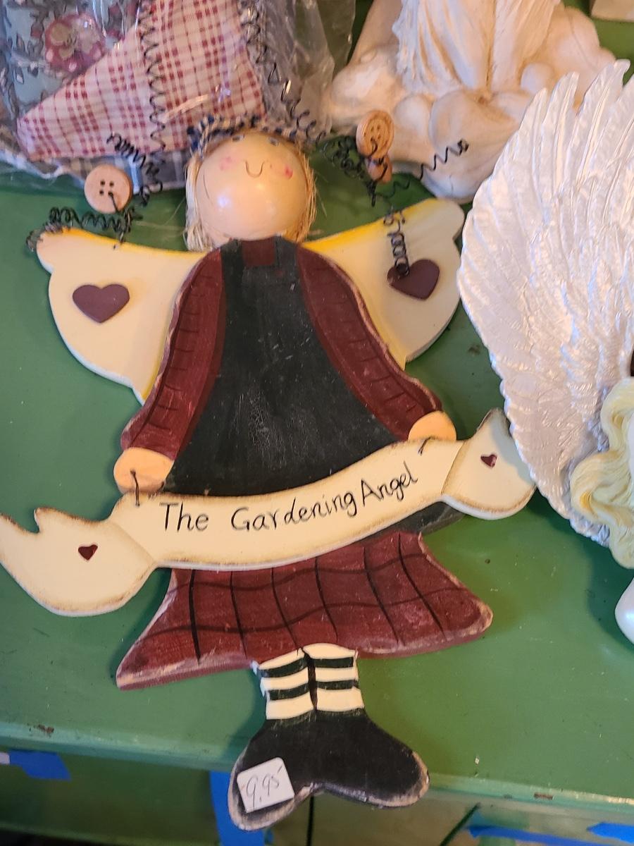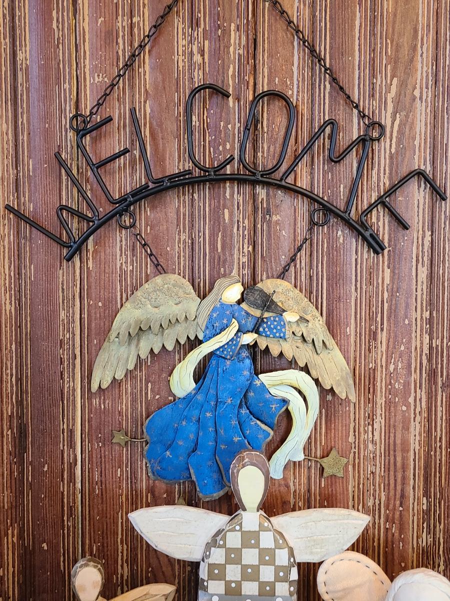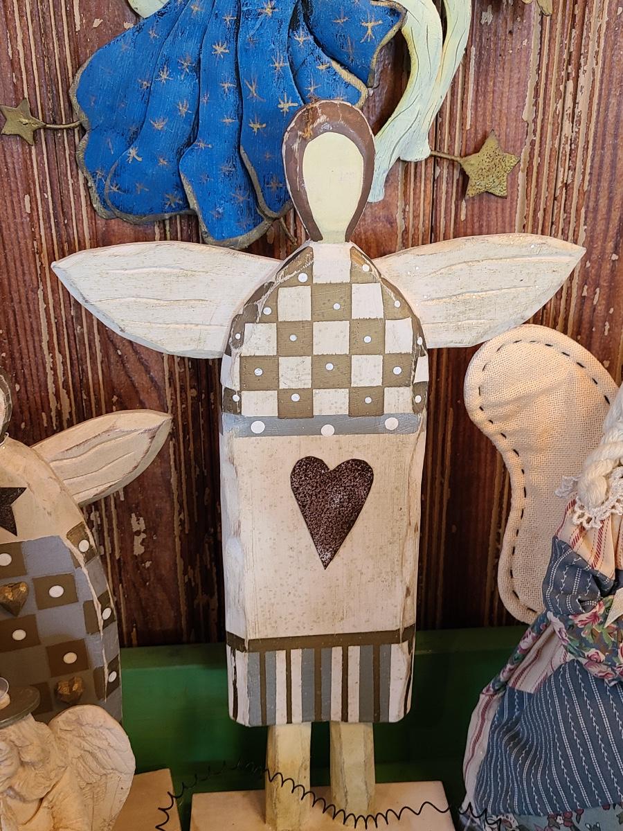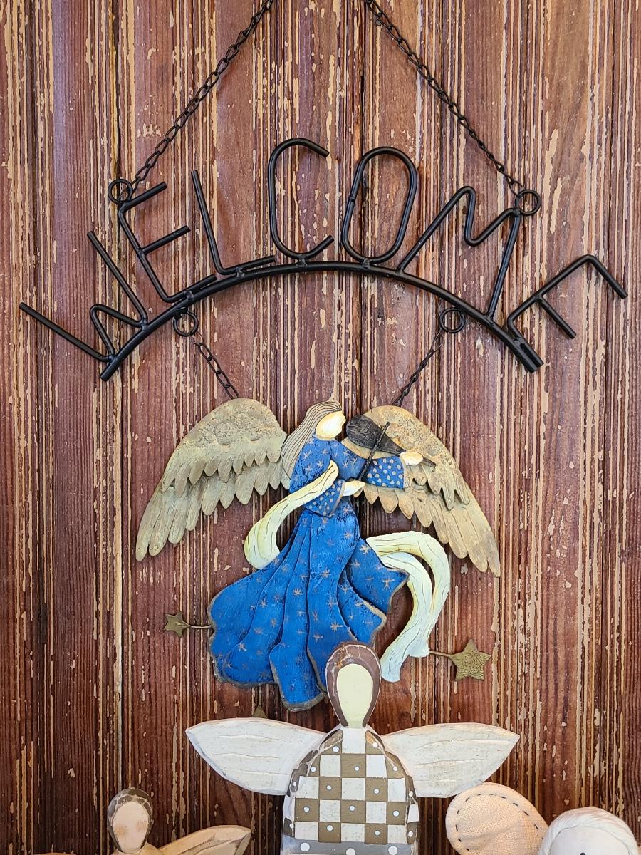 LOT 100: Wood Angels, Primitive Cloth Angels, Metal Wall Hanging and More