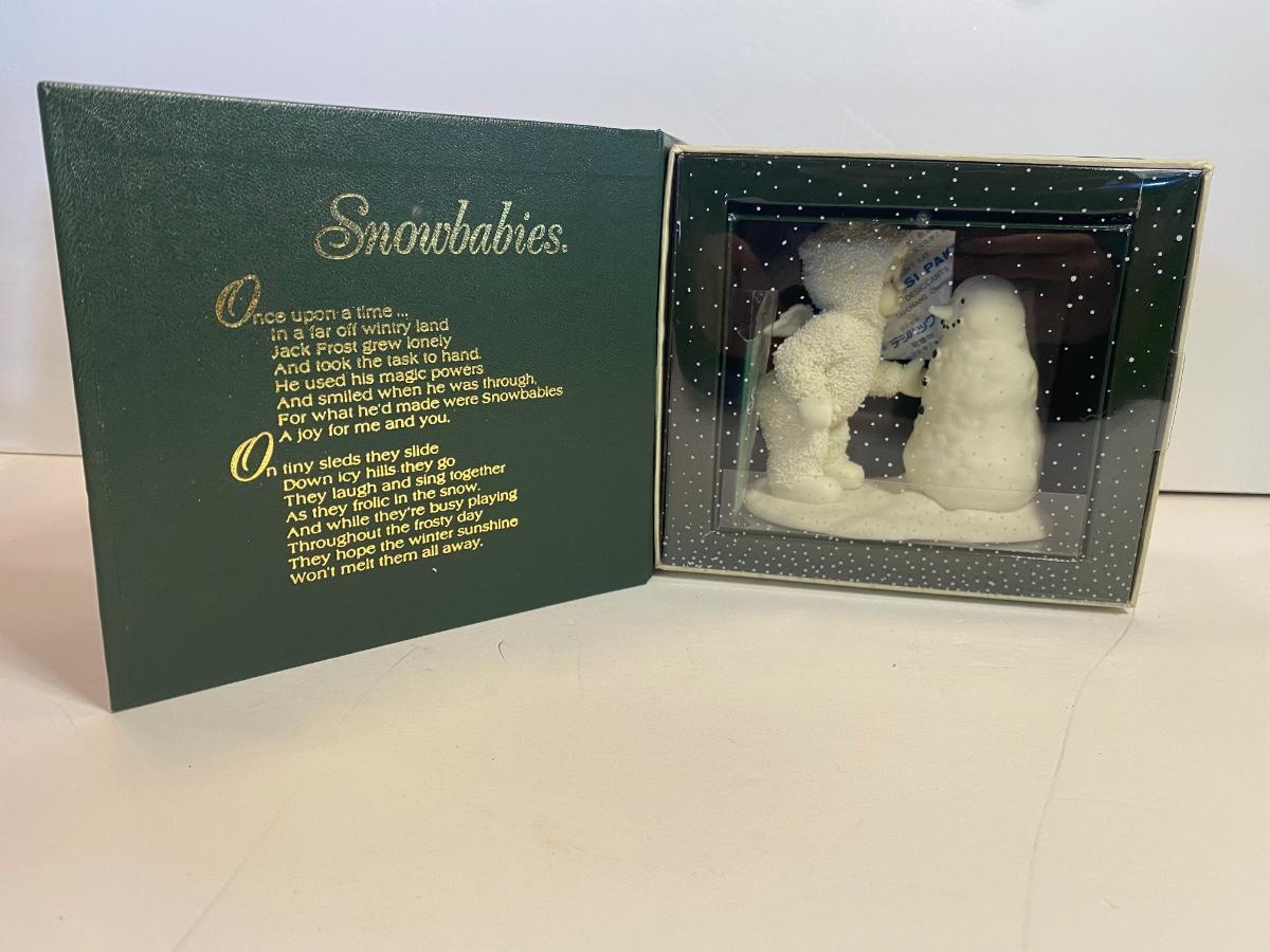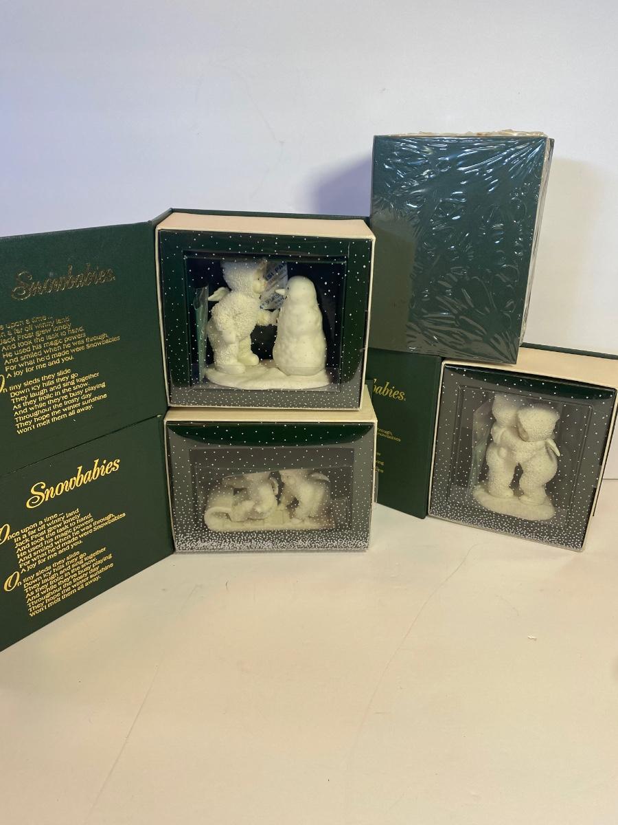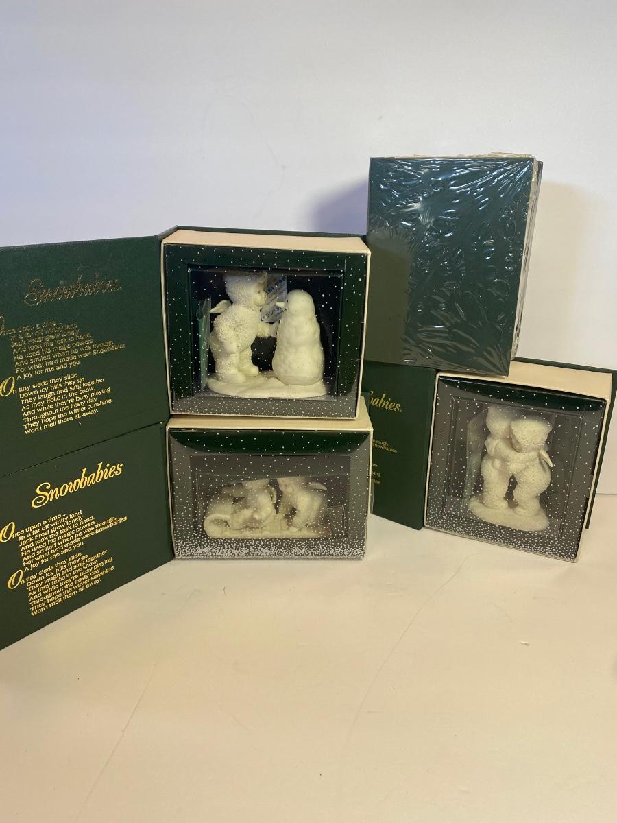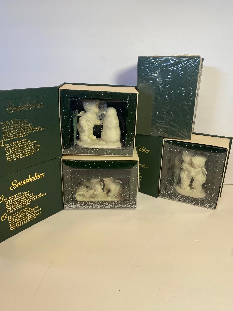 Collection of four snowbabies. New old stock. Boxes may show wear due to storage. Please see all pictures as they are the best representation of the items. The pictures show condition, measurements if taken, and what is included in the lot. Due to the large amount that we photograph and the time frame, we are not always able to take measurements. All items unless noted, are pre-owned and have been used. If you purchased furniture, you must bring help. We do not allow one person to carry large furniture out on their own. Bring help, tools and a truck for the safety of our client’s homes, and your personal safety. Any damages that result to the property including walls, and floors due to moving of the furniture will be charged to the buyer. Company policy. Thank you.