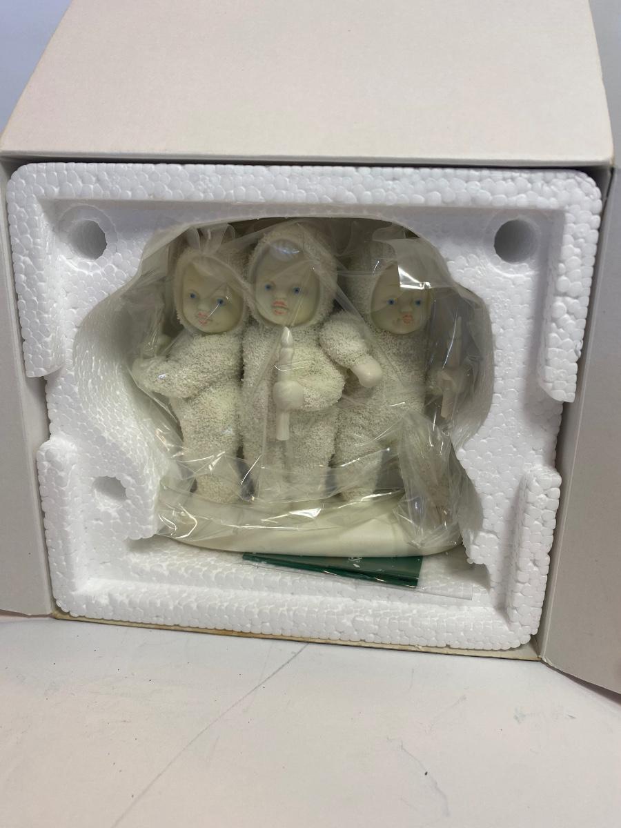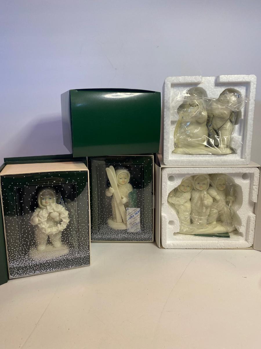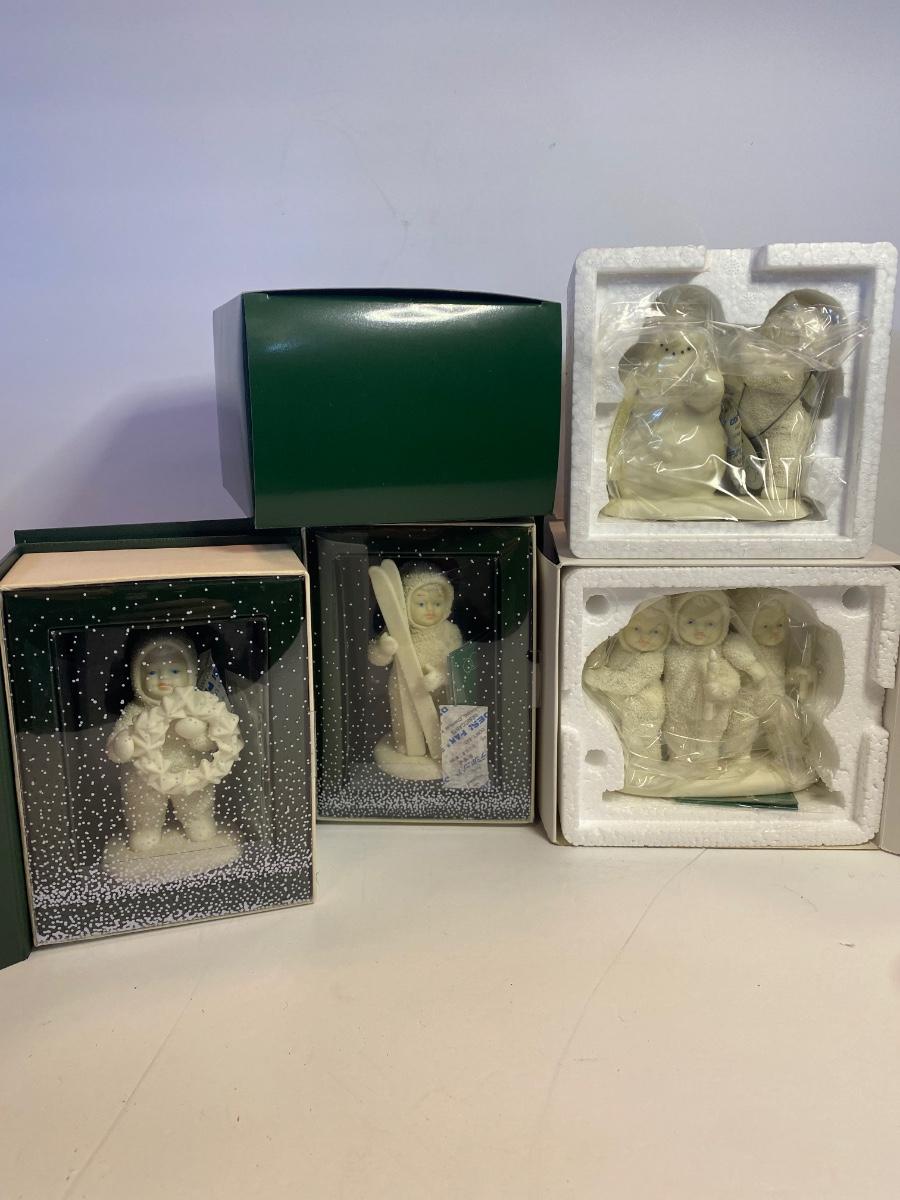 Collection of 4 Snowbabies. New old stock. Boxes may show wear due to storage. Please see all pictures as they are the best representation of the items. The pictures show condition, measurements if taken, and what is included in the lot. Due to the large amount that we photograph and the time frame, we are not always able to take measurements. All items unless noted, are pre-owned and have been used. If you purchased furniture, you must bring help. We do not allow one person to carry large furniture out on their own. Bring help, tools and a truck for the safety of our client’s homes, and your personal safety. Any damages that result to the property including walls, and floors due to moving of the furniture will be charged to the buyer. Company policy. Thank you.