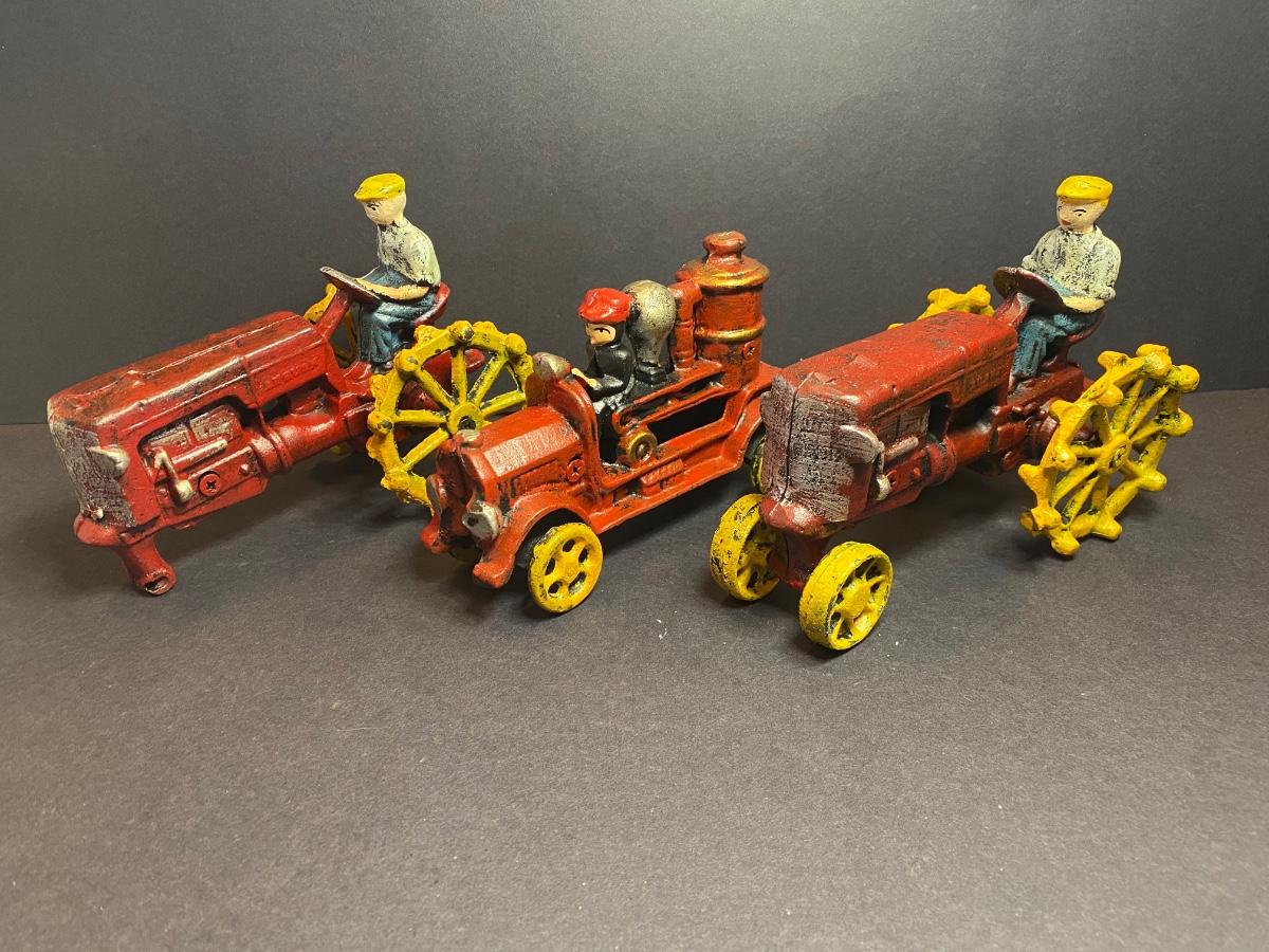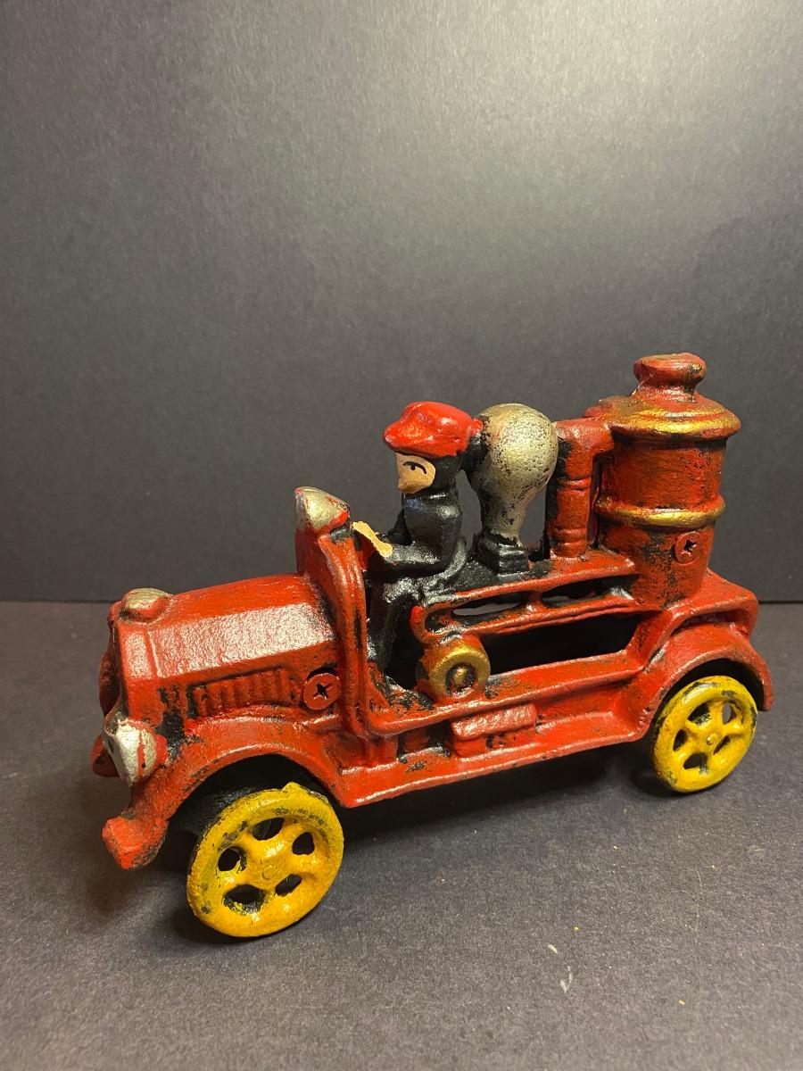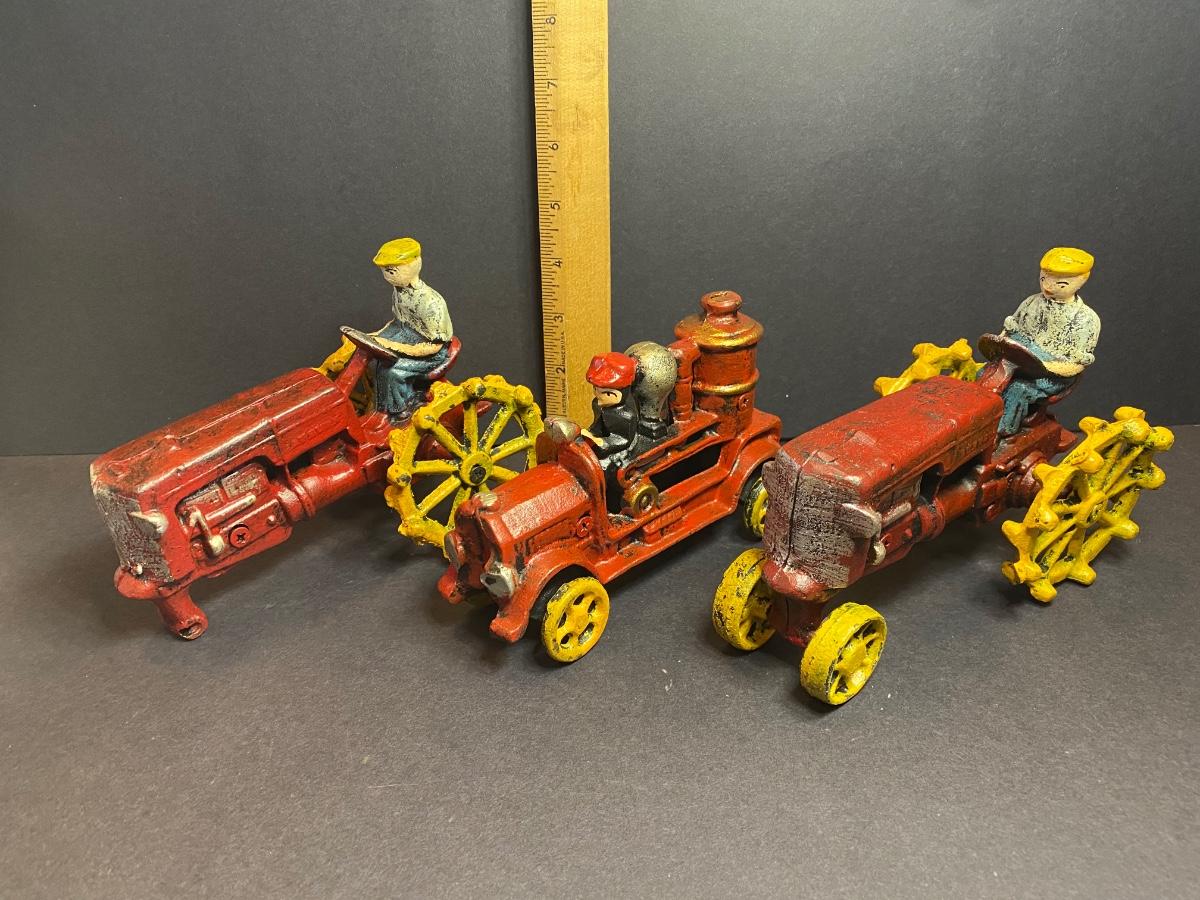 LOT 114G: Cast Iron Farmers & Firetruck