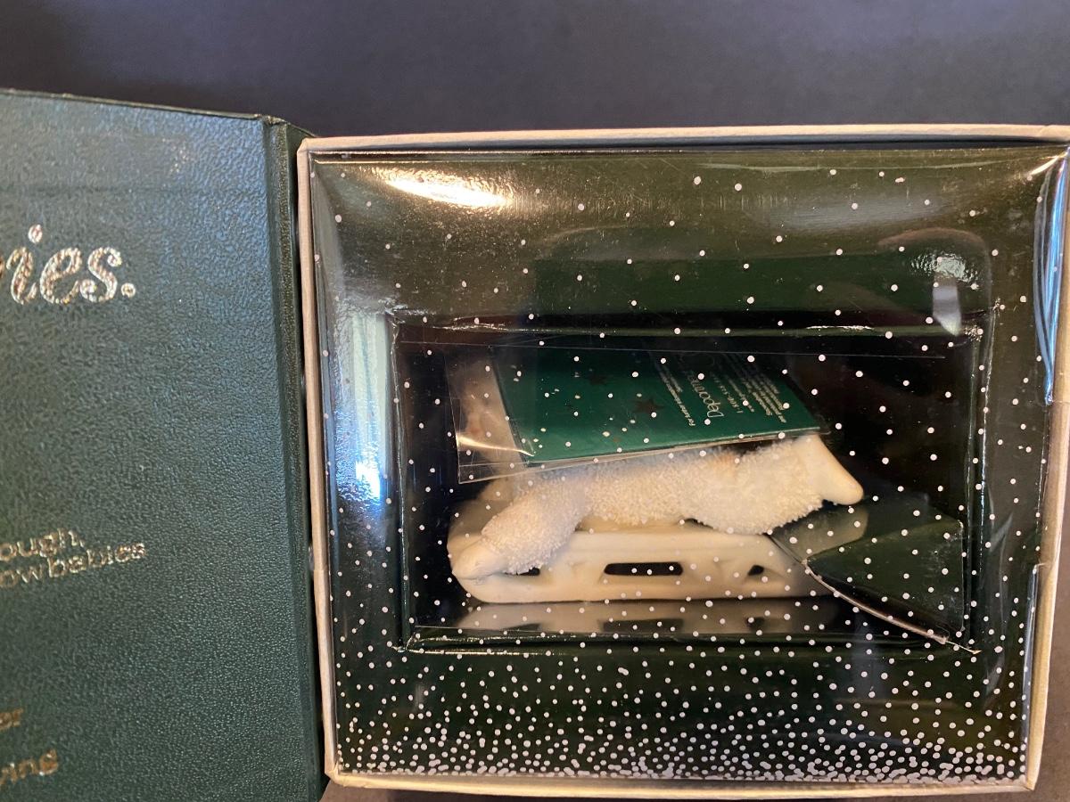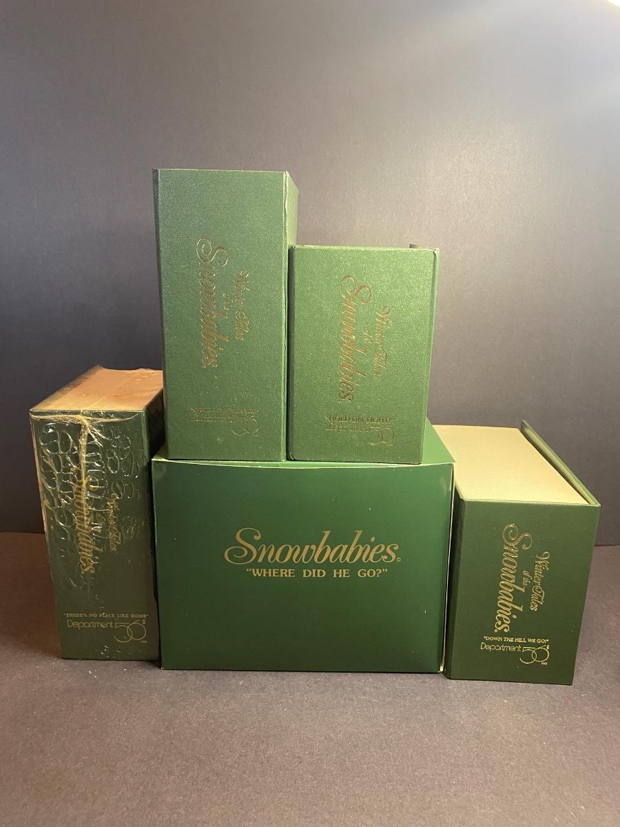Collection of five Snowbabies. New old stock. Boxes may show wear due to storage. Please see all pictures as they are the best representation of the items. The pictures show condition, measurements if taken, and what is included in the lot. Due to the large amount that we photograph and the time frame, we are not always able to take measurements. All items unless noted, are pre-owned and have been used. If you purchased furniture, you must bring help. We do not allow one person to carry large furniture out on their own. Bring help, tools and a truck for the safety of our client’s homes, and your personal safety. Any damages that result to the property including walls, and floors due to moving of the furniture will be charged to the buyer. Company policy. Thank you.