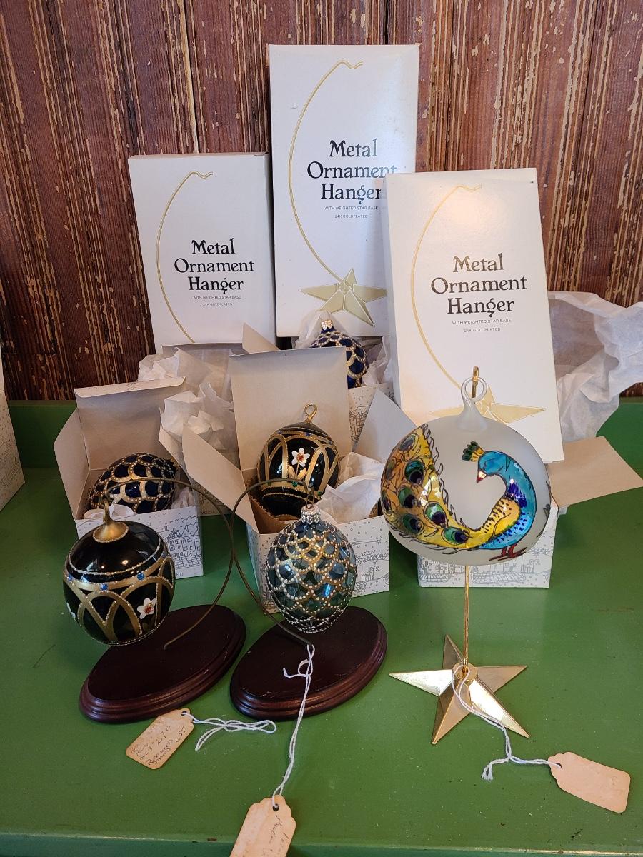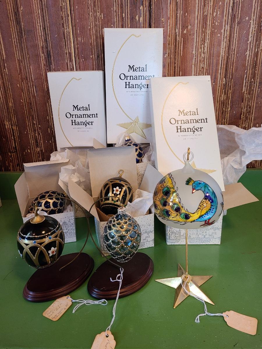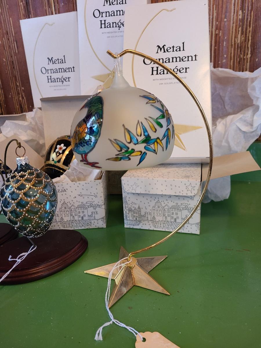 LOT 121C: Komozja Poland Glass Ornaments & 24kt Gold Plated Stands (Peacock Ornament & More)