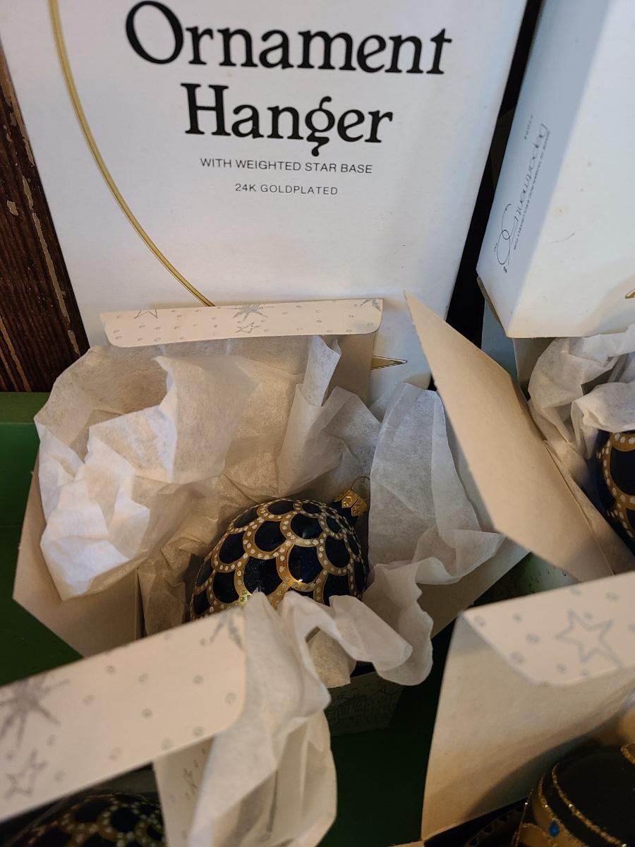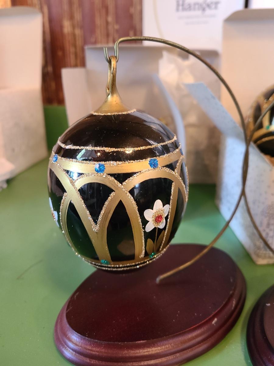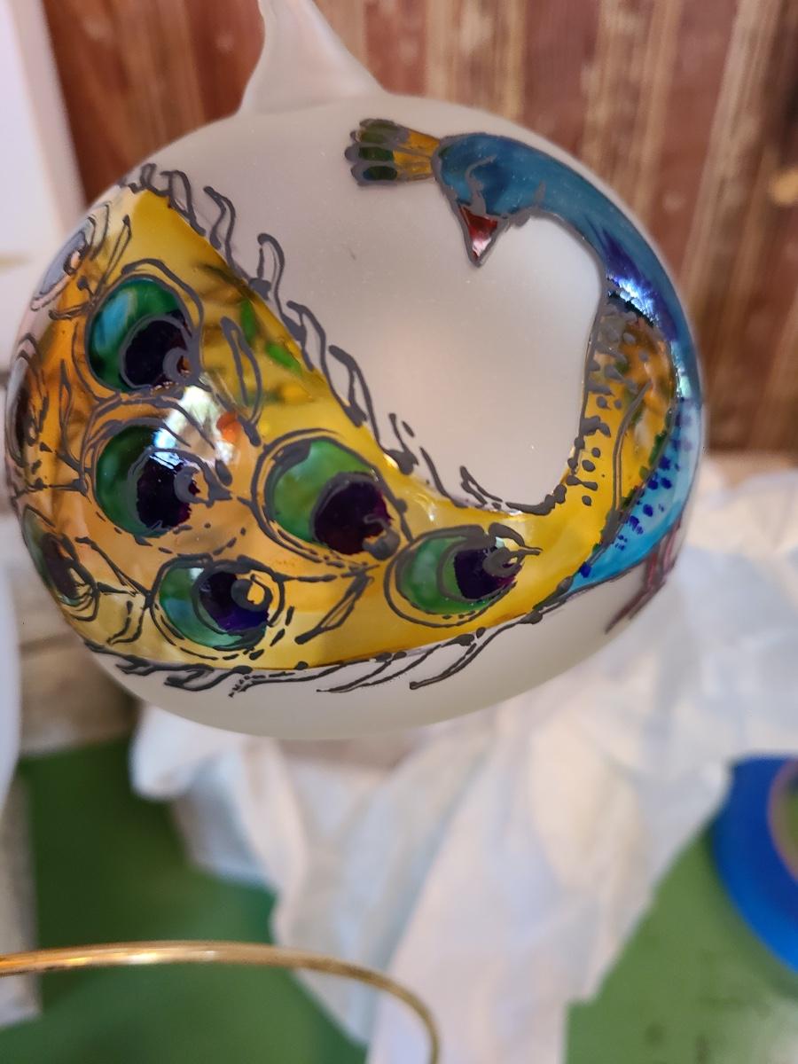 LOT 121C: Komozja Poland Glass Ornaments & 24kt Gold Plated Stands (Peacock Ornament & More)