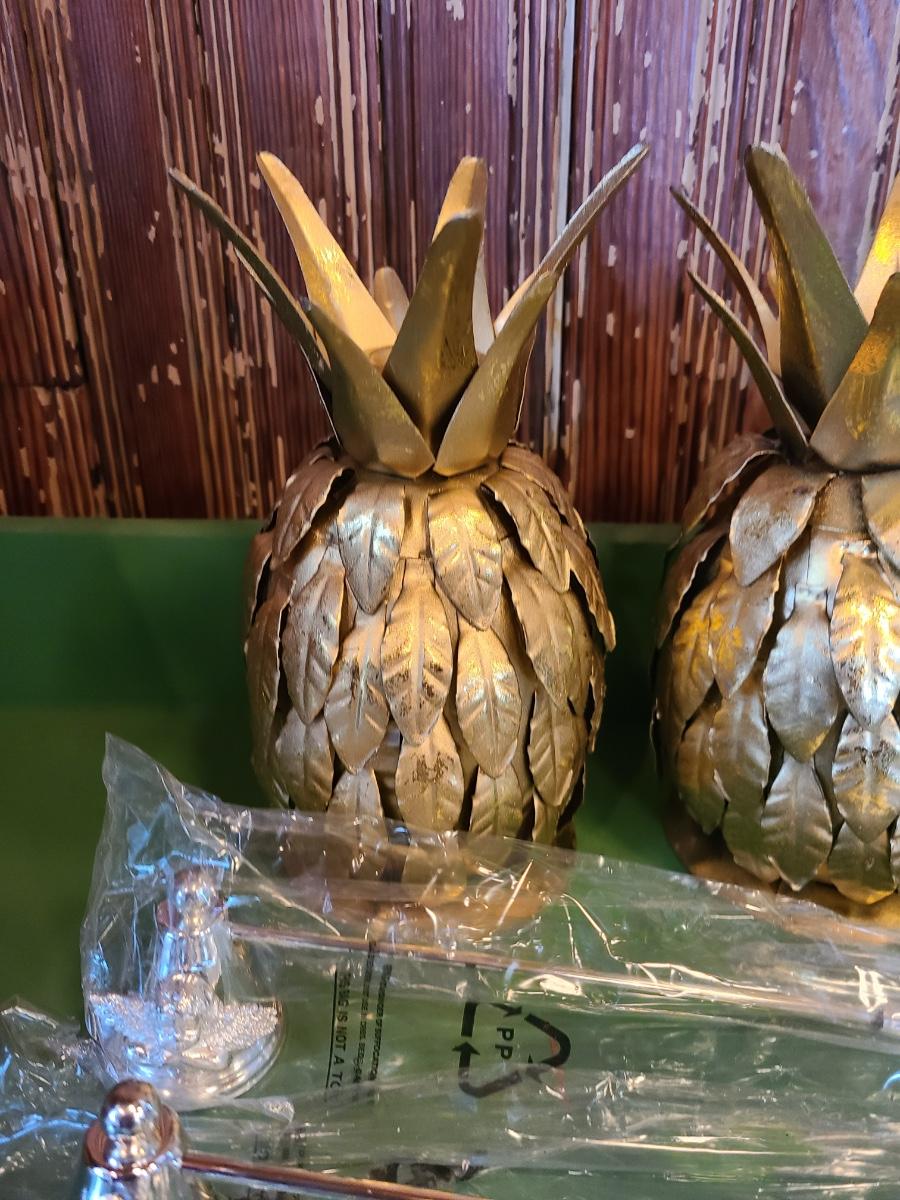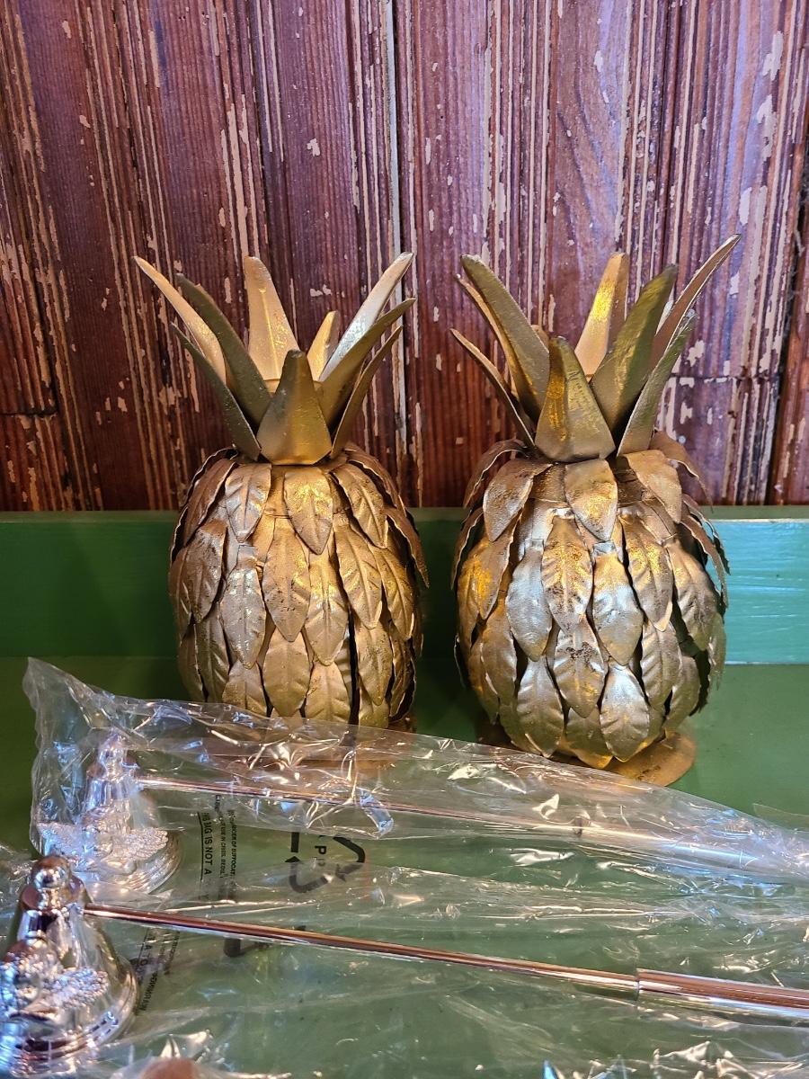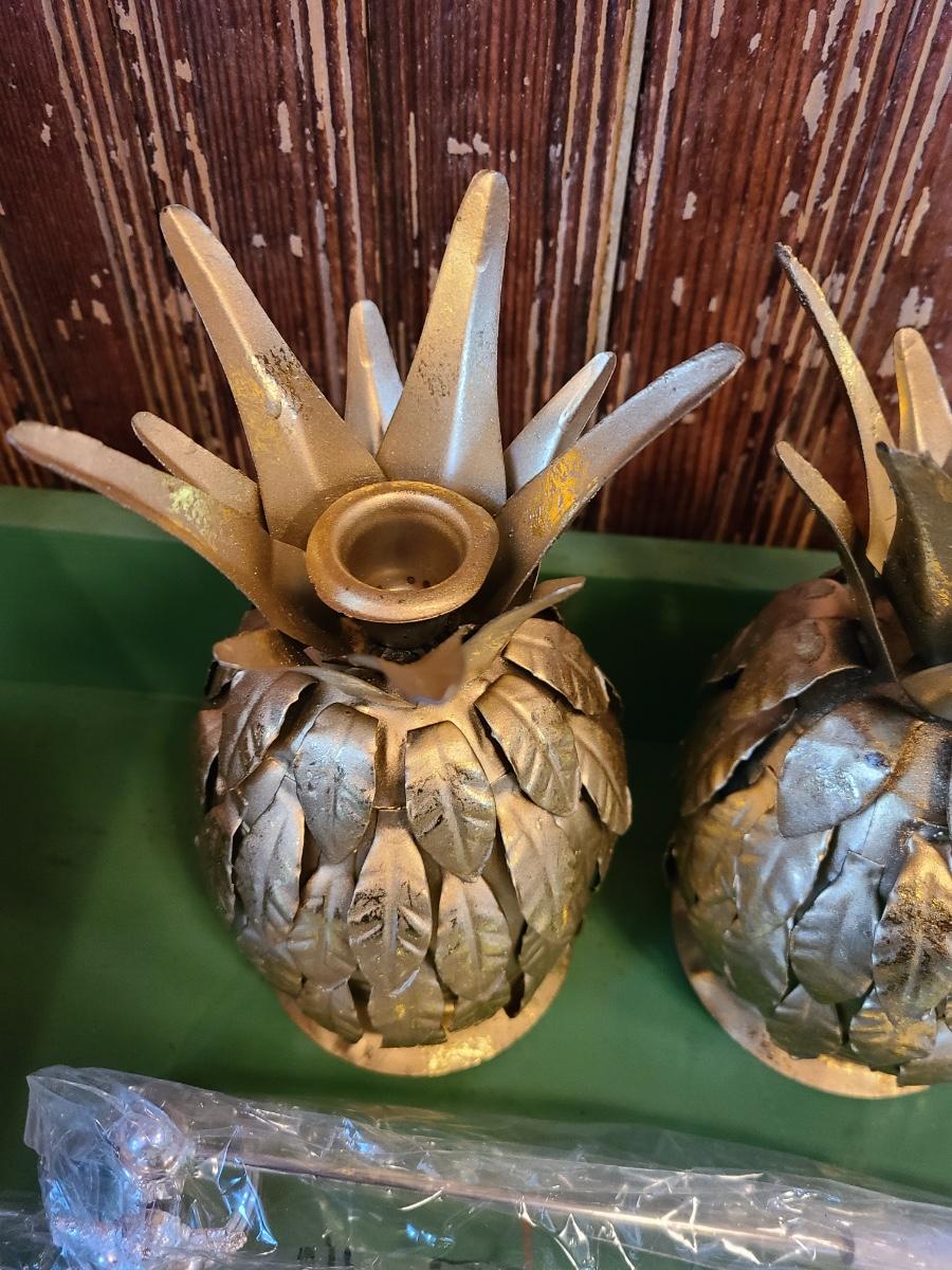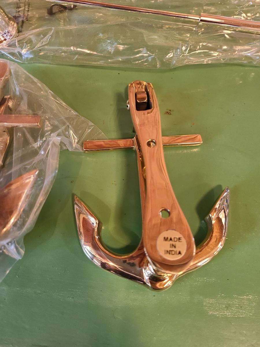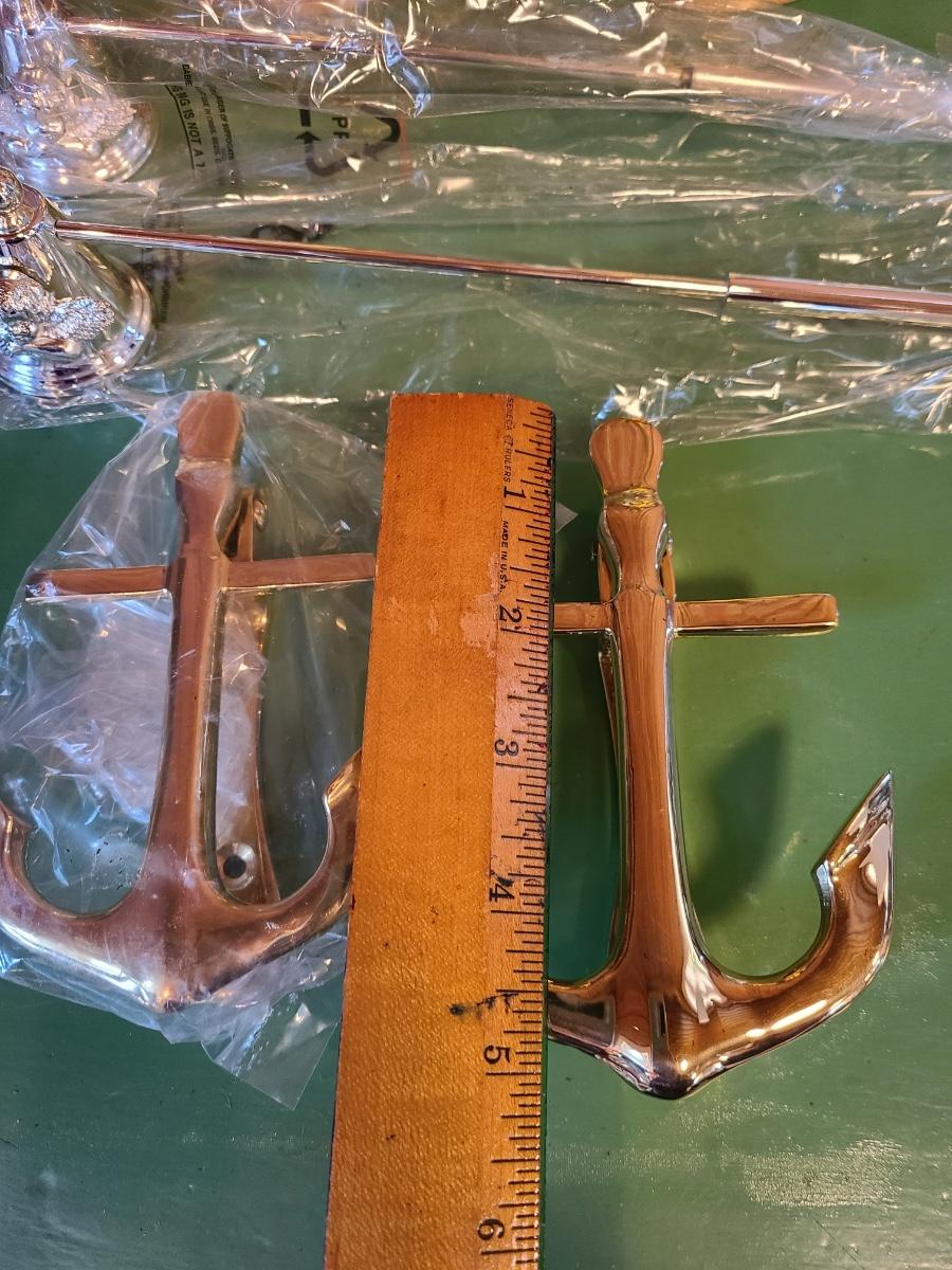 LOT 141: New: Brass Anchor Door Knockers, Metal Pinecone Candleholders, 2 Angel Candle Snuffes