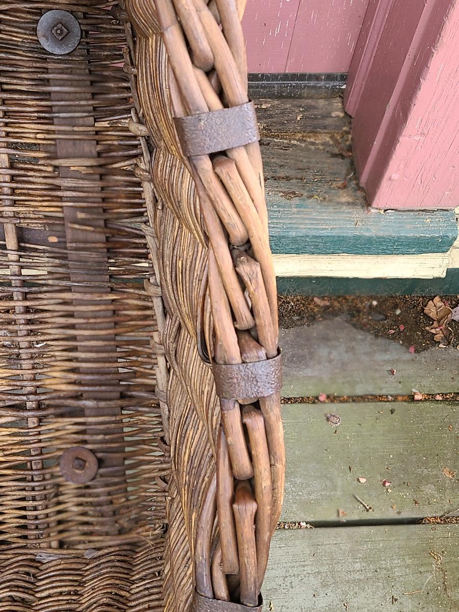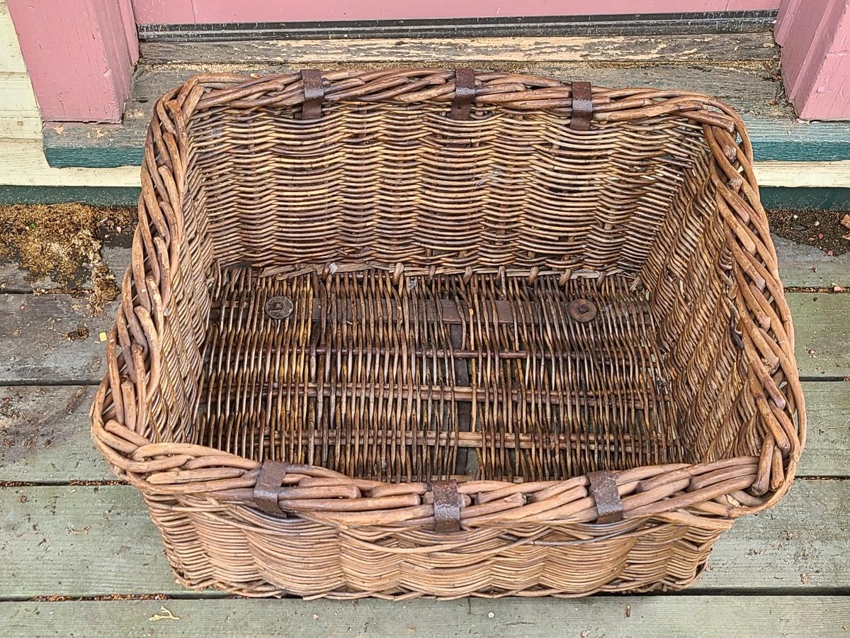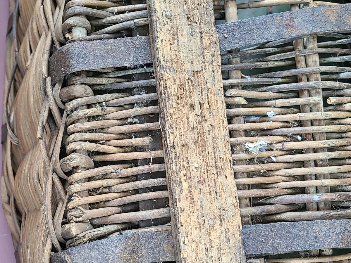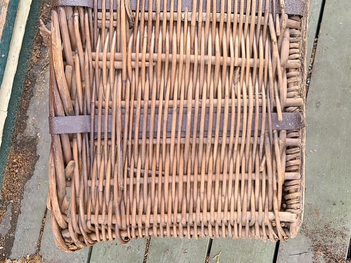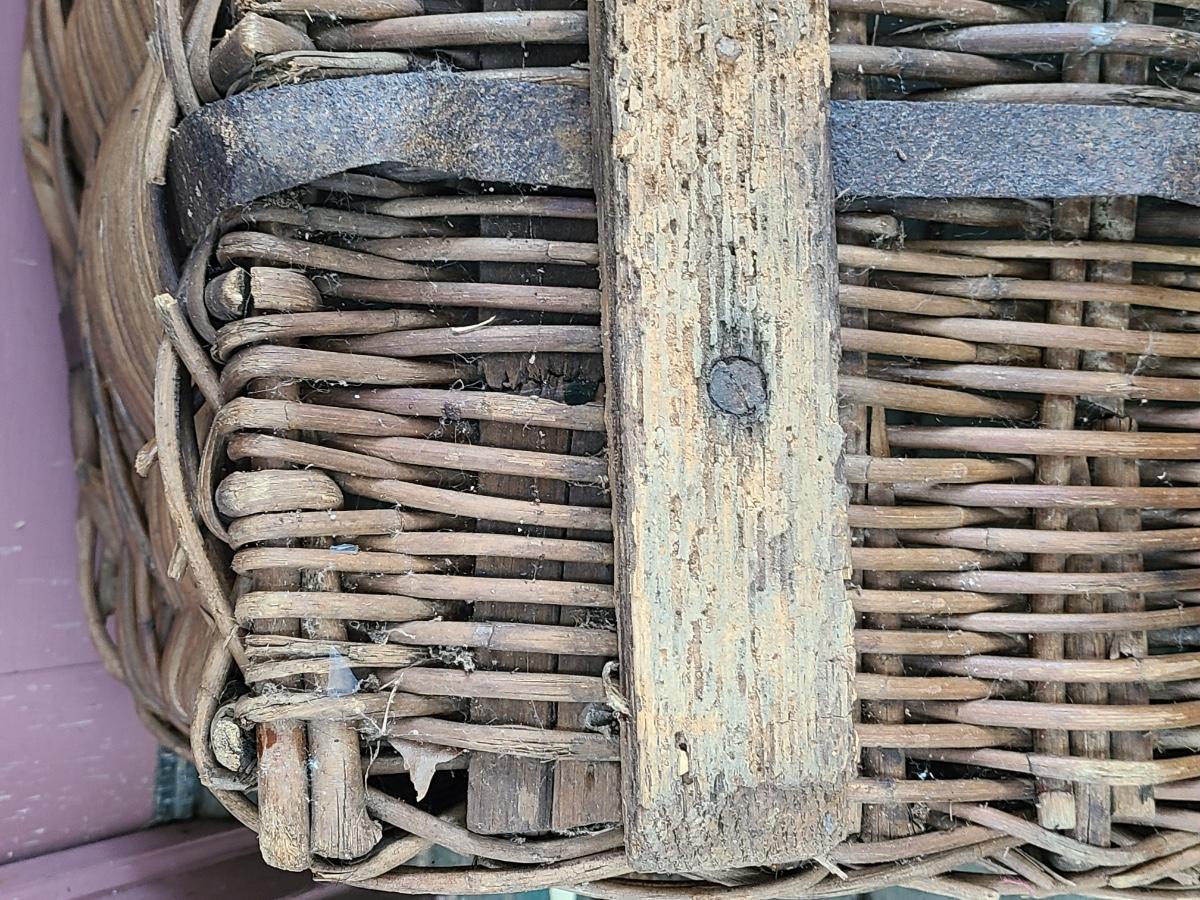 LOT 146: Huge Primitive Basket w/Metal Bindings