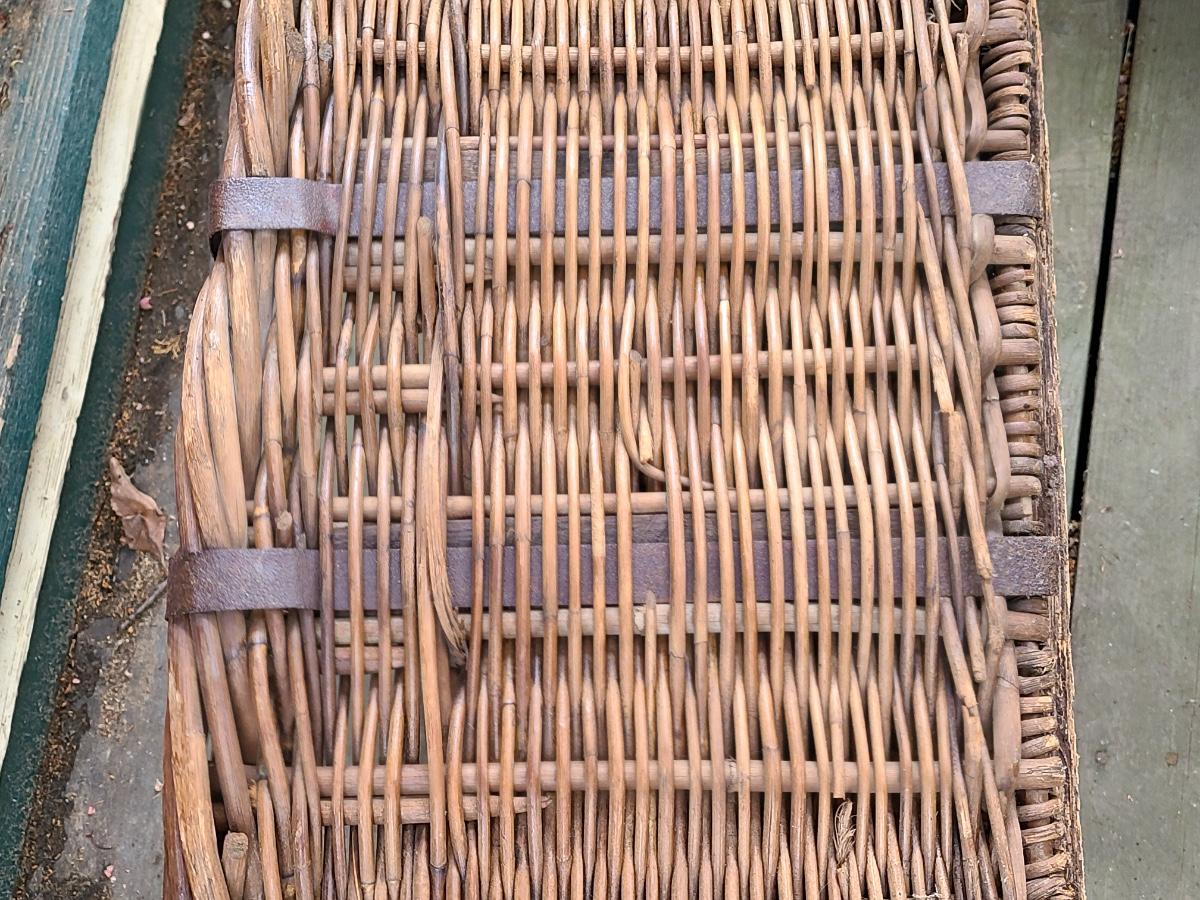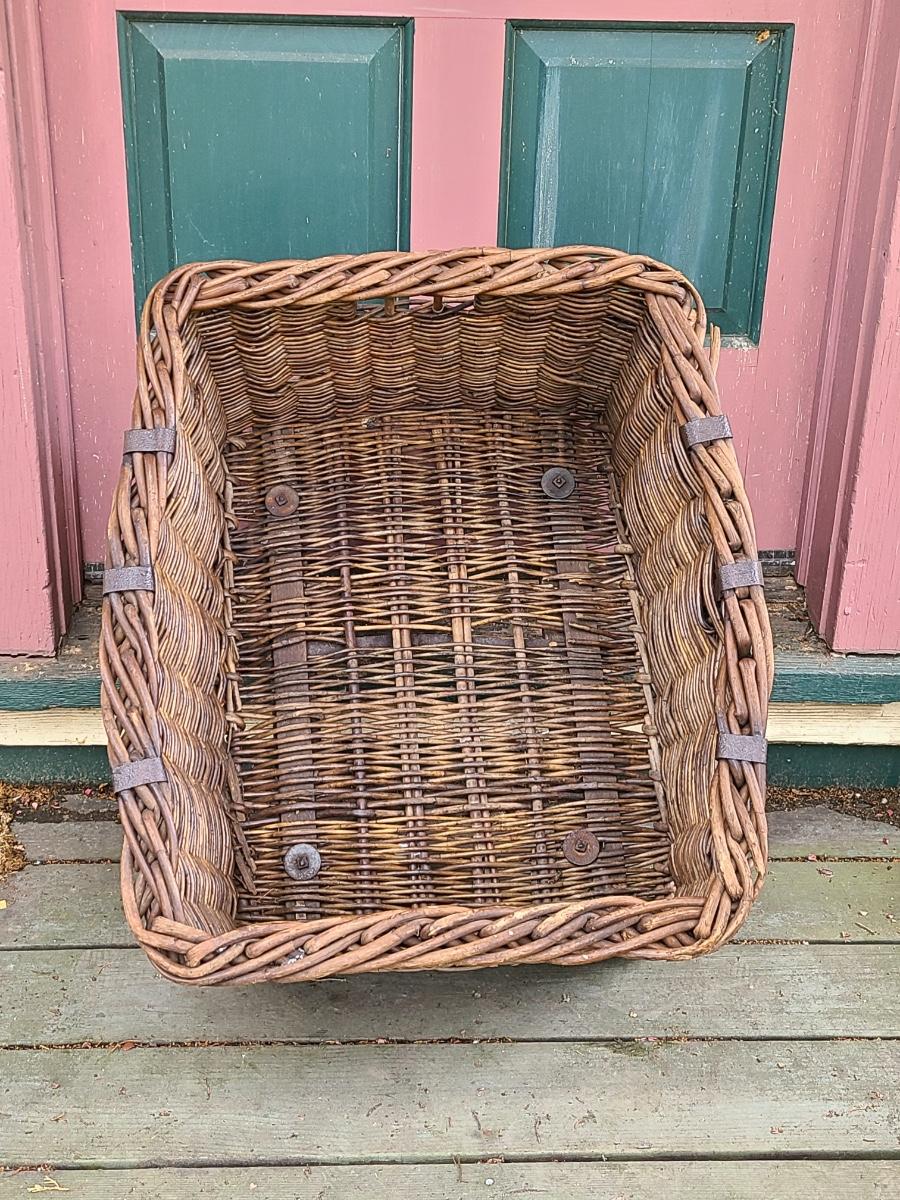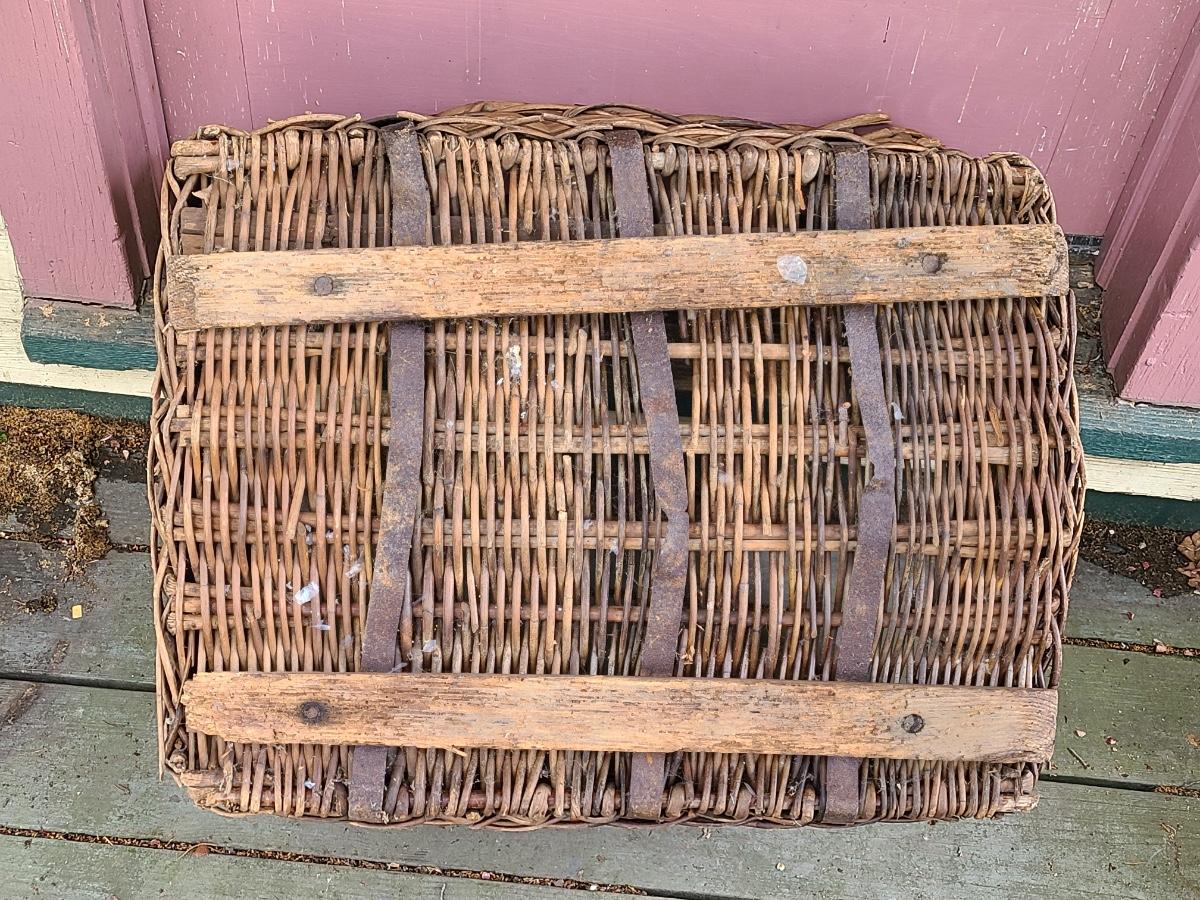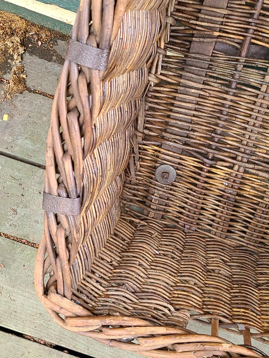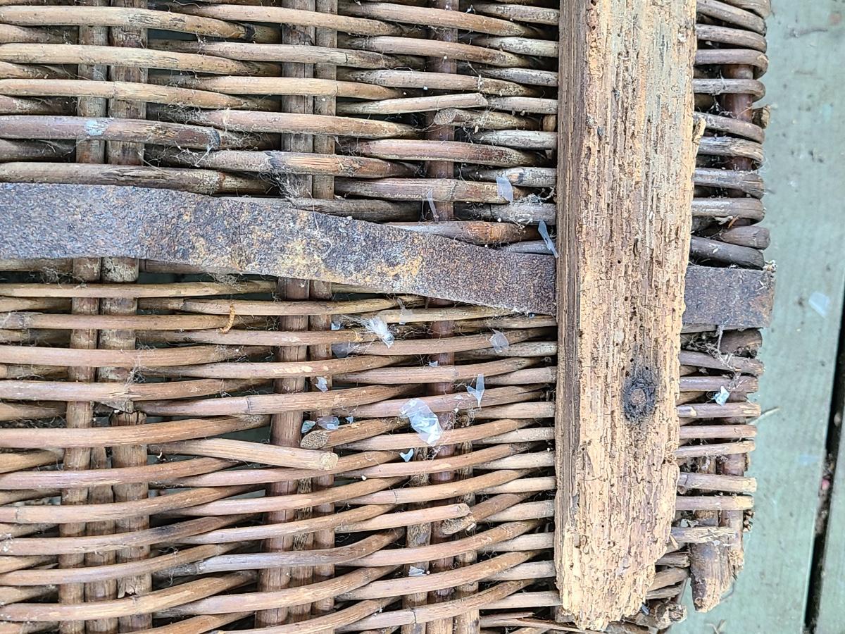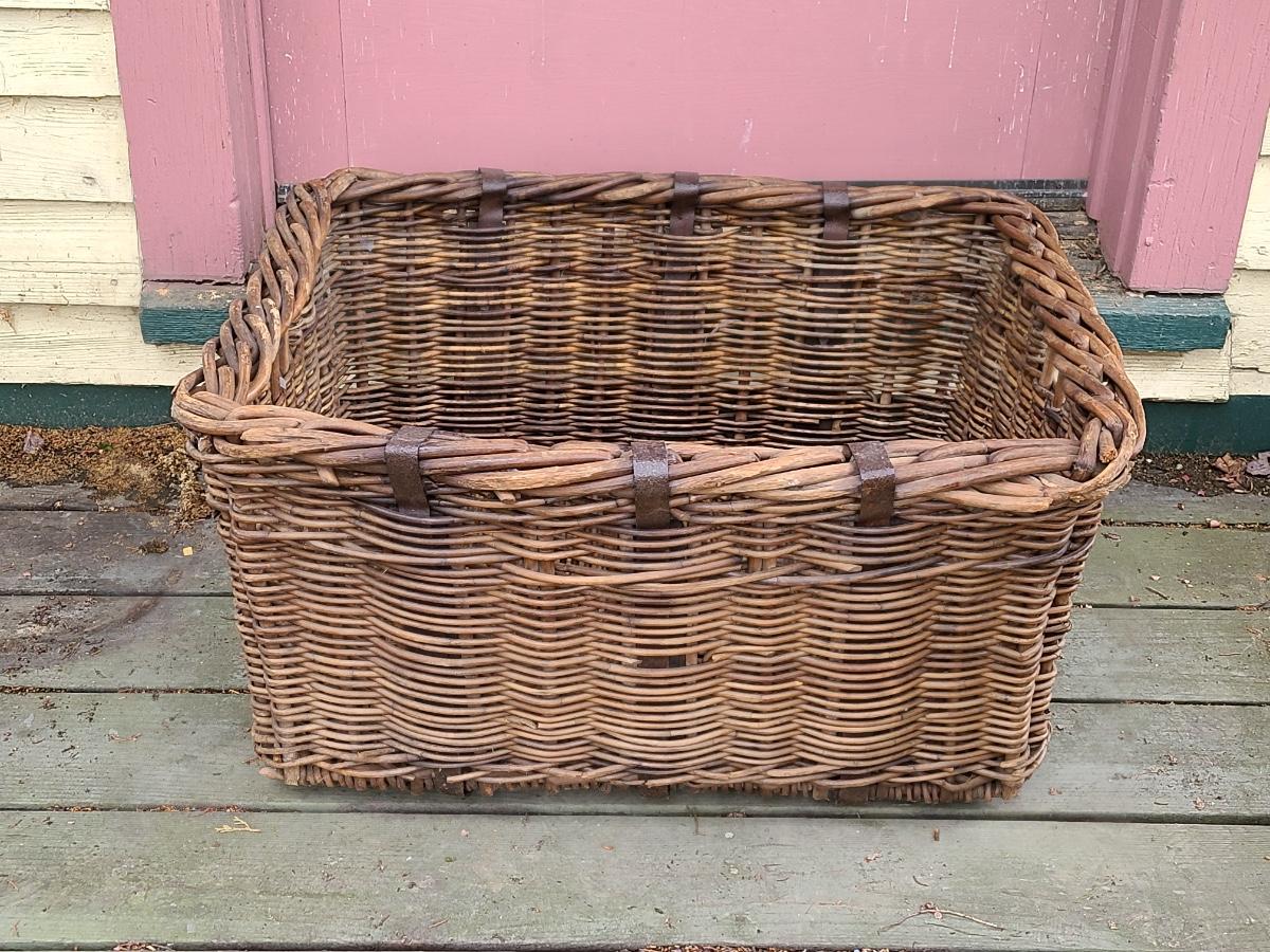 LOT 146: Huge Primitive Basket w/Metal Bindings