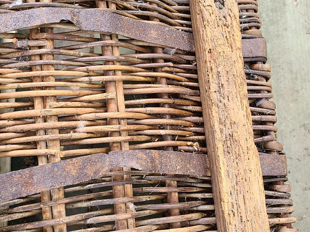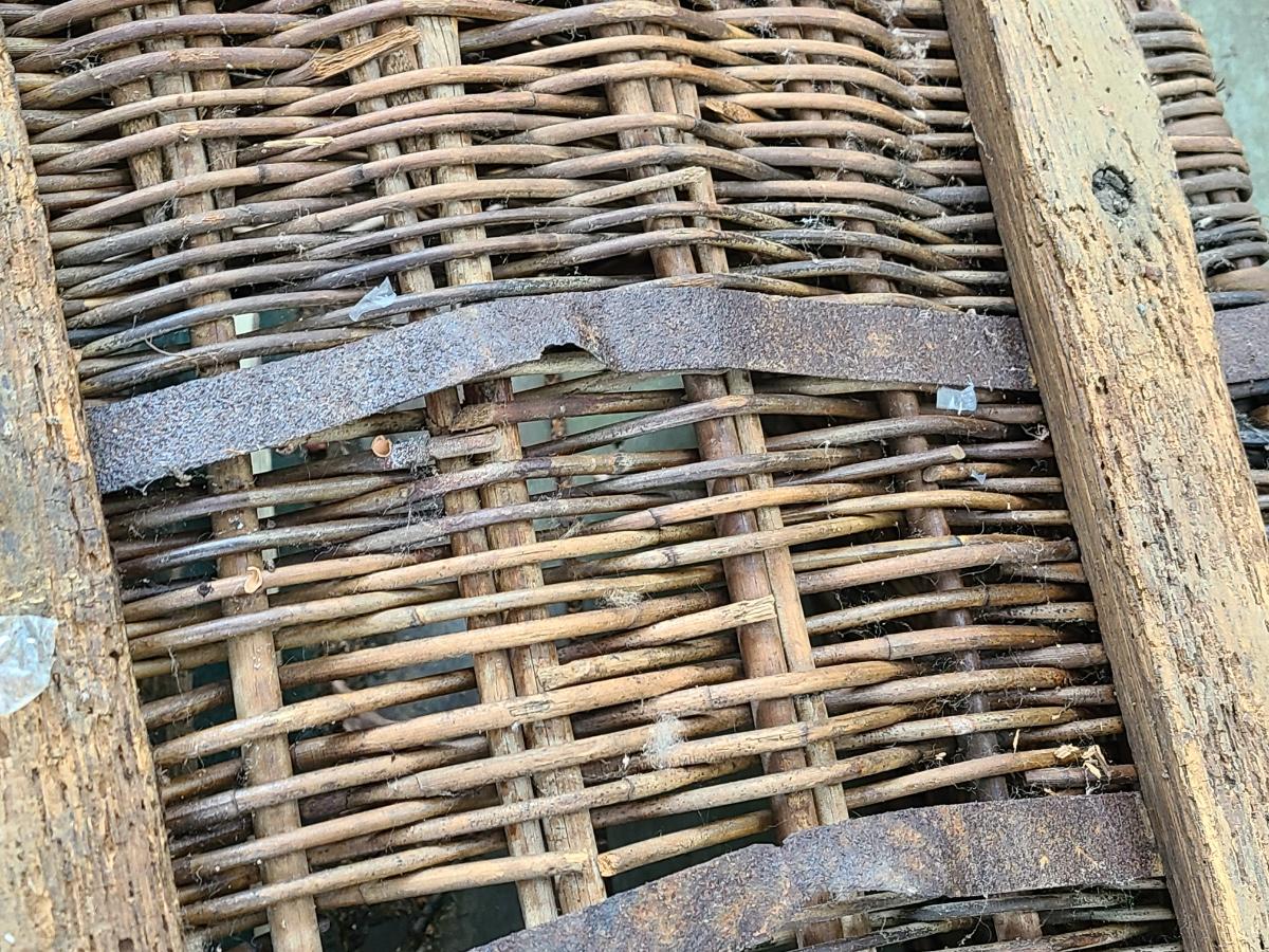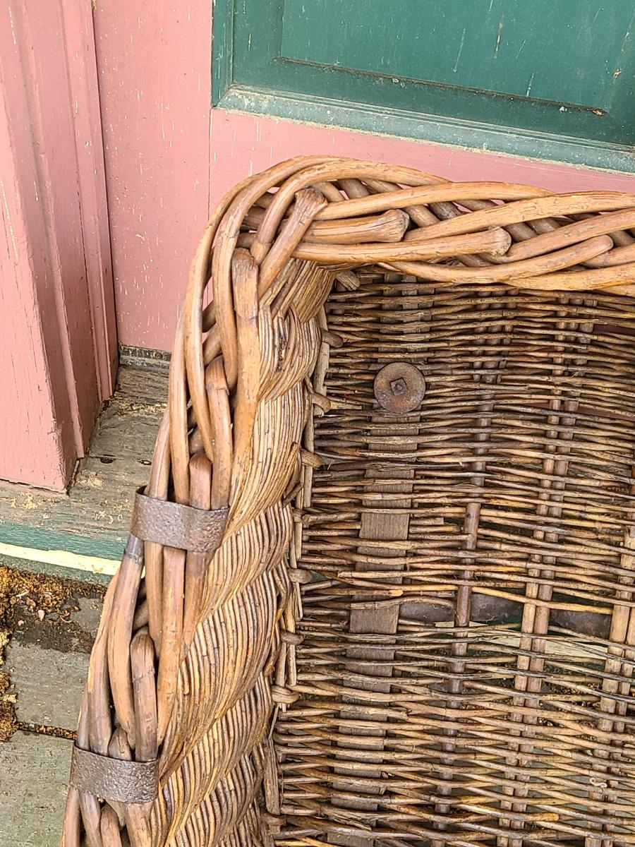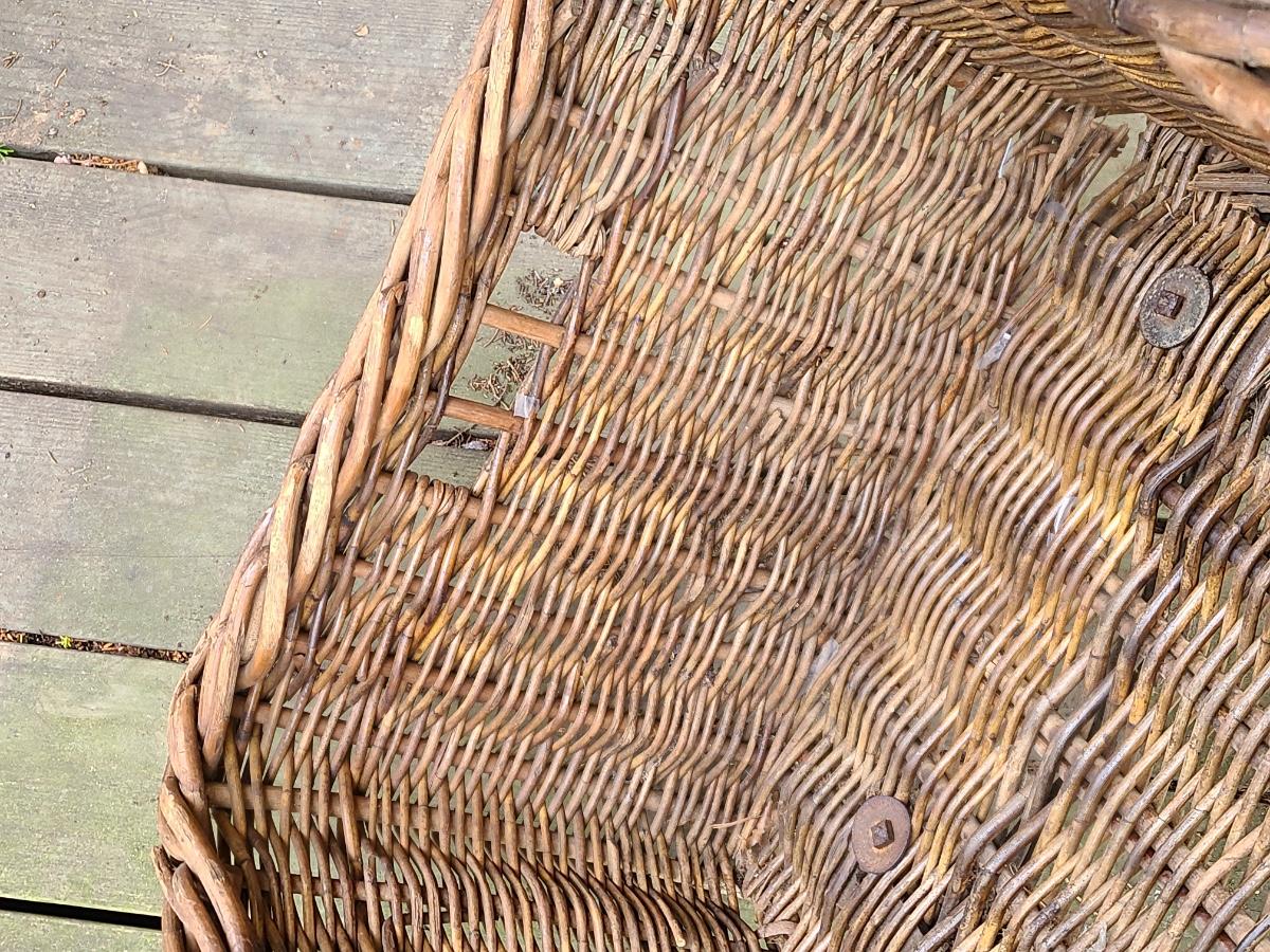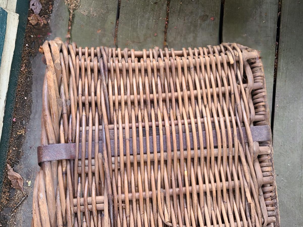 LOT 146: Huge Primitive Basket w/Metal Bindings