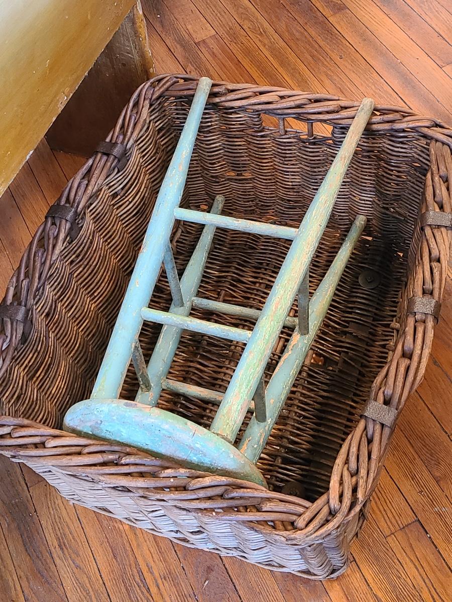 This does show wear due to age, but it is amazing! It is solid in design and would be perfect to hold toys or blankets in! It does not come with the chippy stool, that is just to show how large this basket is! Please see all pictures as they are the best representation of the items. The pictures show condition, measurements if taken, and what is included in the lot. Due to the large amount that we photograph and the time frame, we are not always able to take measurements. All items unless noted, are pre-owned and have been used. If you purchased furniture, you must bring help. We do not allow one person to carry large furniture out on their own. Bring help, tools and a truck for the safety of our client’s homes, and your personal safety. Any damages that result to the property including walls, and floors due to moving of the furniture will be charged to the buyer. Company policy. Thank you.