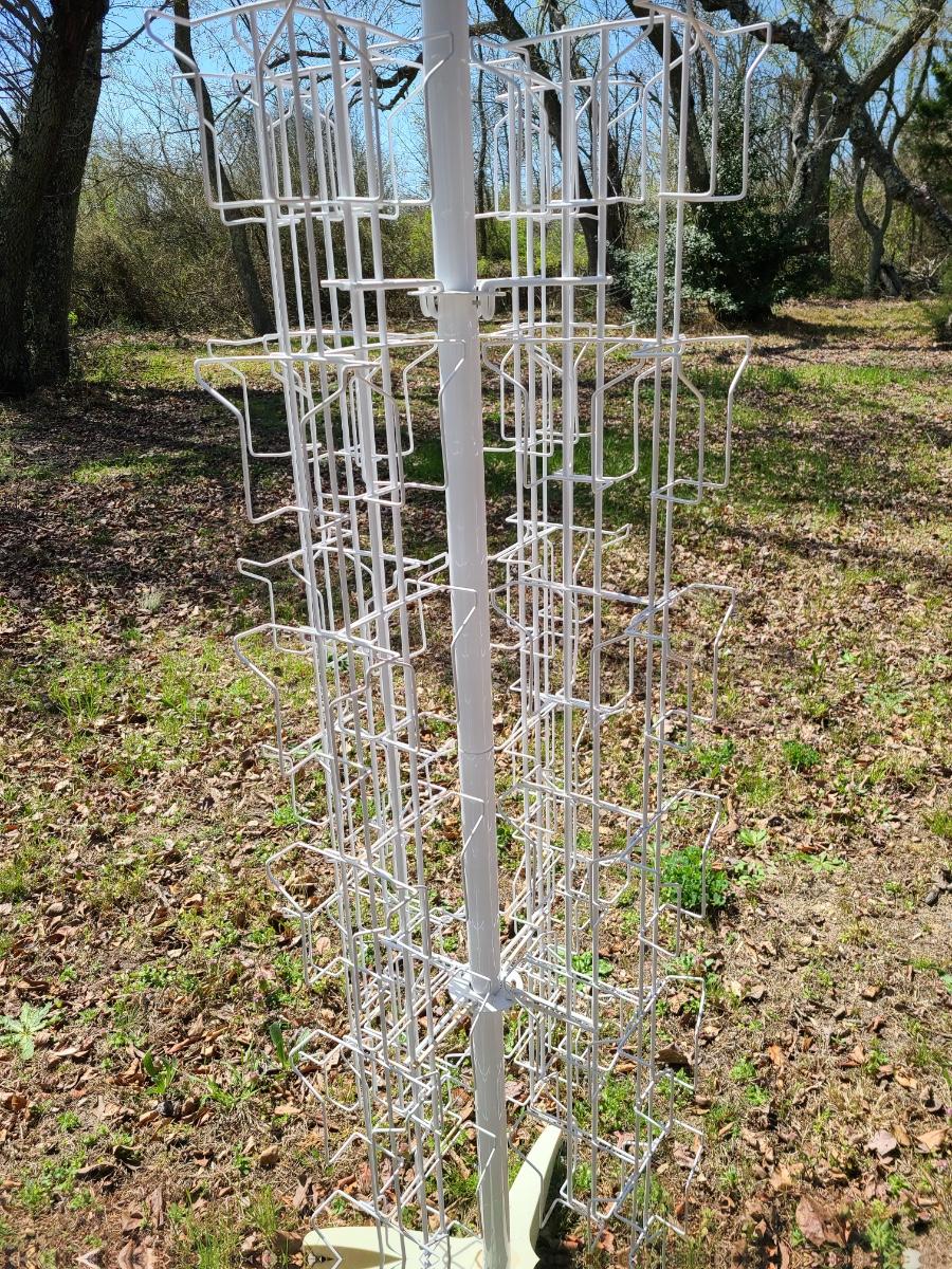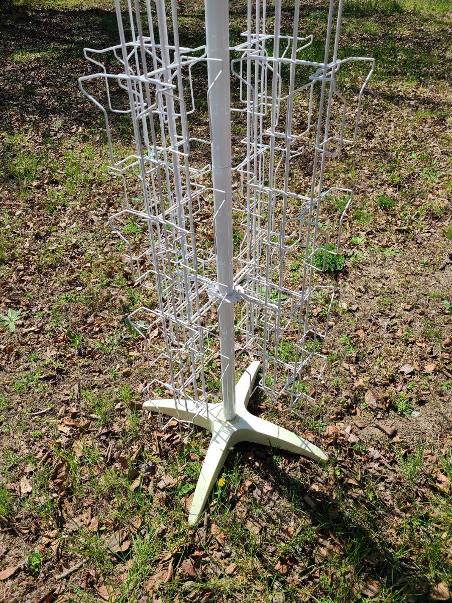 This was used to display cards for sale in store. This is between 5 and 6 feet tall without sign. Perfect to make your own sign for! Metal and comes apart in pieces. Please see all pictures as they are the best representation of the items. The pictures show condition, measurements if taken, and what is included in the lot. Due to the large amount that we photograph and the time frame, we are not always able to take measurements. All items unless noted, are pre-owned and have been used. If you purchased furniture, you must bring help. We do not allow one person to carry large furniture out on their own. Bring help, tools and a truck for the safety of our client’s homes, and your personal safety. Any damages that result to the property including walls, and floors due to moving of the furniture will be charged to the buyer. Company policy. Thank you.