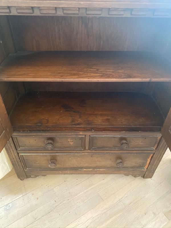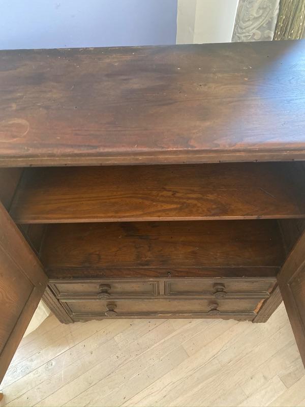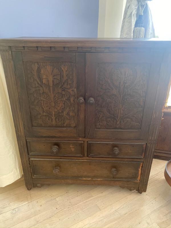Vintage wooden carved doors cabinet measuring 35.5” x 15” x 41.5” tall