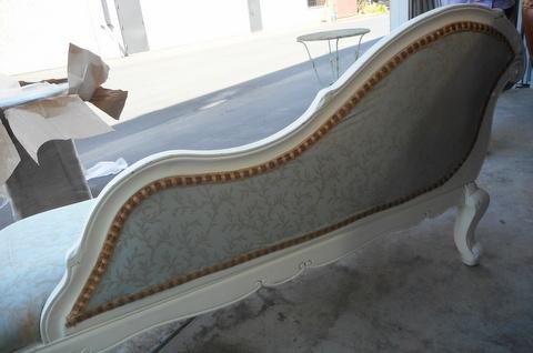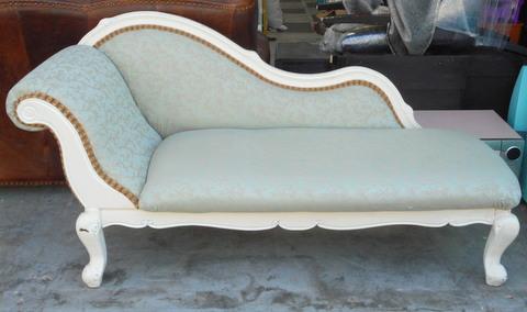 49" long x 18" deep x 19" tall. Upholstery is nice & in good condition but the back leg needs reinforcing, it is almost off.