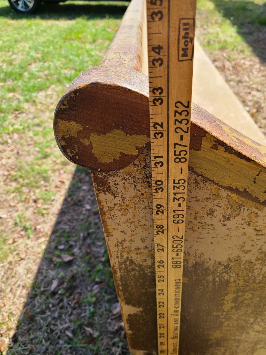 Pre-owned. Solid in Design. Measures 93 inches. Was kept indoor and used as display for Boyds Bears and store merchandise. Perfect as is, or upcycle in a new color. Please see all pictures as they are the best representation of the items. The pictures show condition, measurements if taken, and what is included in the lot. Due to the large amount that we photograph and the time frame, we are not always able to take measurements. All items unless noted, are pre-owned and have been used. If you purchased furniture, you must bring help. We do not allow one person to carry large furniture out on their own. Bring help, tools and a truck for the safety of our client’s homes, and your personal safety. Any damages that result to the property including walls, and floors due to moving of the furniture will be charged to the buyer. Company policy. Thank you.