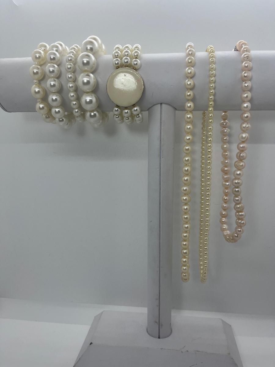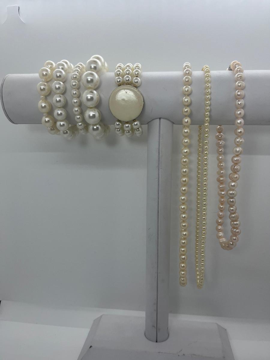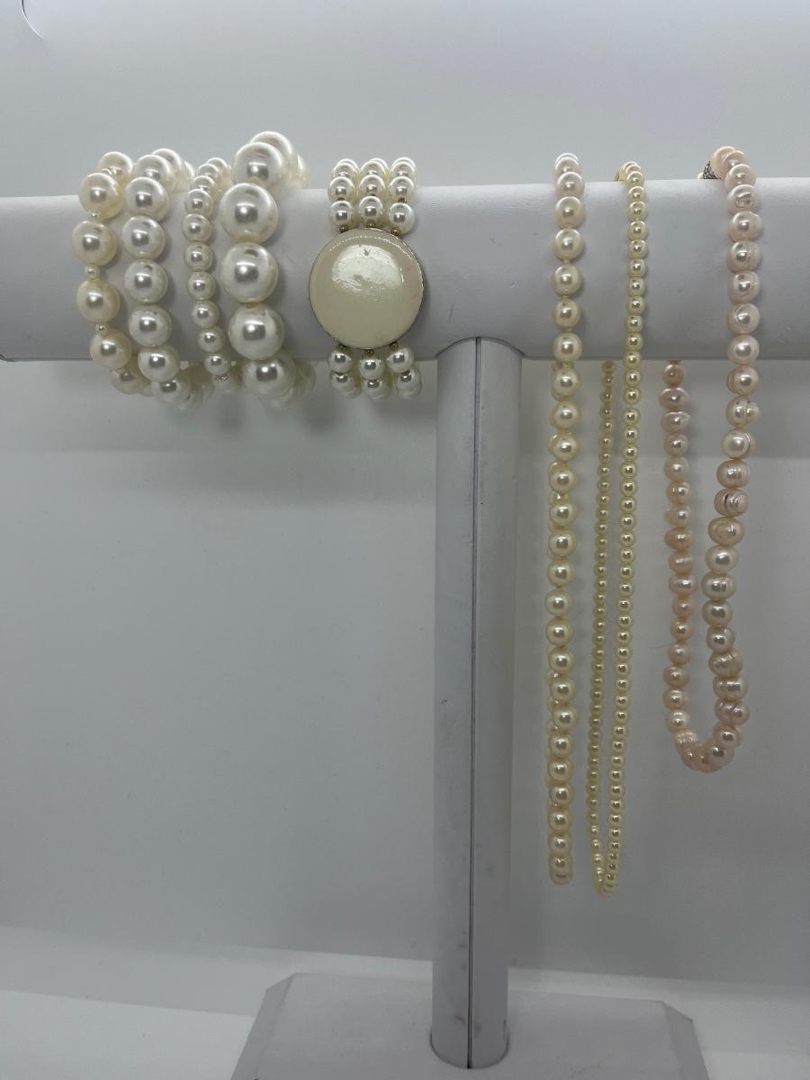 LOT 12: Costume Pearl Necklaces & Bracelets