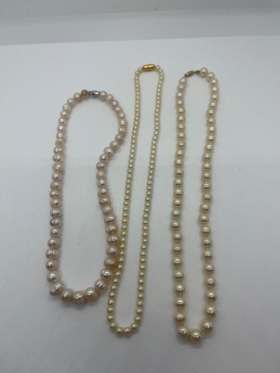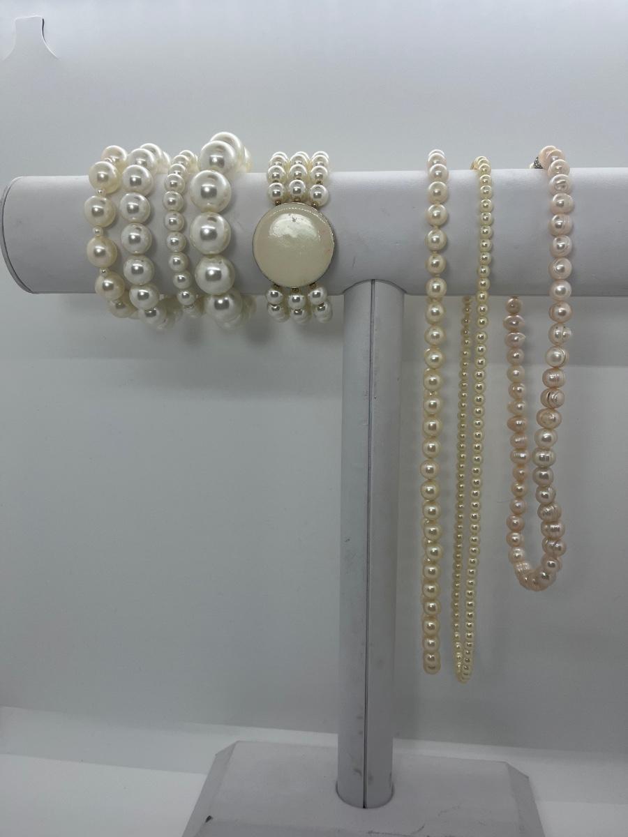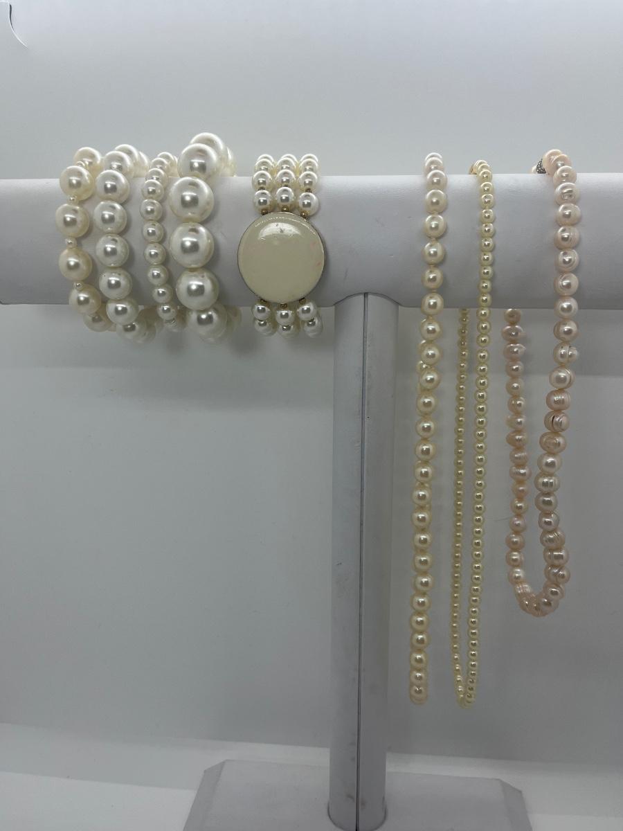 LOT 12: Costume Pearl Necklaces & Bracelets