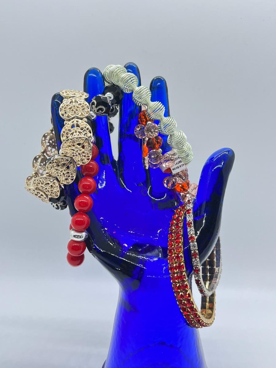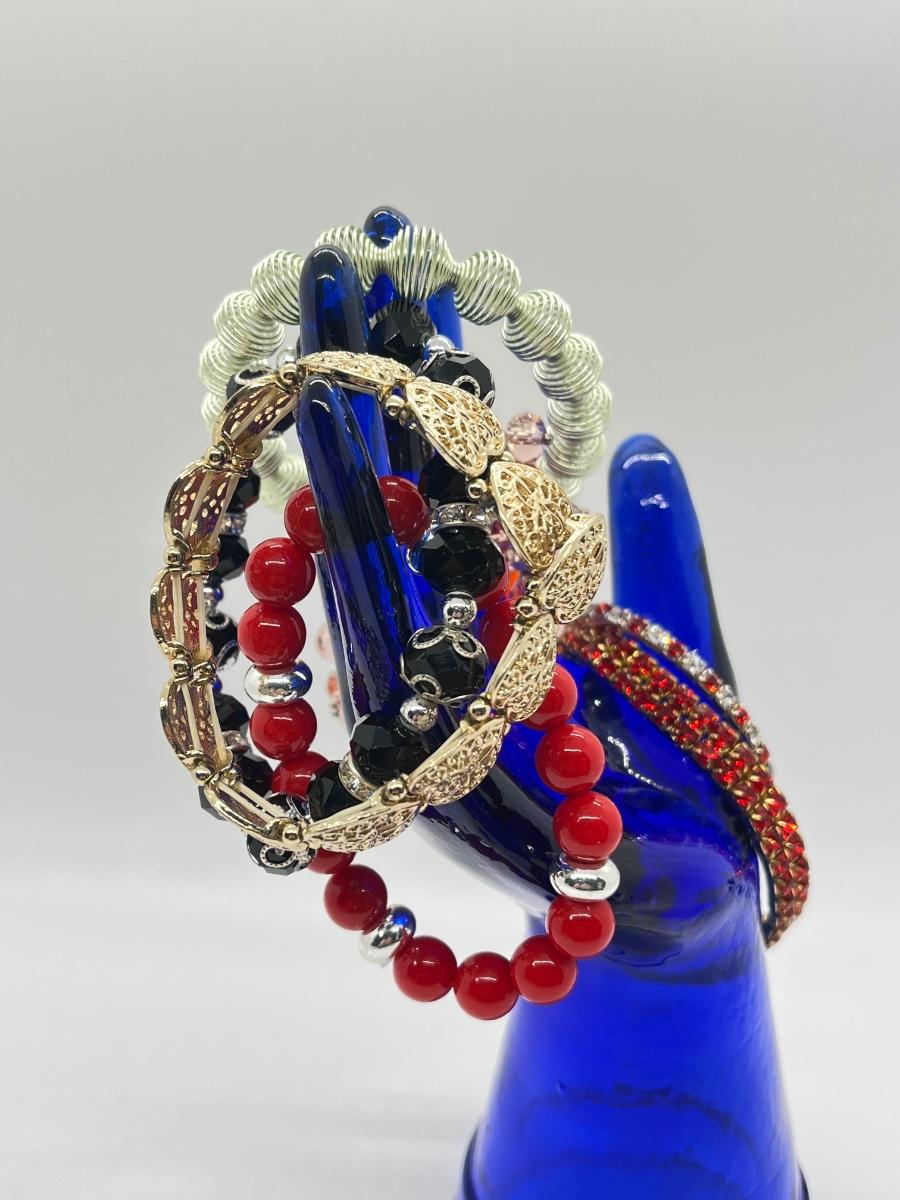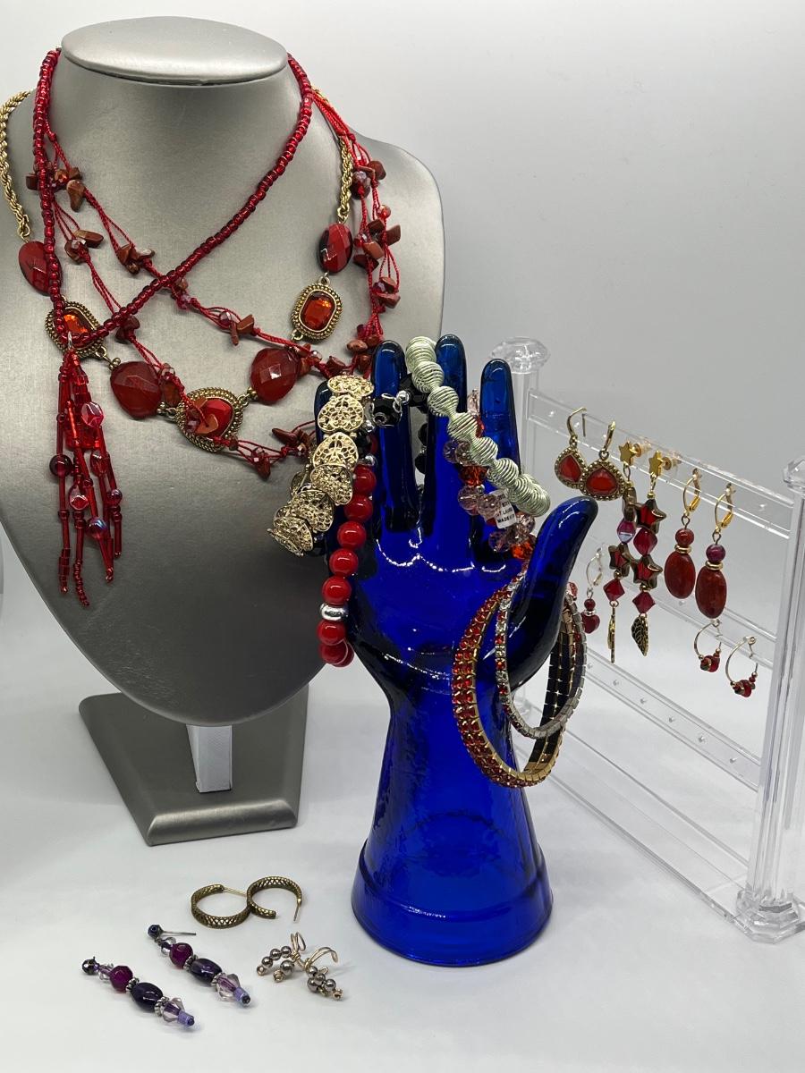 LOT 20: Stretch Bracelets, Pierced Earrings & Beads featuring Artisan Goldstone Necklace