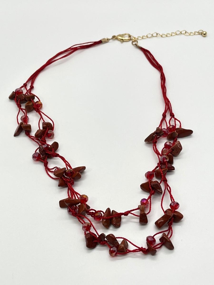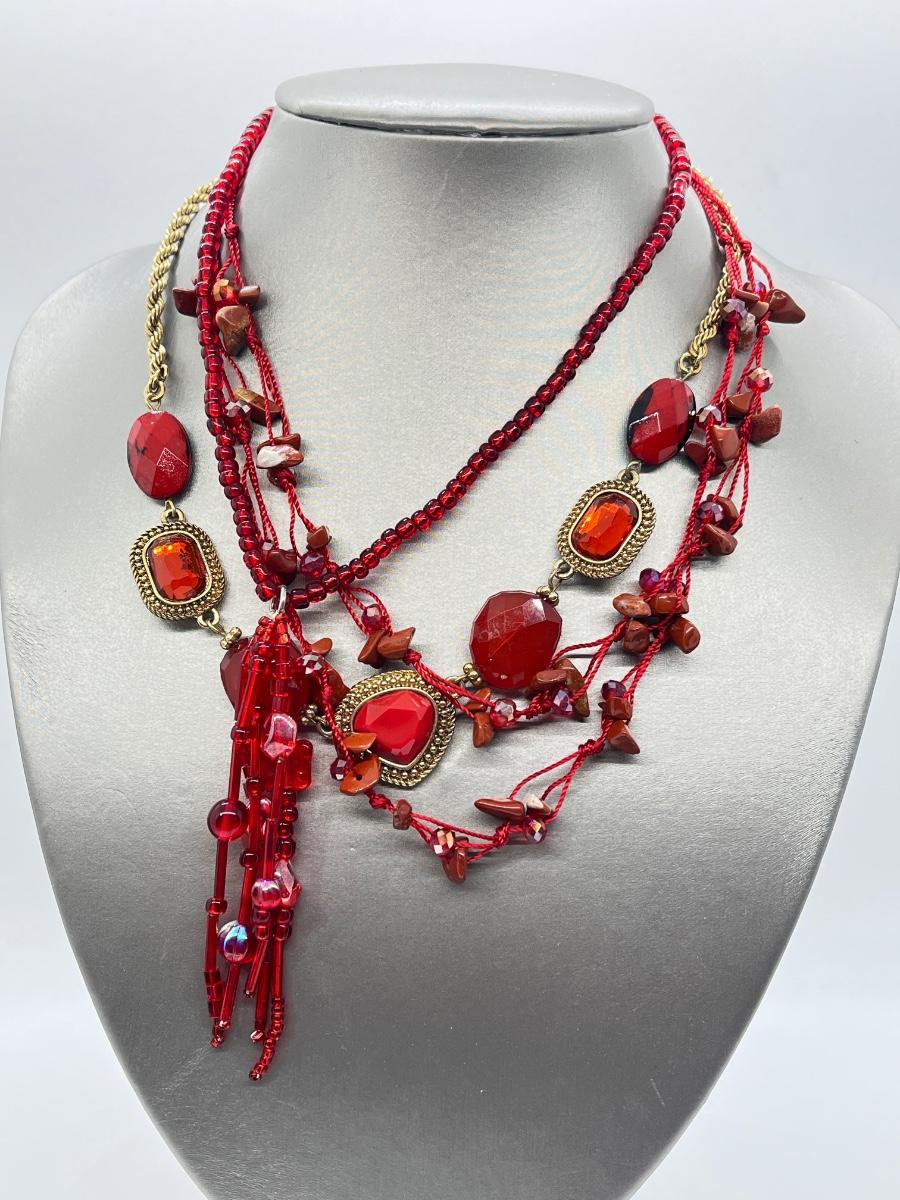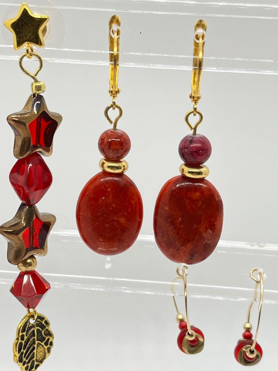 Lovely collection: matching beaded & pierced earring set, 18" gold necklace, 16" beaded necklace, hsndcrafted cord & beaded sandstone necklace is 18" with a 3" extender.