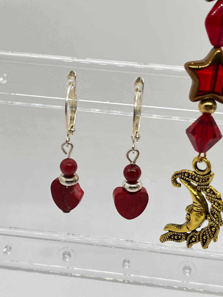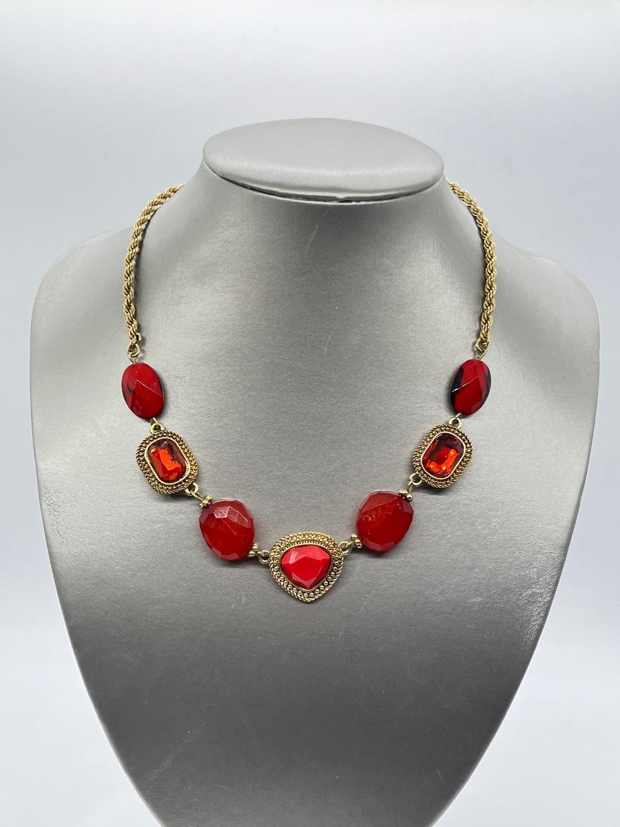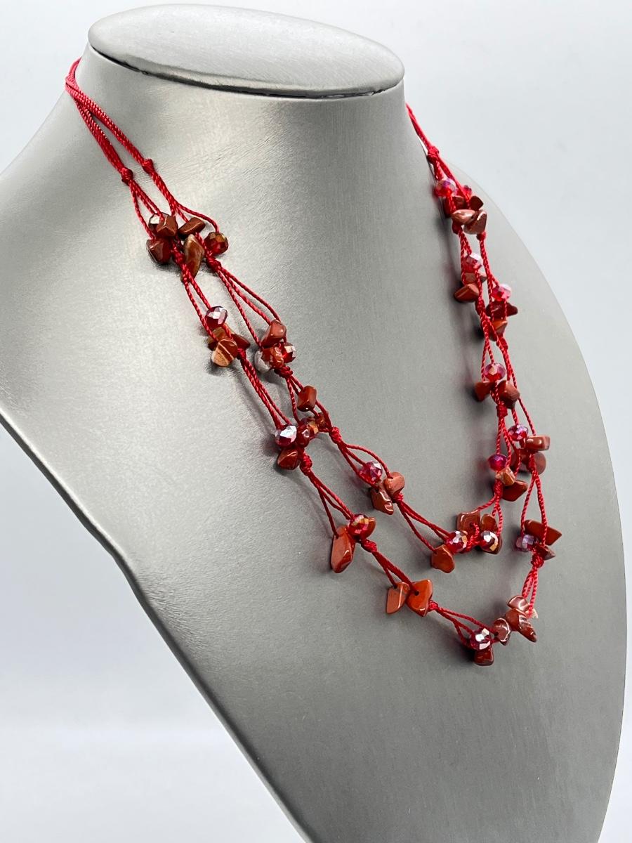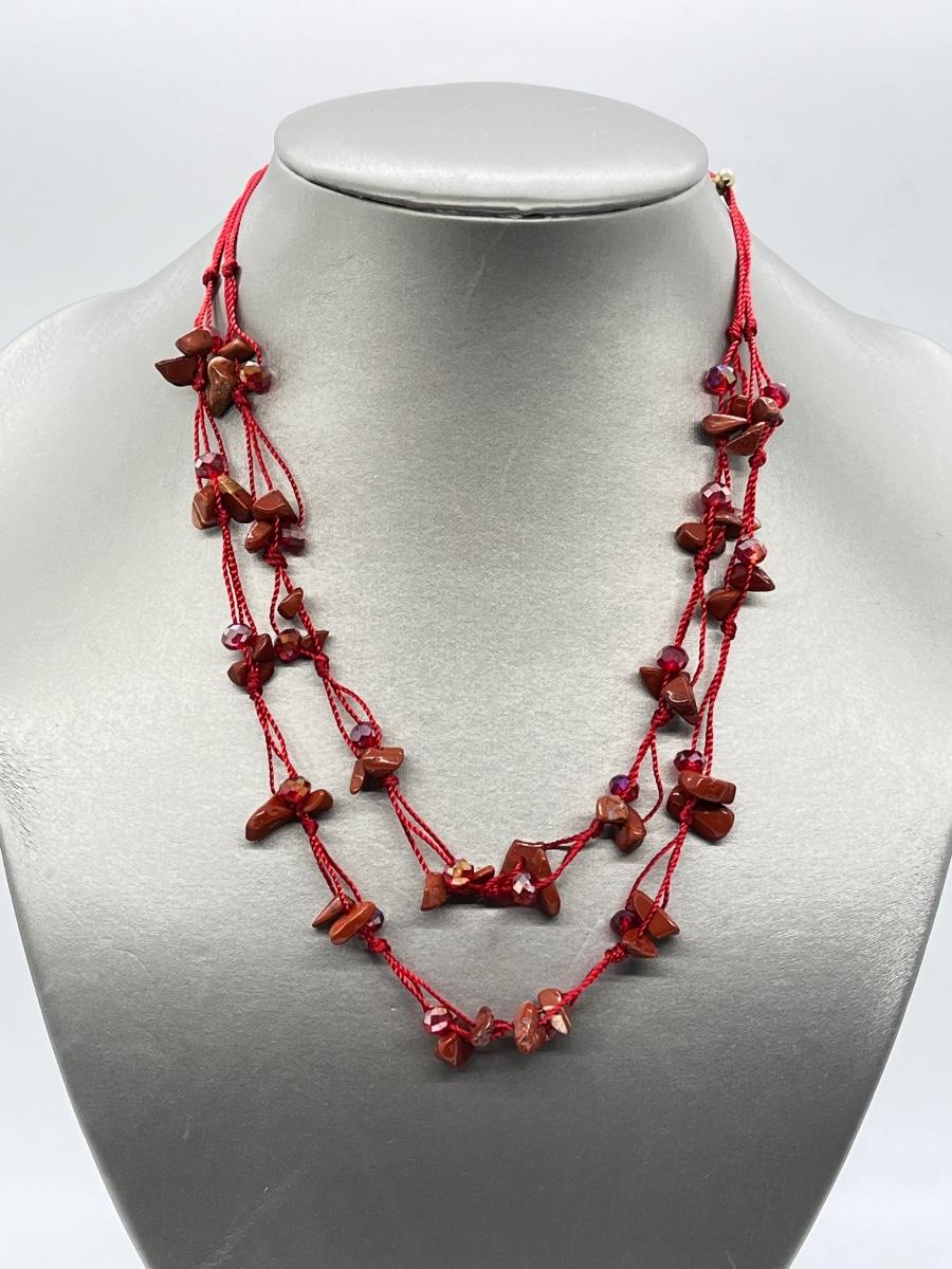 Lovely collection: matching beaded & pierced earring set, 18" gold necklace, 16" beaded necklace, hsndcrafted cord & beaded sandstone necklace is 18" with a 3" extender.