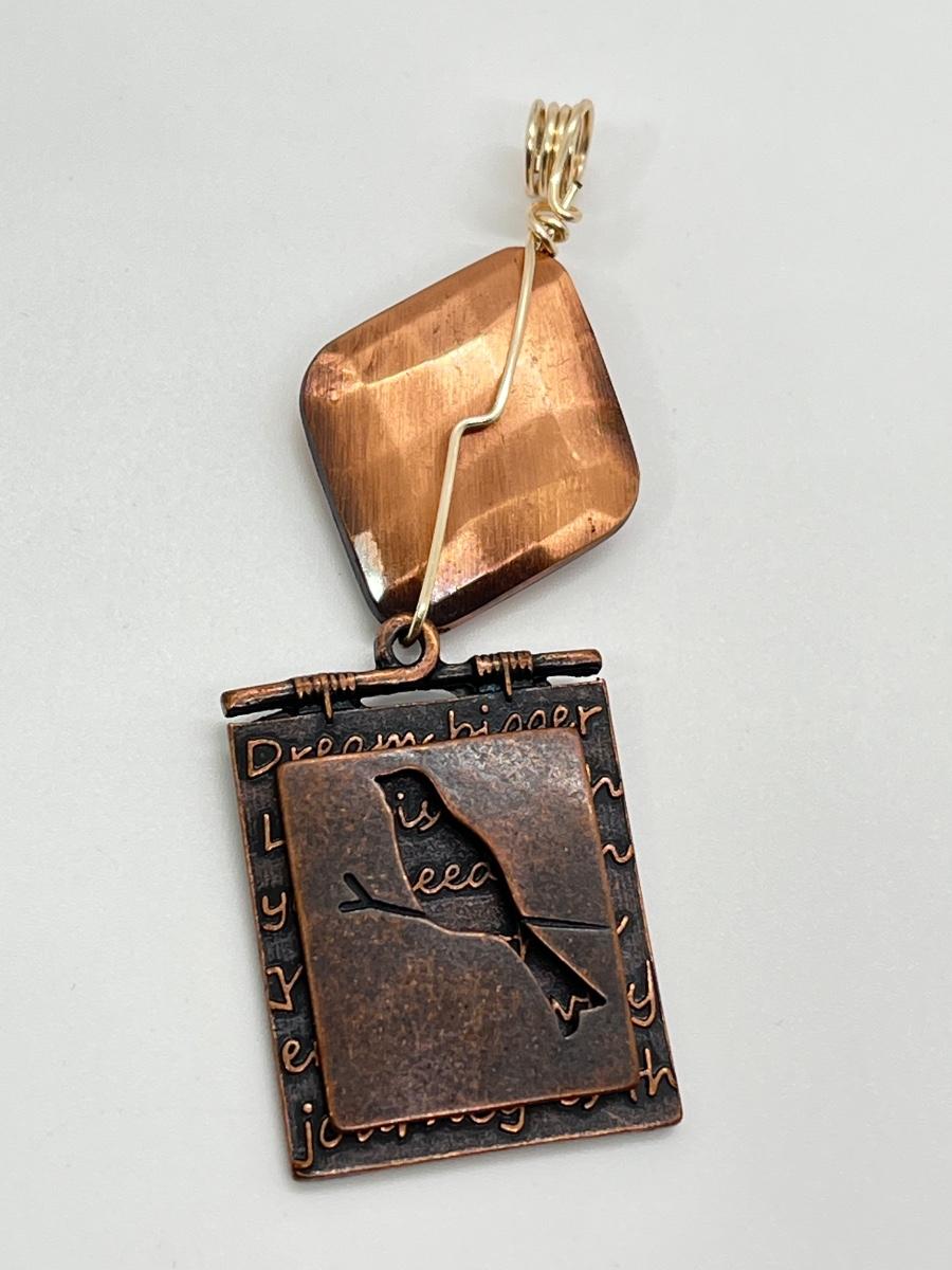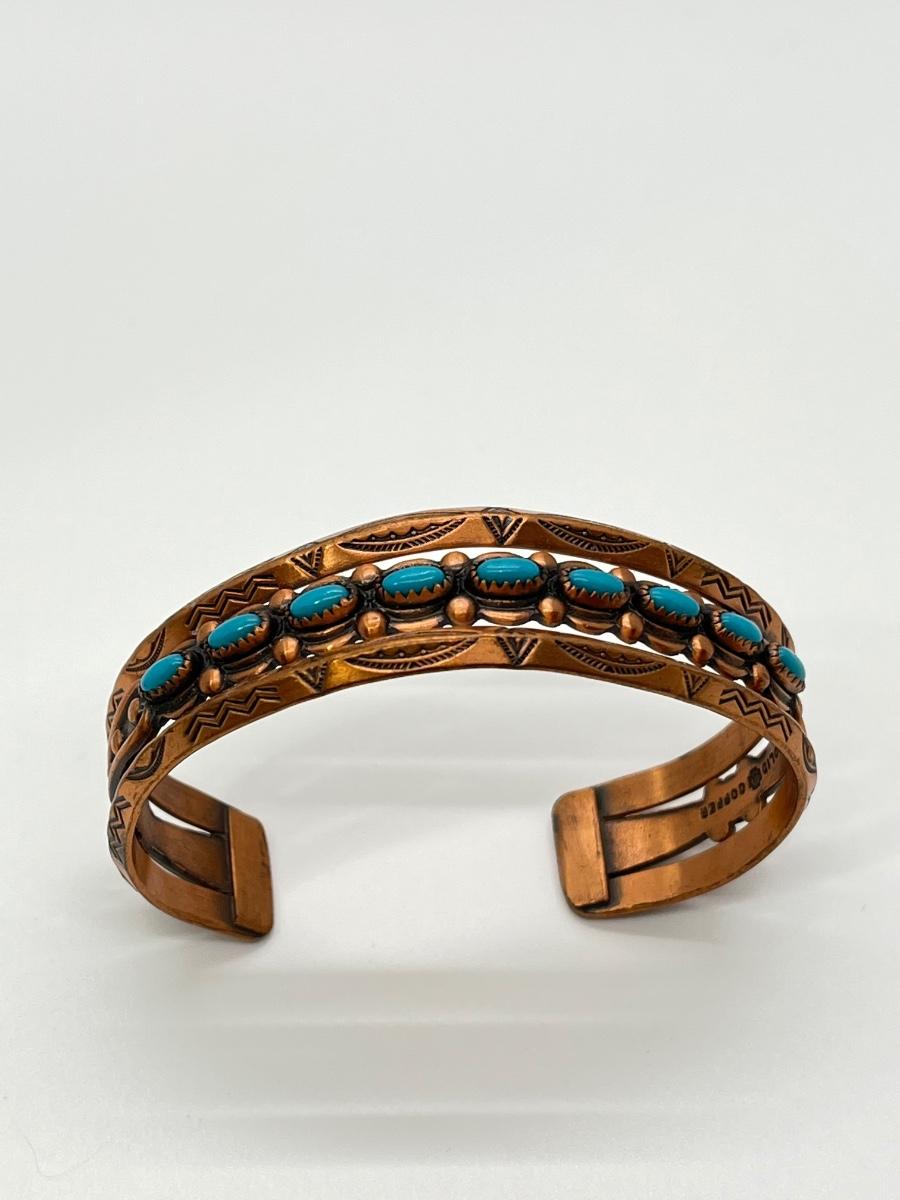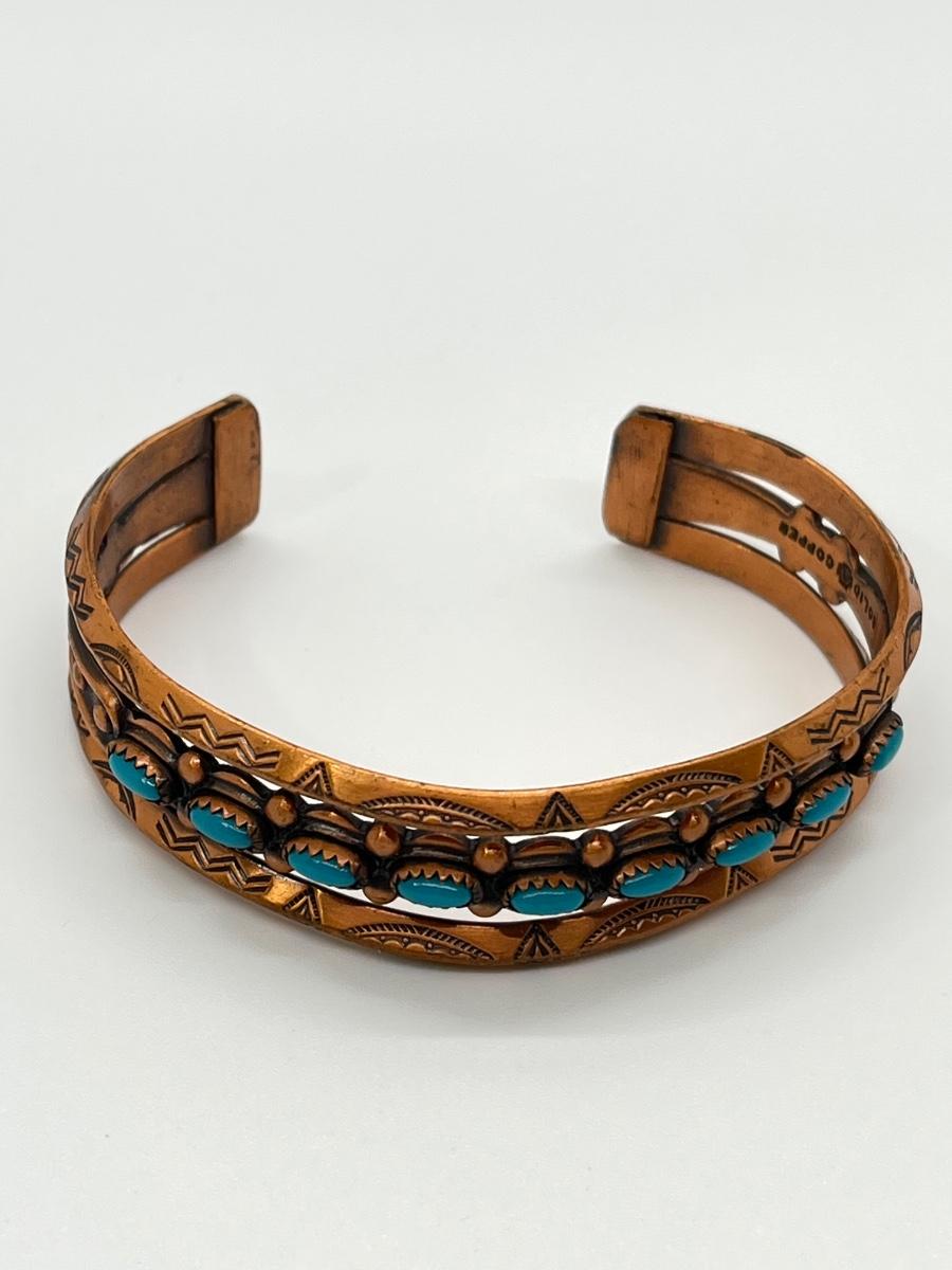 LOT 27: Artisan Southwestern Solid Copper Bangle w/Turquoise Accents & Handcrafted Copper Pendant