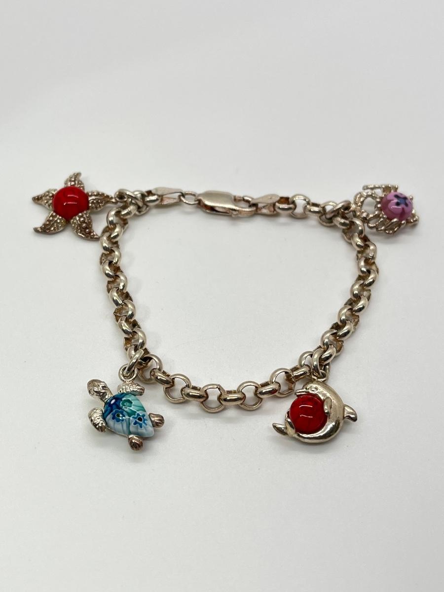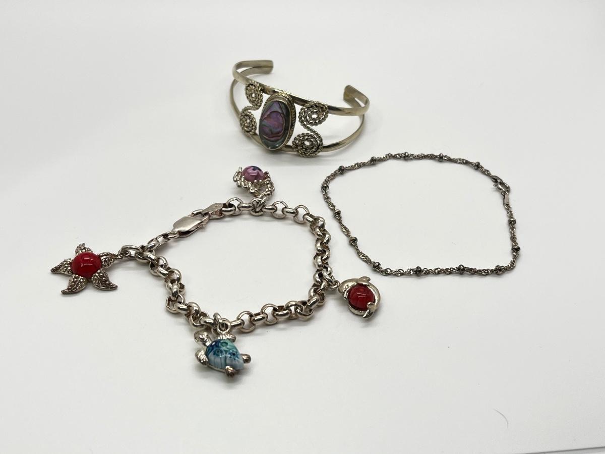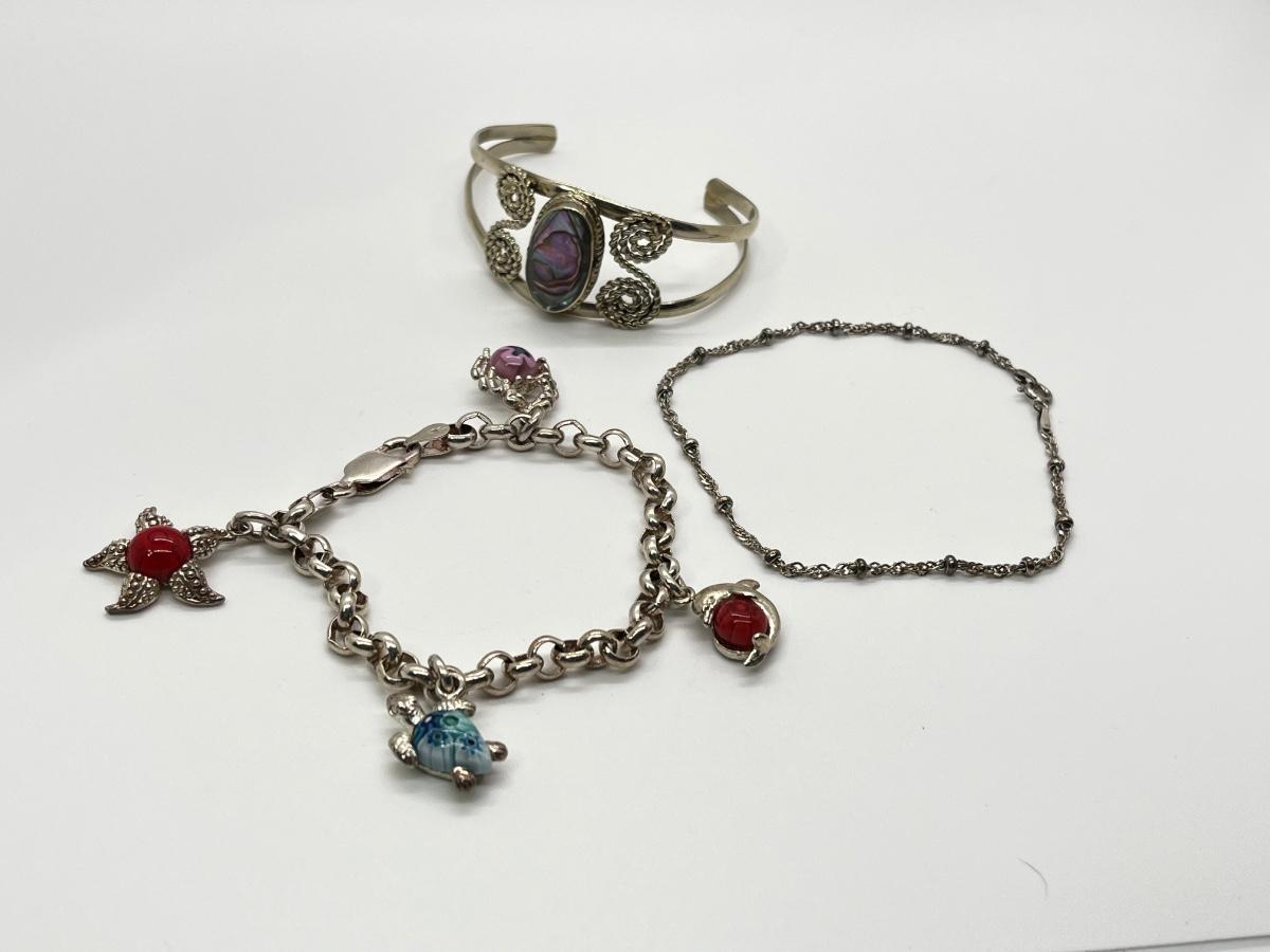 LOT 28: Sterling Silver:  Abolone Bangle, Millefori & Anklet