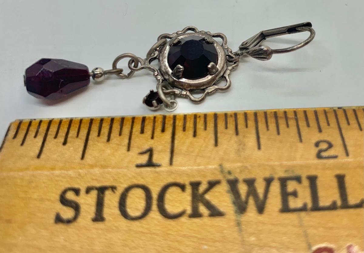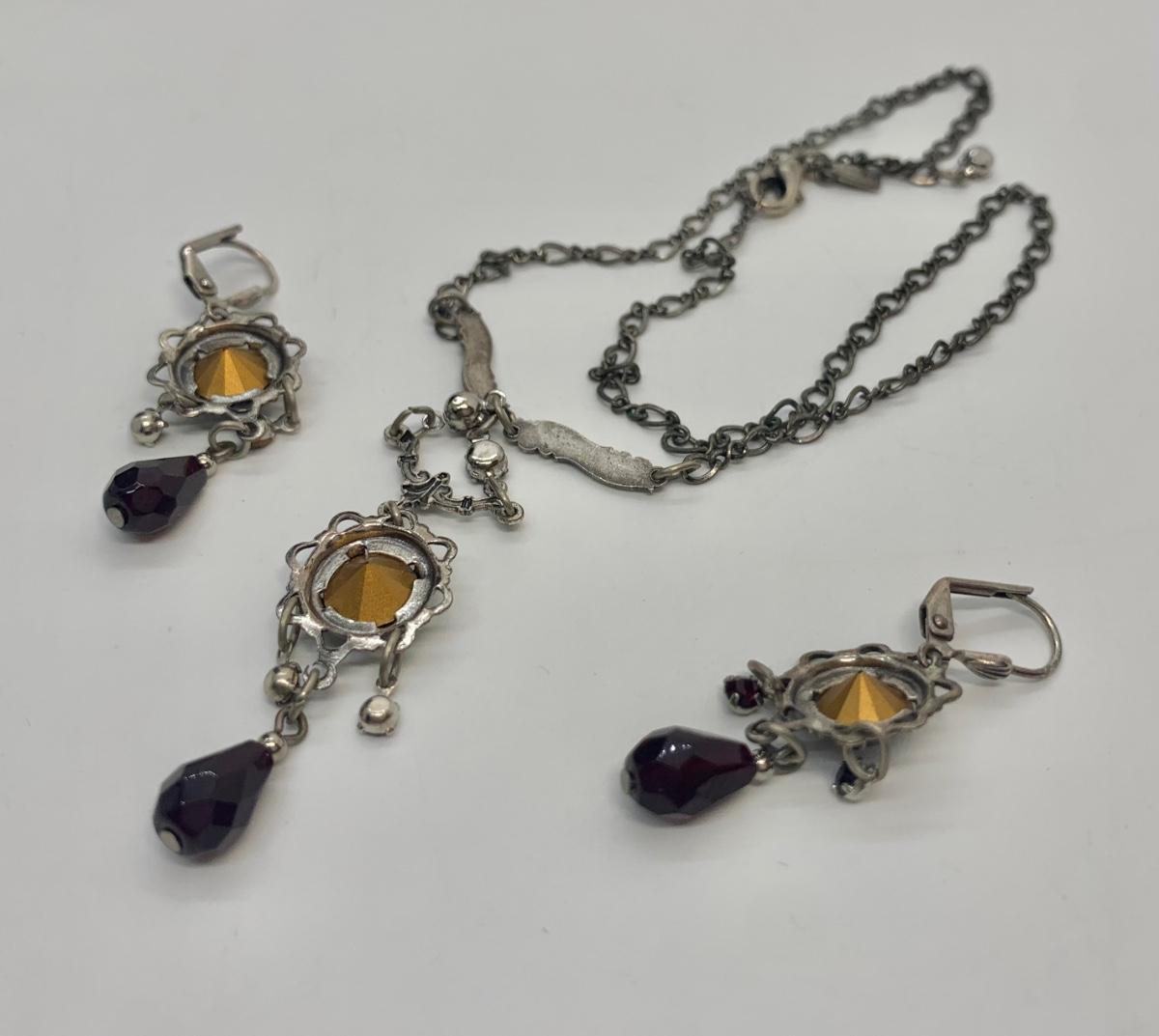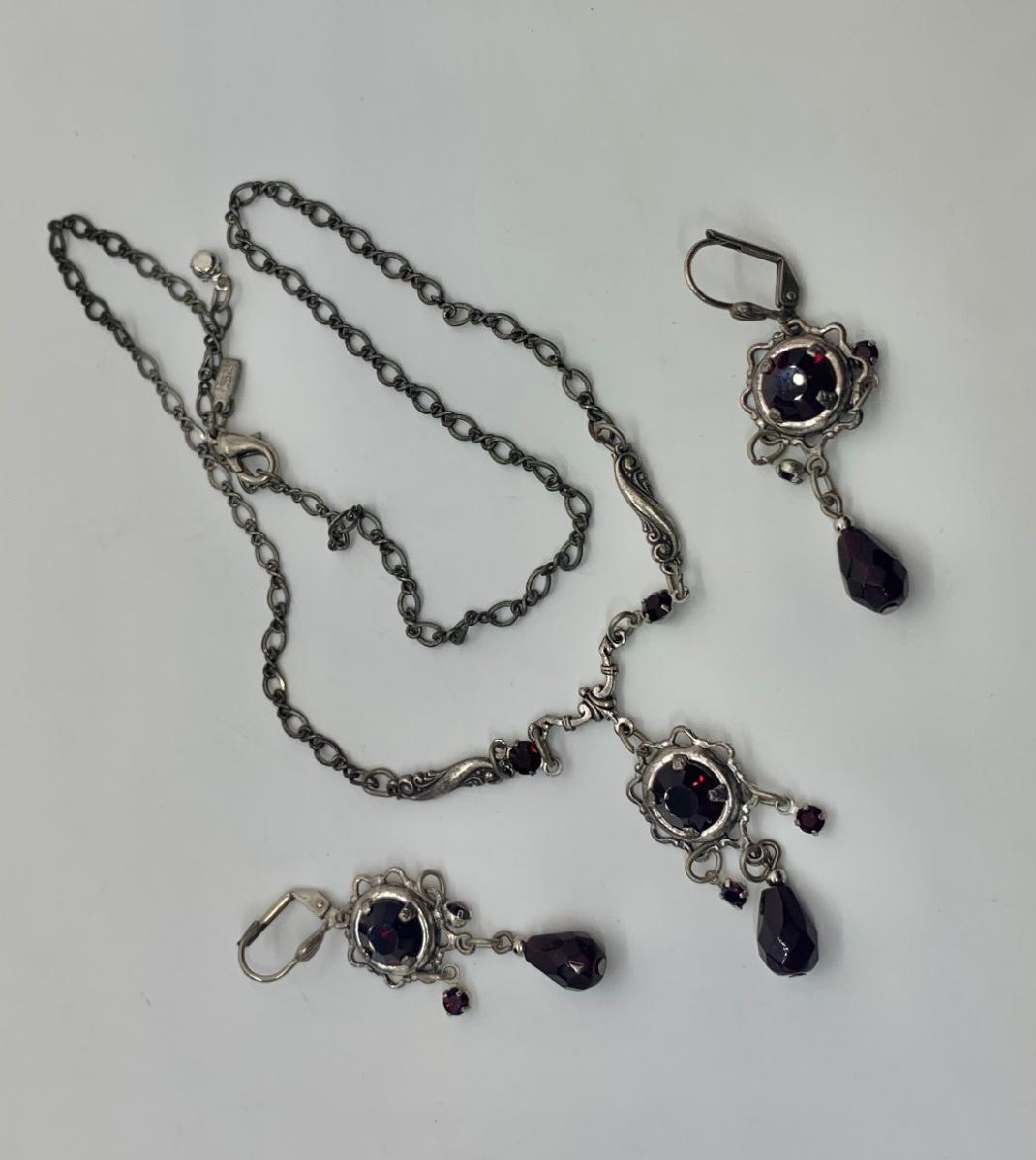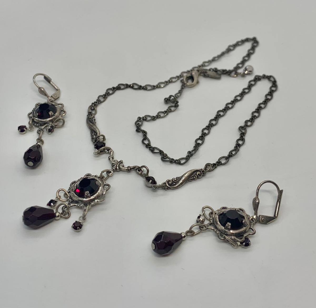 LOT 55: Beautiful Silver Tone Faux Garnet Earrings & Necklace Set (20" Necklace & Pierced Earrings)
