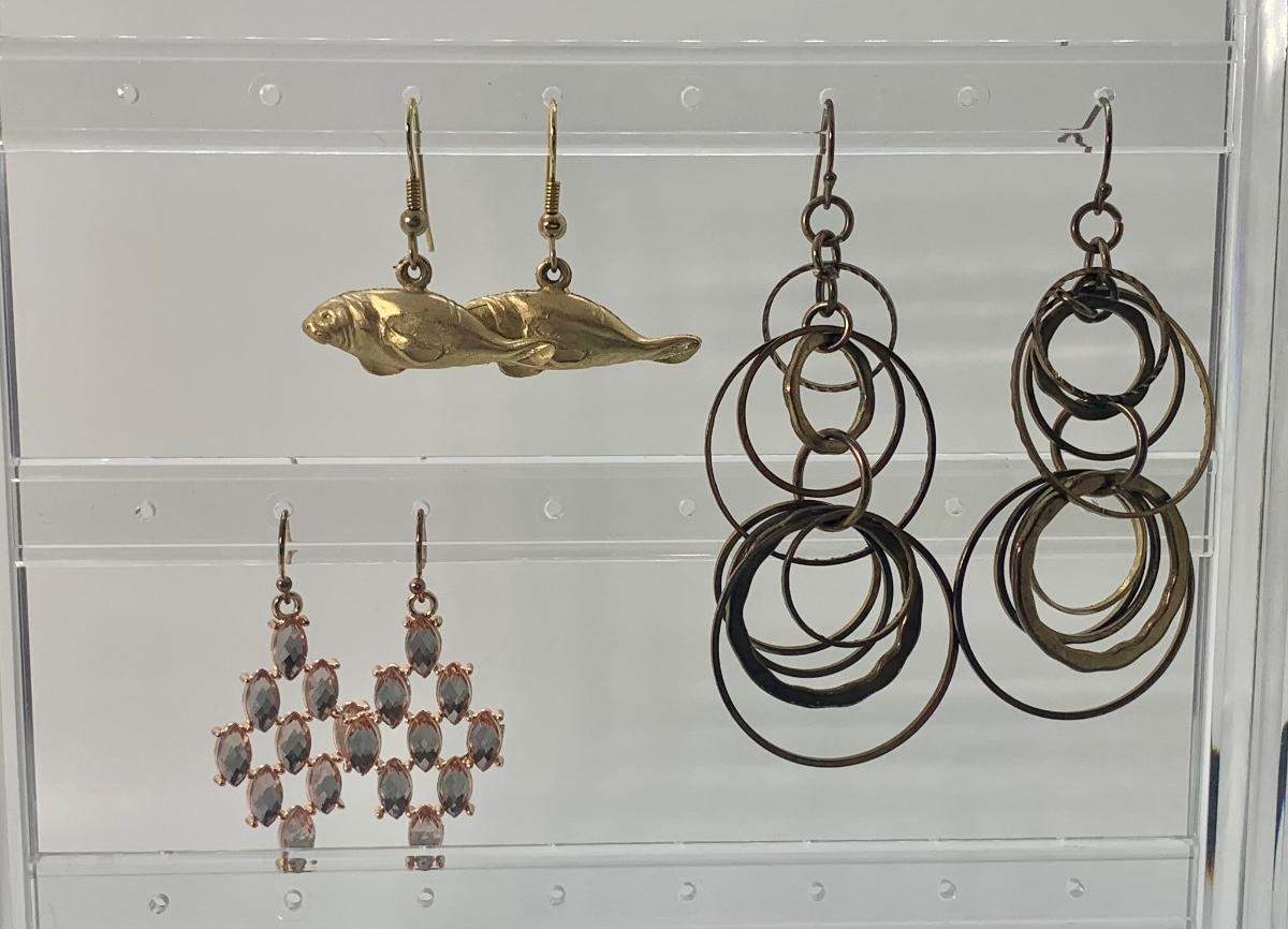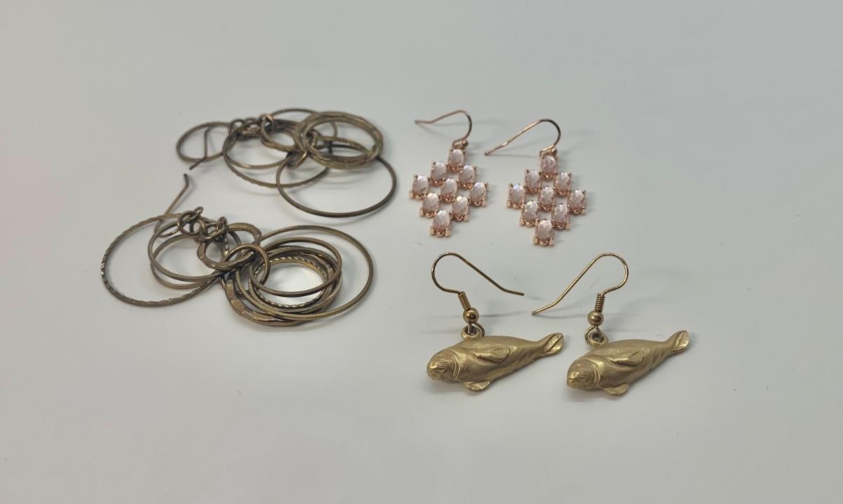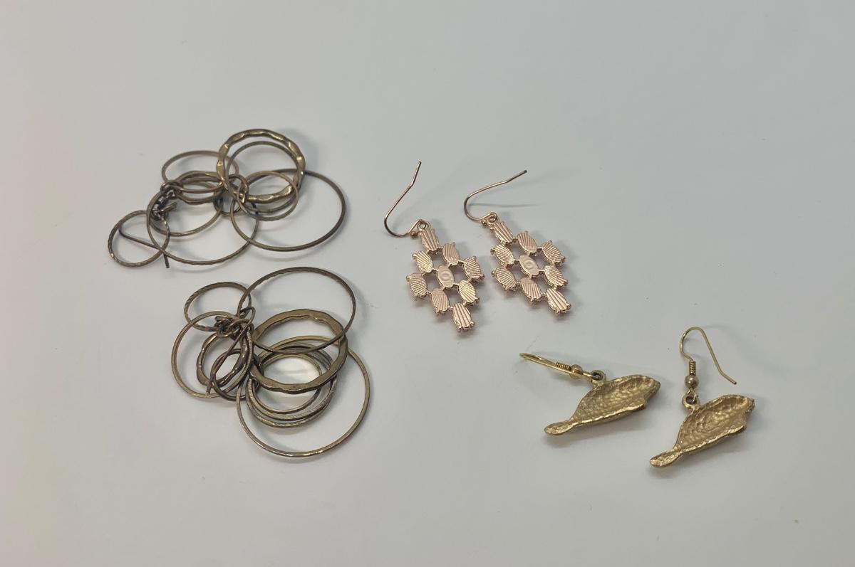 LOT 58: Three Pairs of Pierced Dangle Earrings
