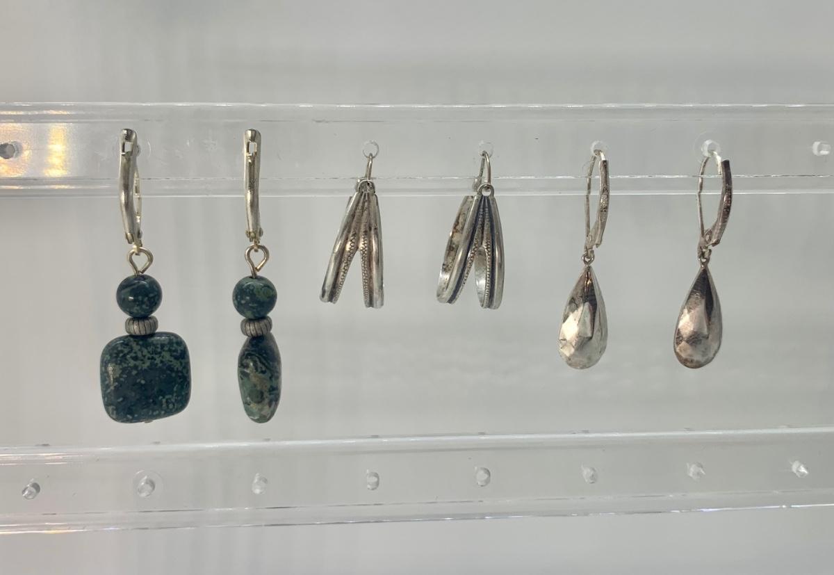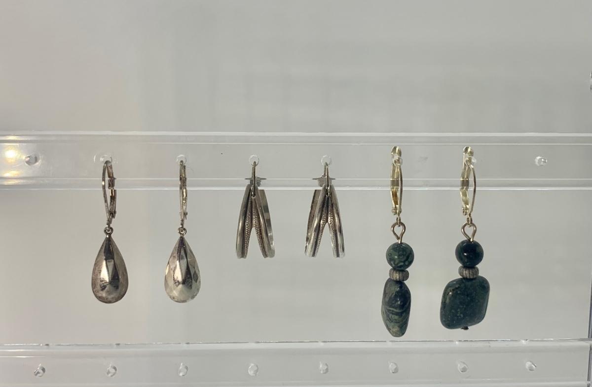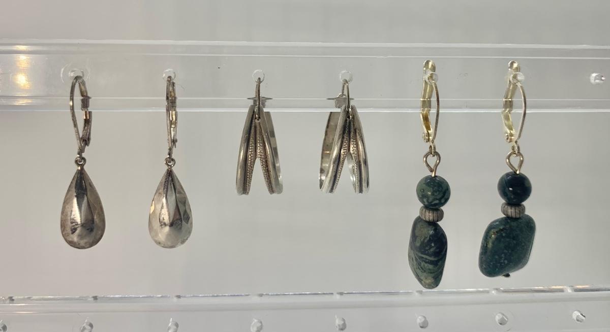 Five small dragonflies, sterling teardrops, green marble, and sterling double hoop earrings. Please see all pictures as they are the best representation of the items. The pictures show condition, measurements if taken, and what is included in the lot. Due to the large amount that we photograph and the time frame, we are not always able to take measurements. All items unless noted, are pre-owned and have been used. If you purchased furniture, you must bring help. We do not allow one person to carry large furniture out on their own. Bring help, tools and a truck for the safety of our client’s homes, and your personal safety. Any damages that result to the property including walls, and floors due to moving of the furniture will be charged to the buyer. Company policy. Thank you.