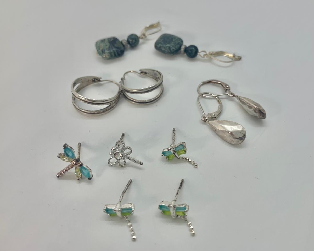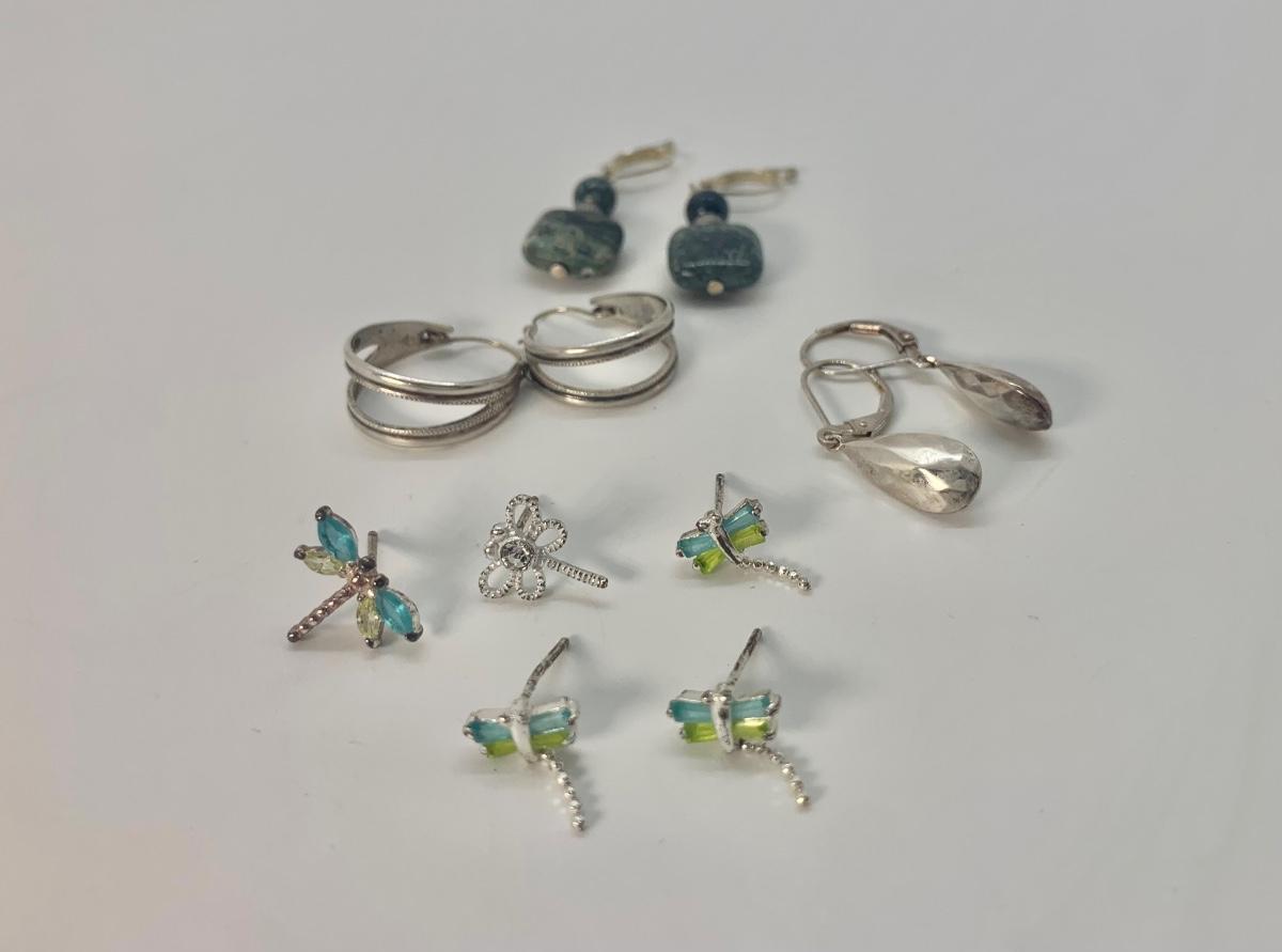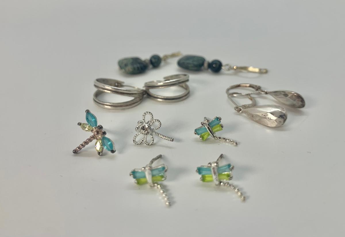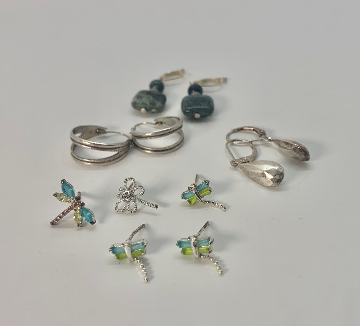 LOT 61: Pierced Earrings Lot: Dragonflies, Sterling Teardrops and More