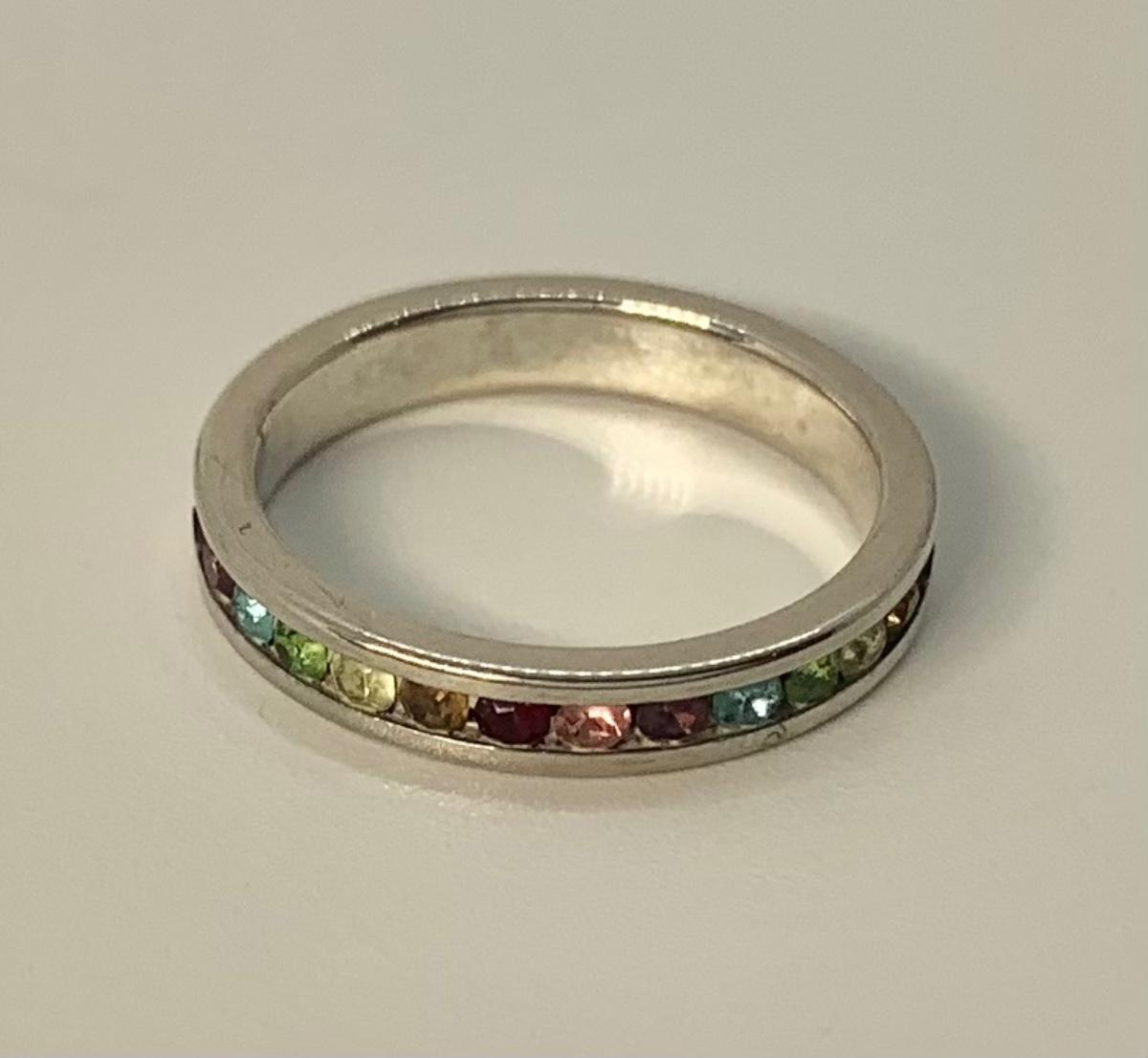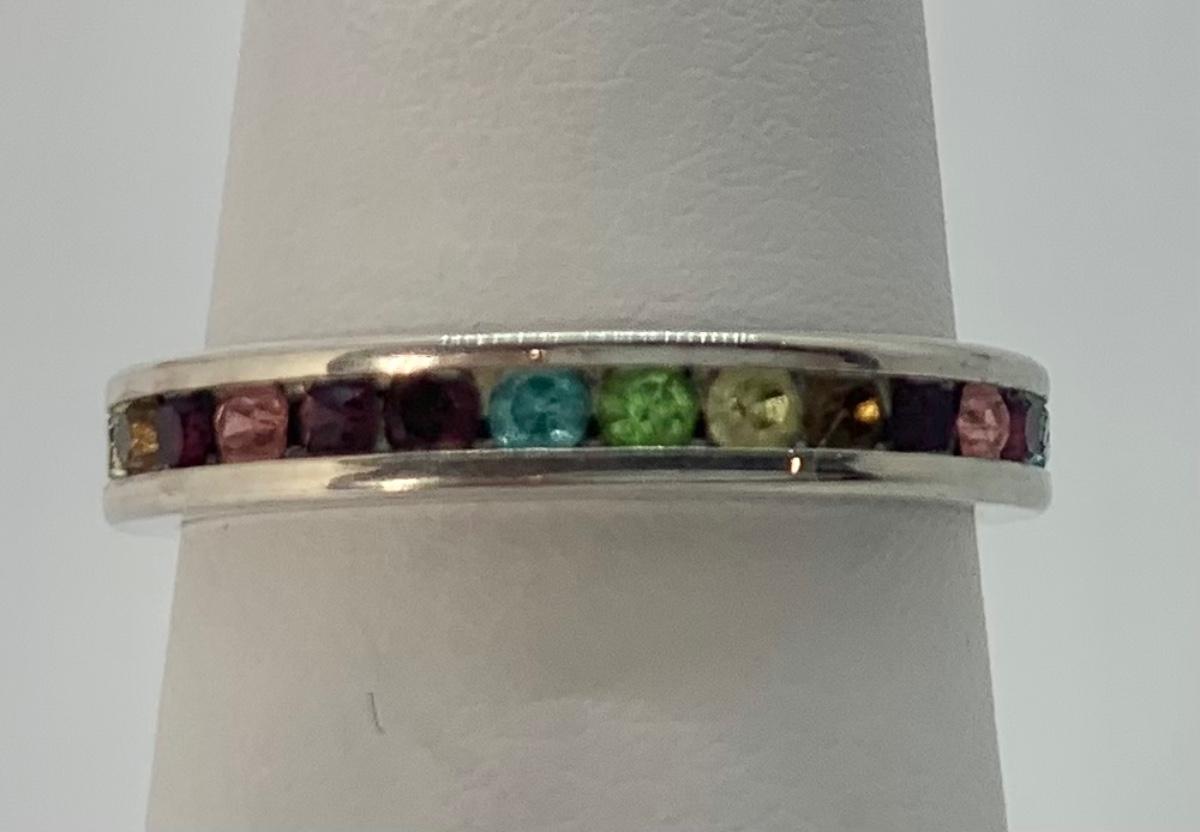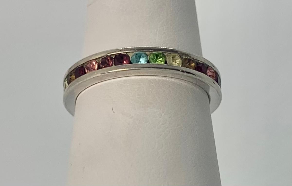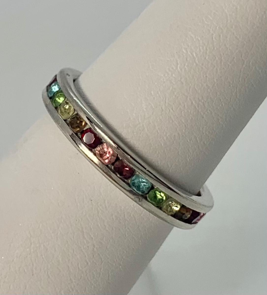 LOT 65: Silver Tone Multi Color Stone Ring, Size 6
