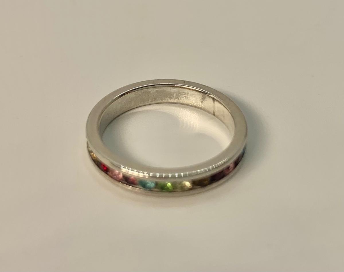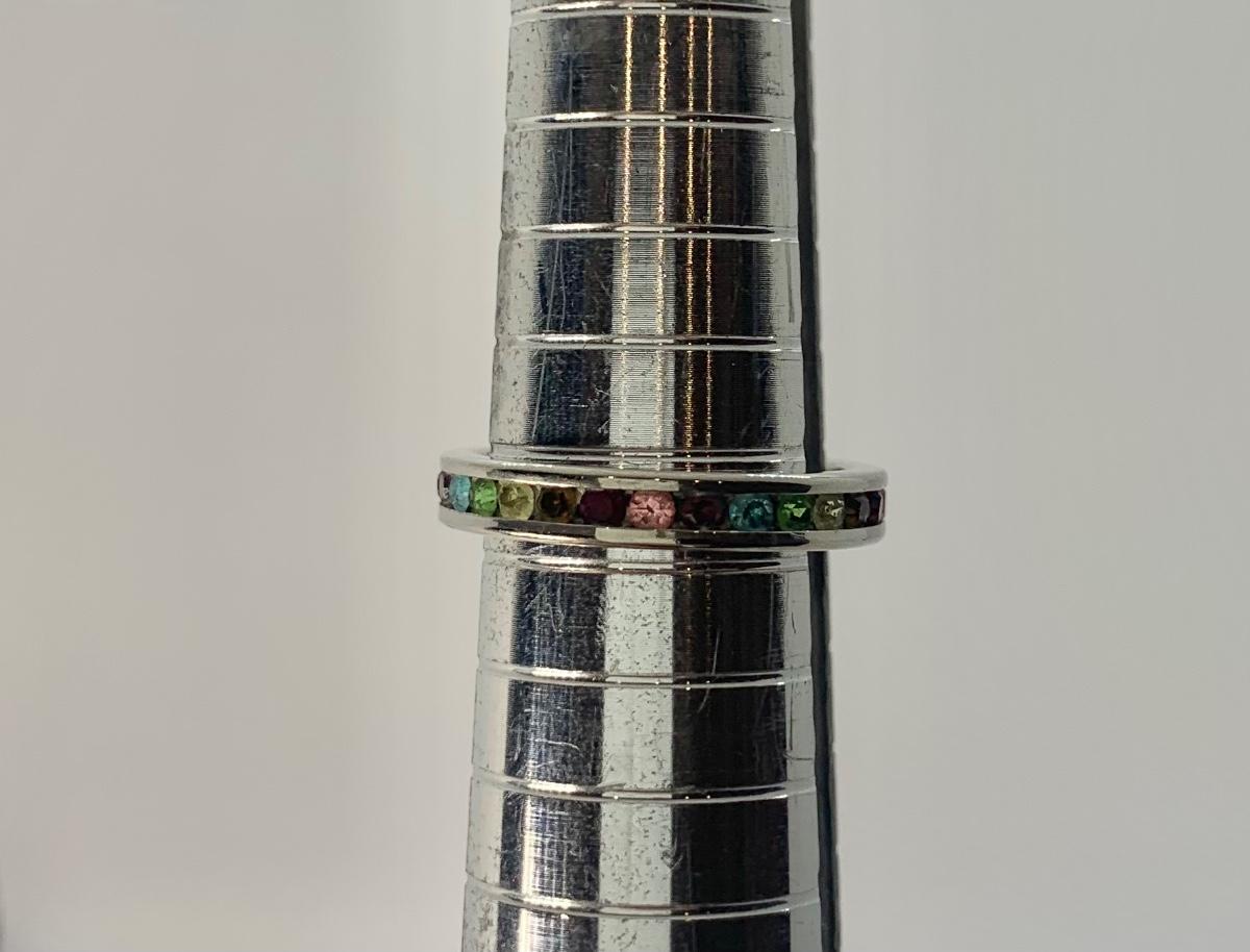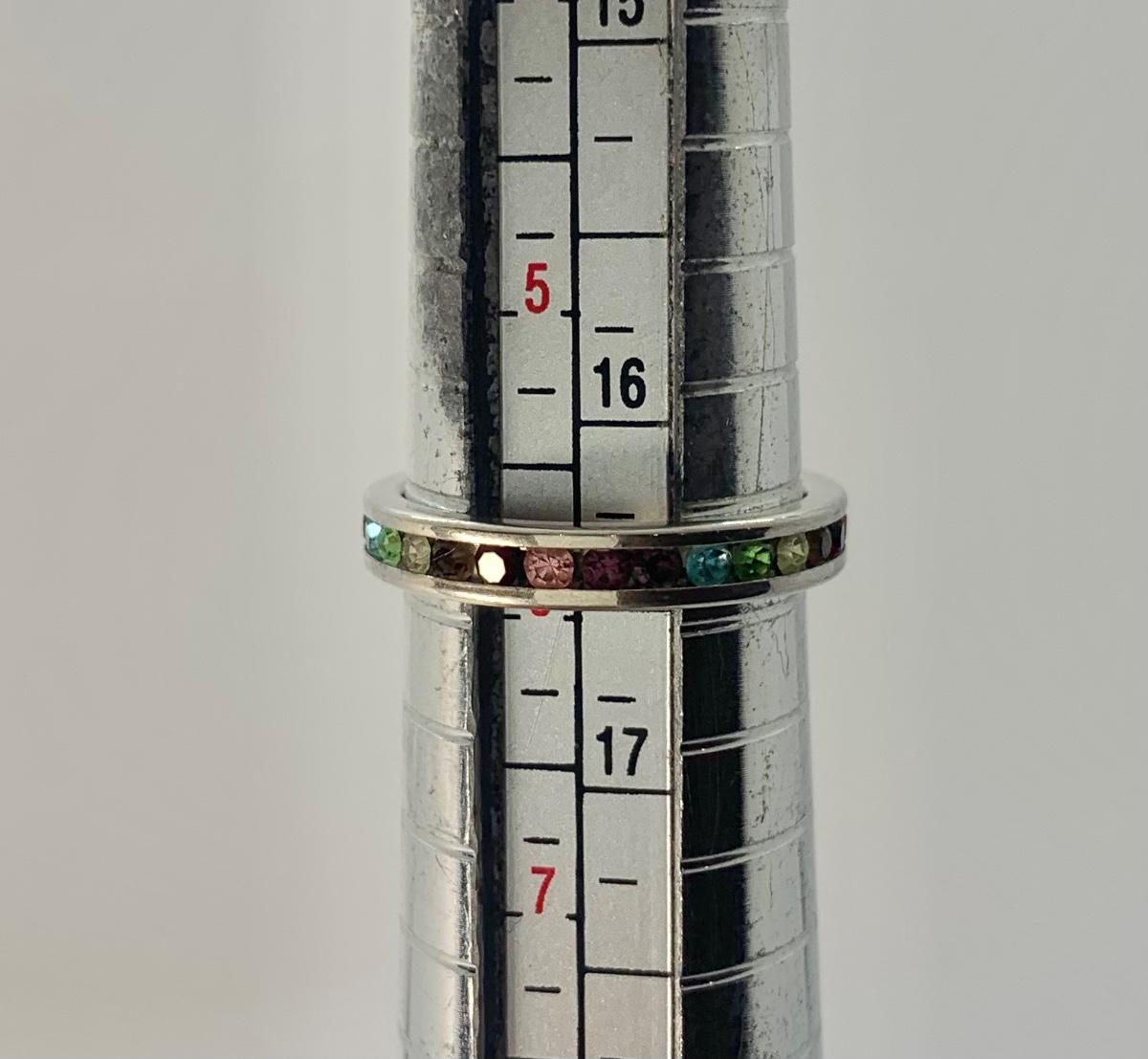 LOT 65: Silver Tone Multi Color Stone Ring, Size 6
