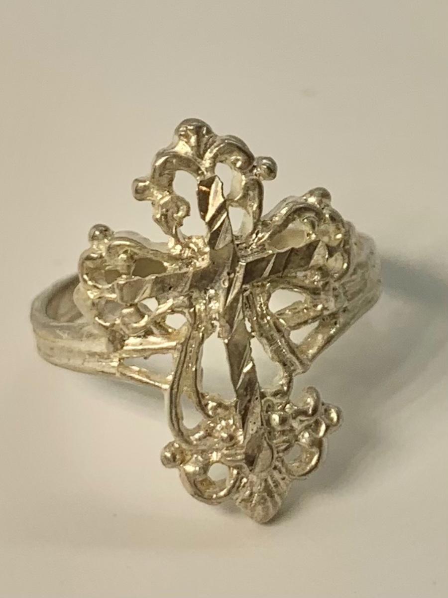 LOT 66: Sterling Silver Cross Ring, Size 7.5