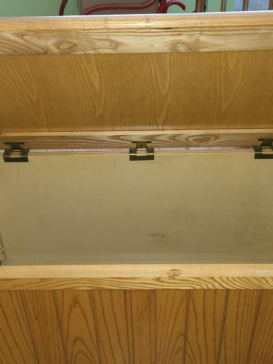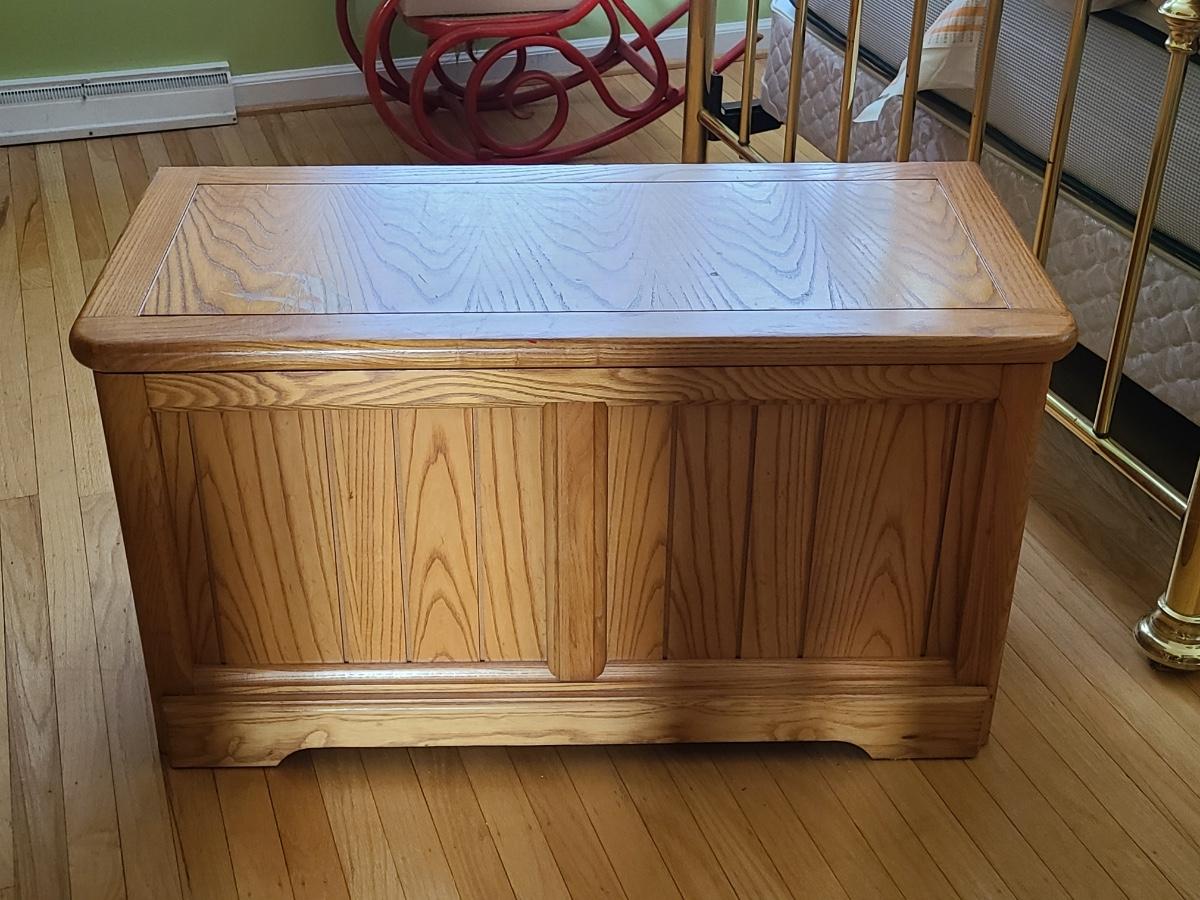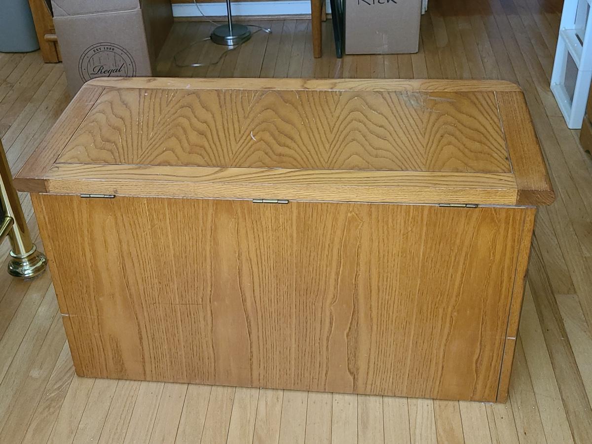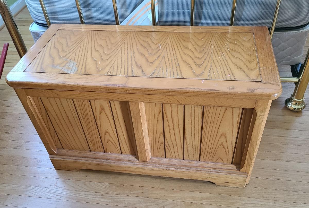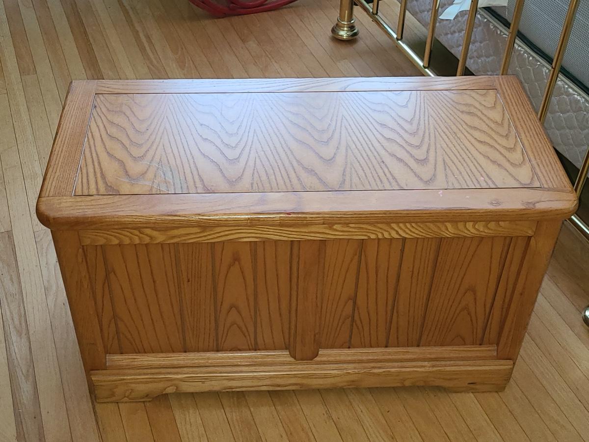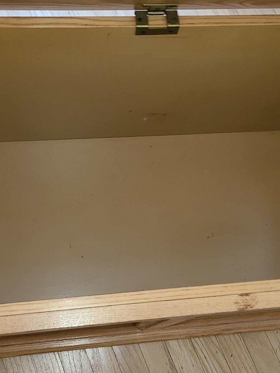 37 inches long, 17 deep, and 20 tall. Upcycle me! This is a solid piece, but it does show wear with slight marks, and faint pink nail polish on top. This would look amazing chalk painted white, gray or Navy! Perfect for kids room too to use for storage or ready nook bench. Please see all pictures as they are the best representation of the items. The pictures show condition, measurements if taken, and what is included in the lot. Due to the large amount that we photograph and the time frame, we are not always able to take measurements. All items unless noted, are pre-owned and have been used. If you purchased furniture, you must bring help. We do not allow one person to carry large furniture out on their own. Bring help, tools and a truck for the safety of our client’s homes, and your personal safety. Any damages that result to the property including walls, and floors due to moving of the furniture will be charged to the buyer. Company policy. Thank you.