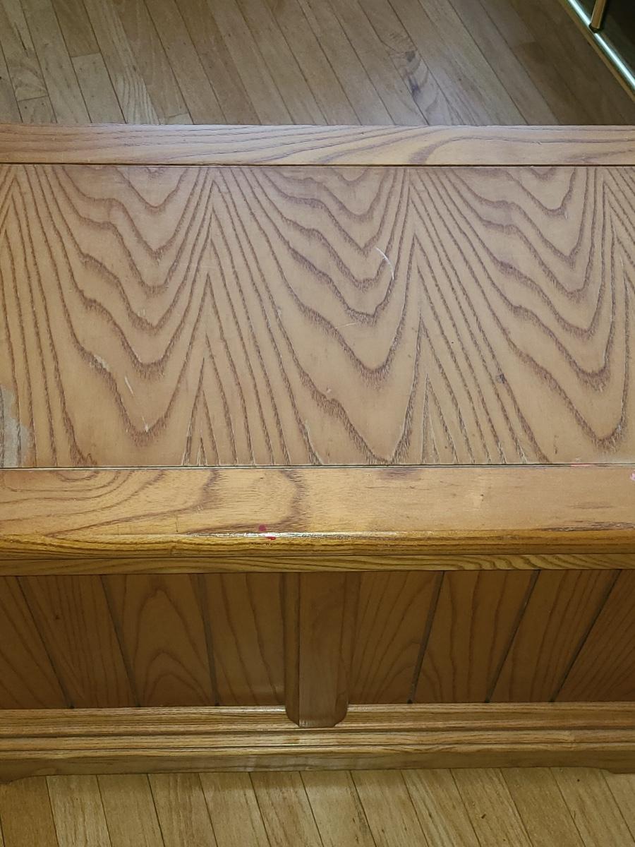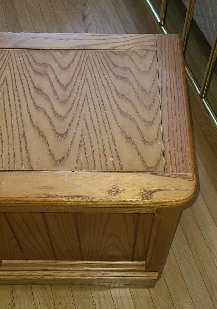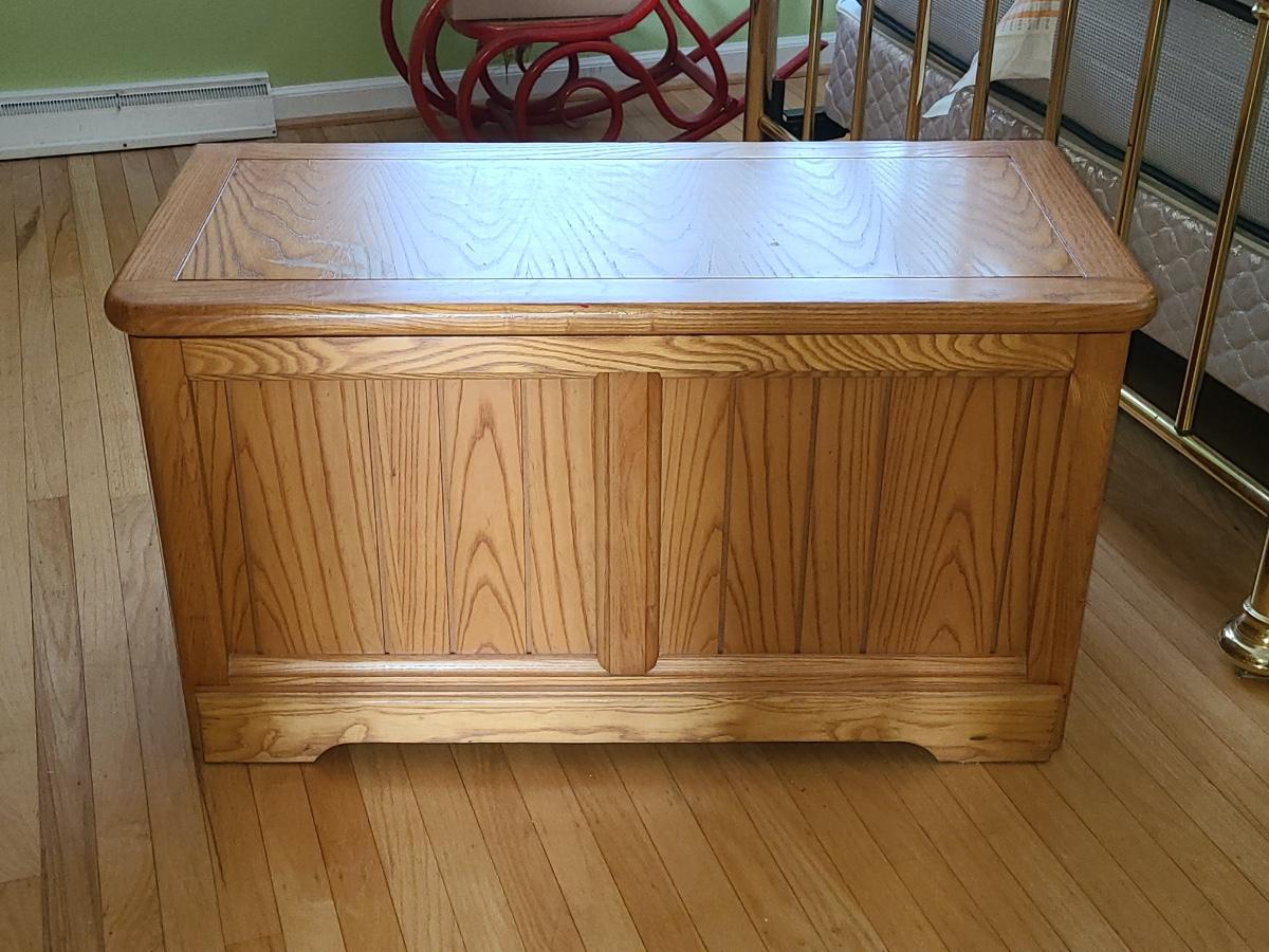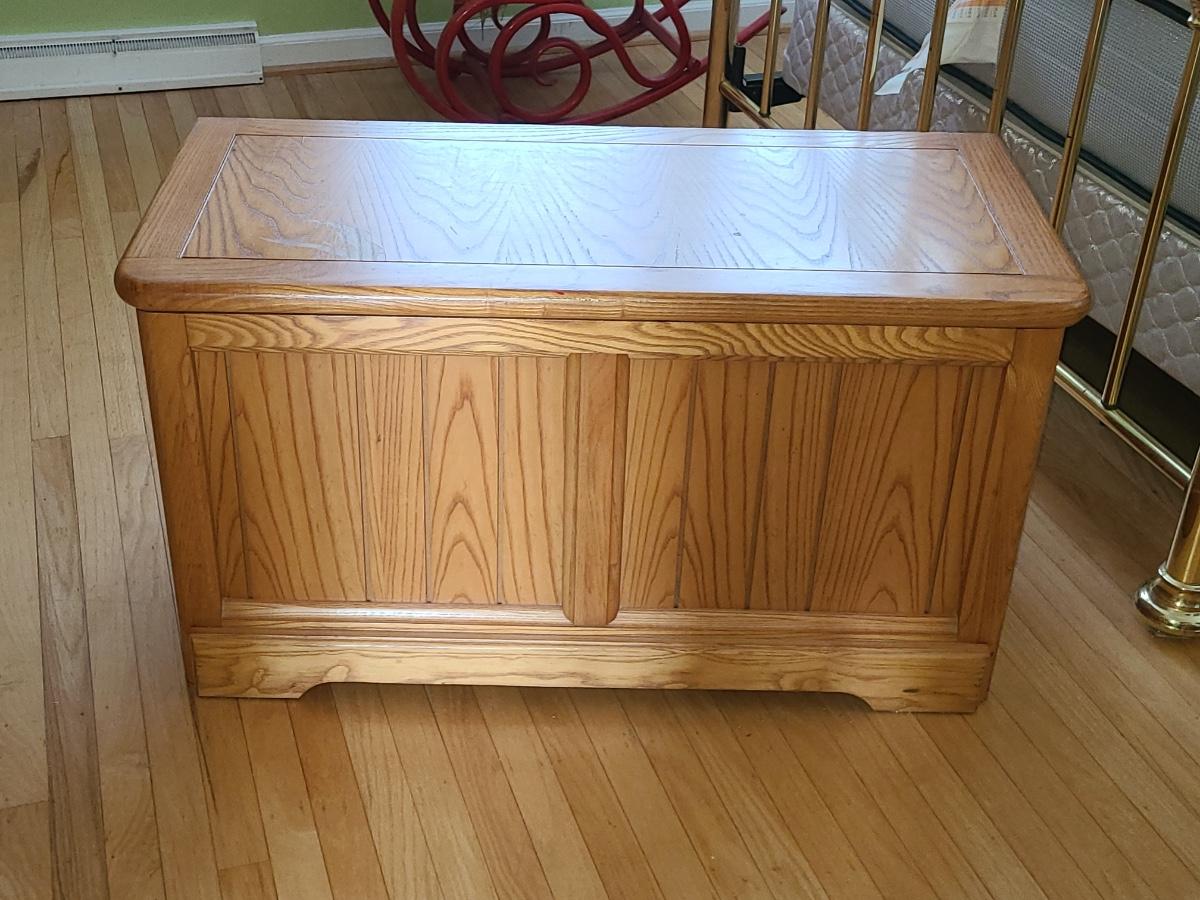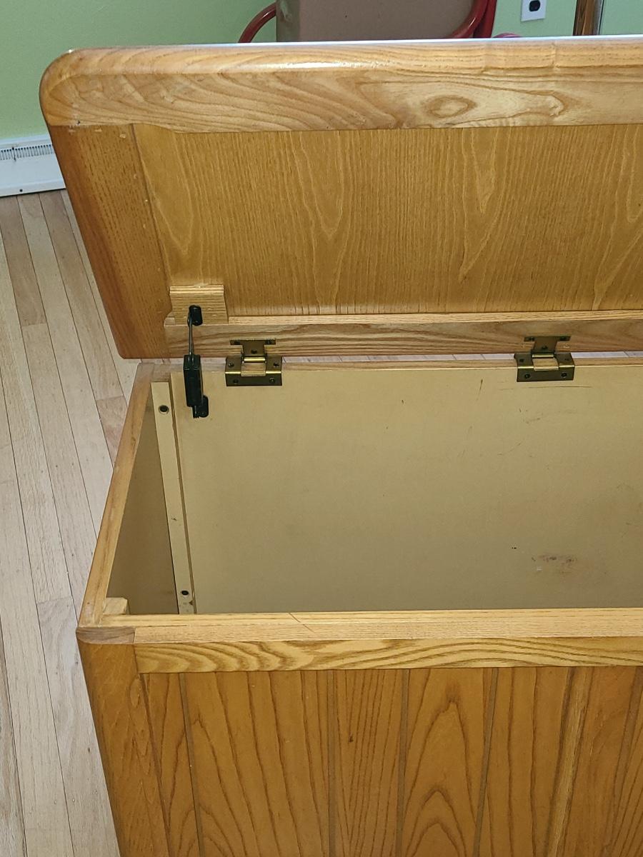 37 inches long, 17 deep, and 20 tall. Upcycle me! This is a solid piece, but it does show wear with slight marks, and faint pink nail polish on top. This would look amazing chalk painted white, gray or Navy! Perfect for kids room too to use for storage or ready nook bench. Please see all pictures as they are the best representation of the items. The pictures show condition, measurements if taken, and what is included in the lot. Due to the large amount that we photograph and the time frame, we are not always able to take measurements. All items unless noted, are pre-owned and have been used. If you purchased furniture, you must bring help. We do not allow one person to carry large furniture out on their own. Bring help, tools and a truck for the safety of our client’s homes, and your personal safety. Any damages that result to the property including walls, and floors due to moving of the furniture will be charged to the buyer. Company policy. Thank you.