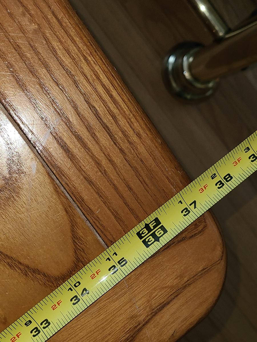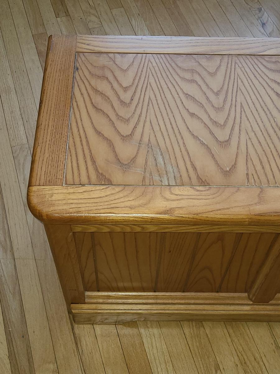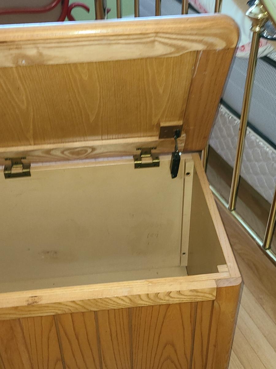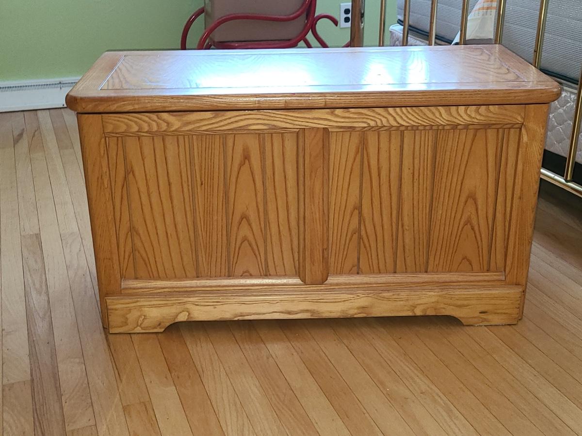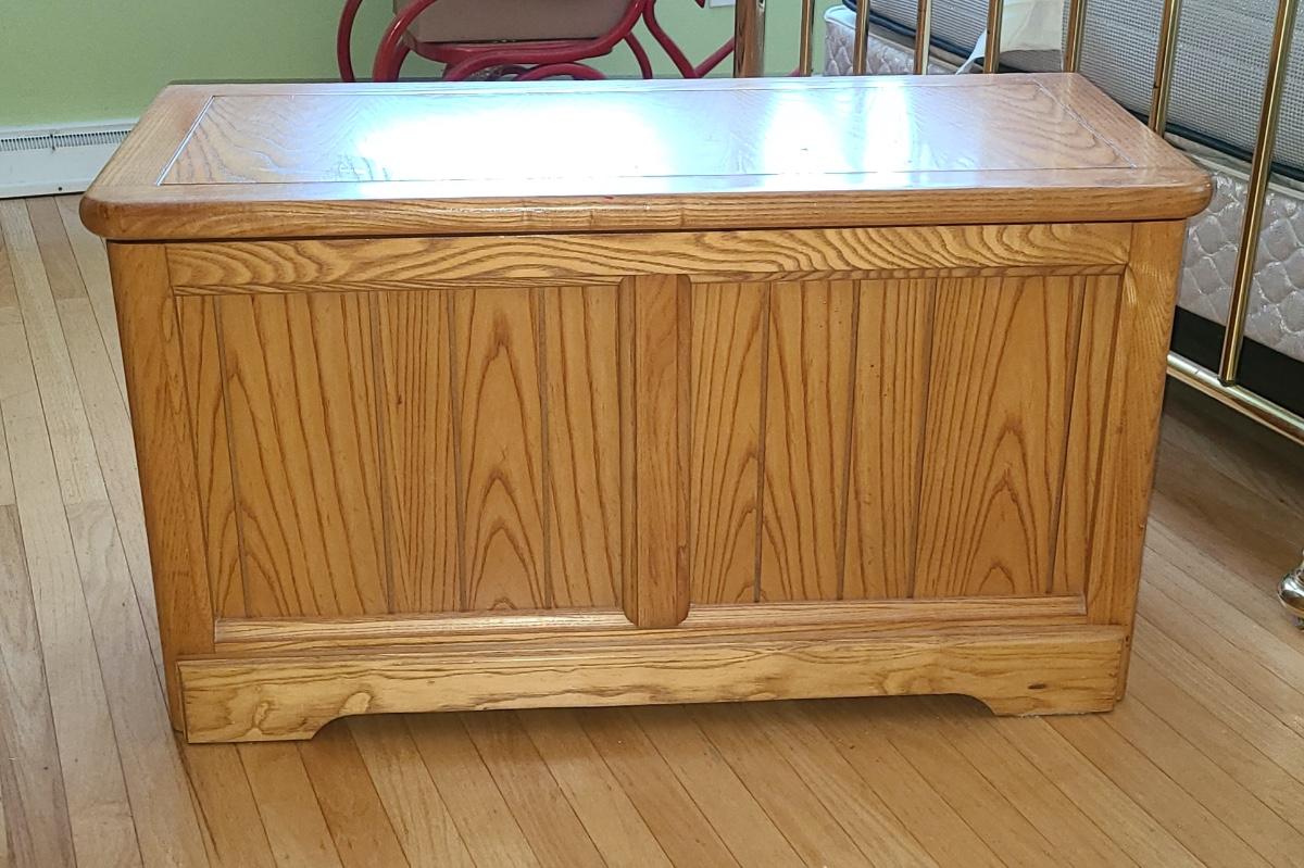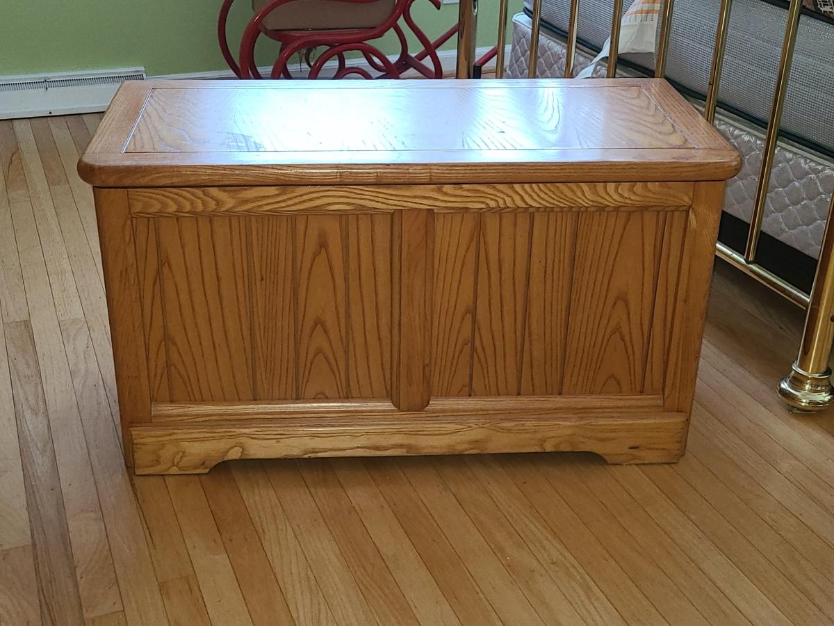 37 inches long, 17 deep, and 20 tall. Upcycle me! This is a solid piece, but it does show wear with slight marks, and faint pink nail polish on top. This would look amazing chalk painted white, gray or Navy! Perfect for kids room too to use for storage or ready nook bench. Please see all pictures as they are the best representation of the items. The pictures show condition, measurements if taken, and what is included in the lot. Due to the large amount that we photograph and the time frame, we are not always able to take measurements. All items unless noted, are pre-owned and have been used. If you purchased furniture, you must bring help. We do not allow one person to carry large furniture out on their own. Bring help, tools and a truck for the safety of our client’s homes, and your personal safety. Any damages that result to the property including walls, and floors due to moving of the furniture will be charged to the buyer. Company policy. Thank you.