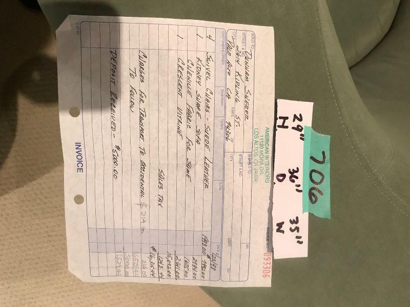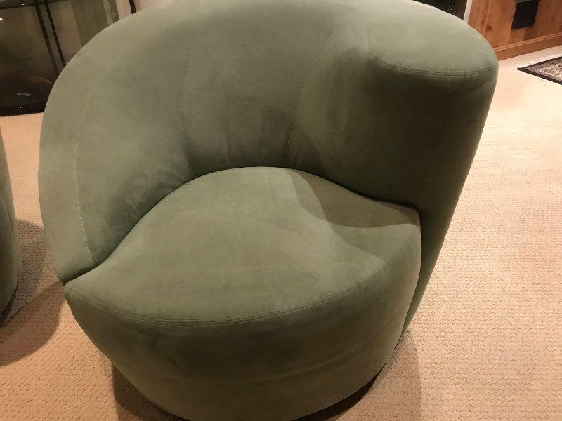 4 Green Swivel Chairs from American Interiors original price of $1,998 each or $7,992 for all four 29" x 36" x 35"