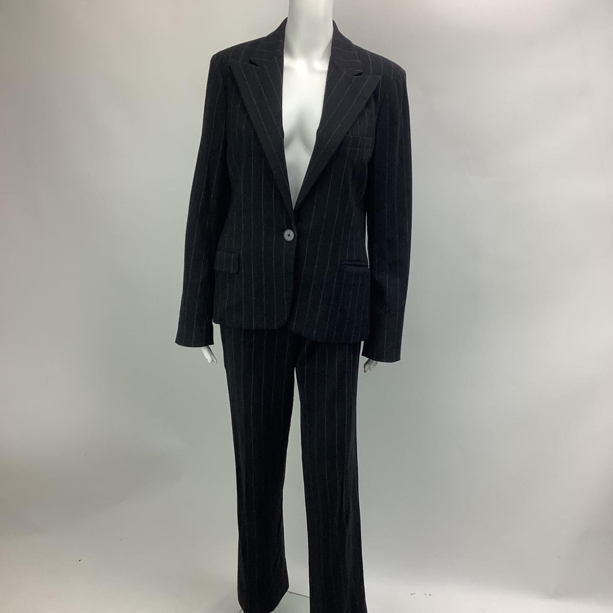 Ralph Lauren Black Label, Black/Charcoal Grey Pinstriped Suit, Wool & Cashmere Blend, Fully Lined