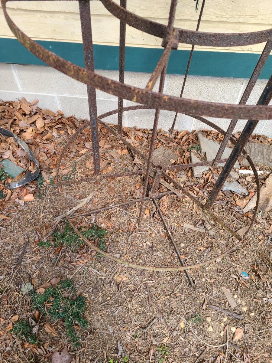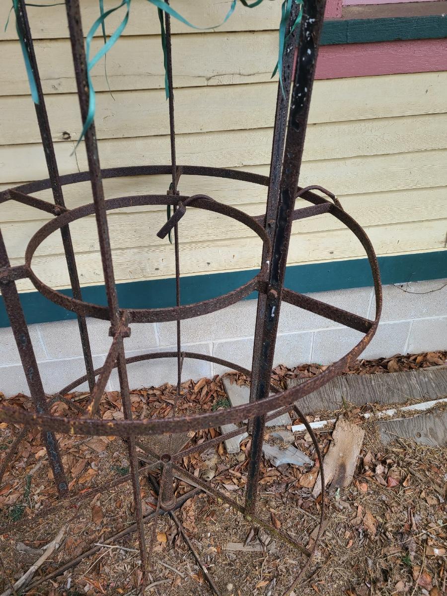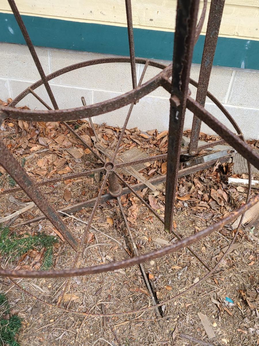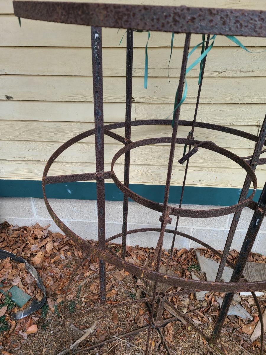 This piece is so cool, and would look amazing with some wood shelves. Solid piece. Top section is a little bent. Can also be used to hang things off of in garden or yard. Must bring truck to load! Please see all pictures as they are the best representation of the items. The pictures show condition, measurements if taken, and what is included in the lot. Due to the large amount that we photograph and the time frame, we are not always able to take measurements. All items unless noted, are pre-owned and have been used. If you purchased furniture, you must bring help. We do not allow one person to carry large furniture out on their own. Bring help, tools and a truck for the safety of our client’s homes, and your personal safety. Any damages that result to the property including walls, and floors due to moving of the furniture will be charged to the buyer. Company policy. Thank you.